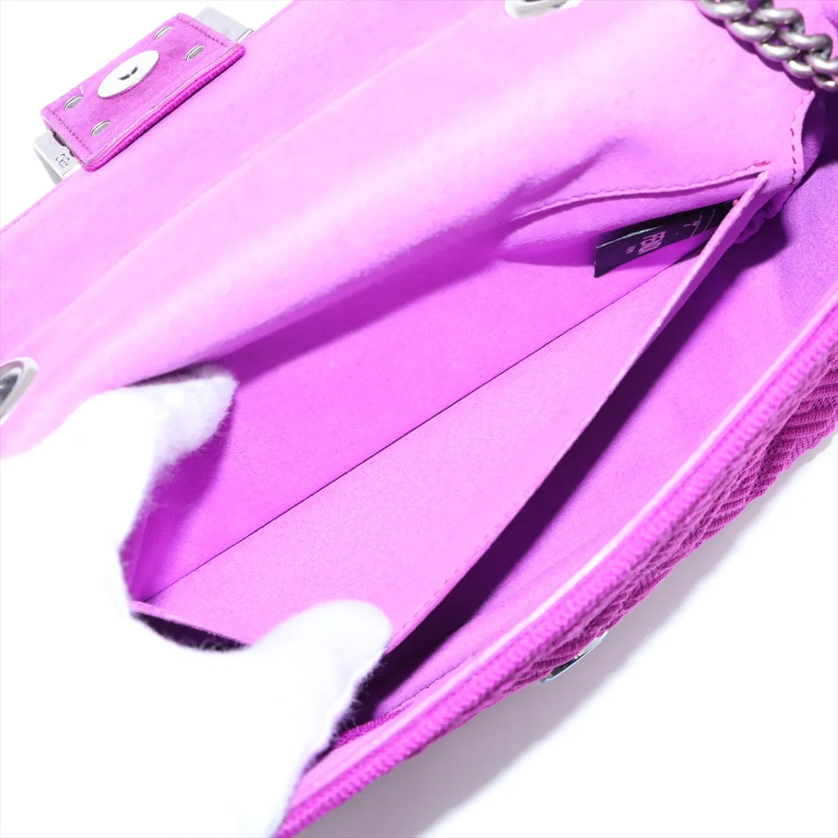 Fendi Zucca Mamma Baguette Fabric Suede Chain Shoulder Bag Purple 8BR793