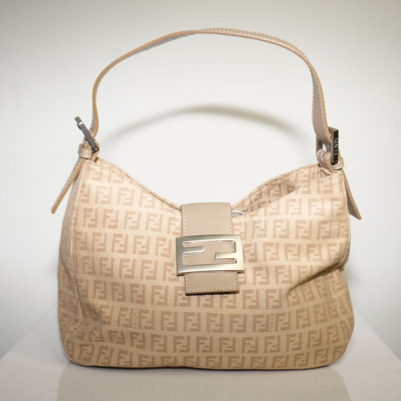 Fendi Zucchino Canvas Mama Baguette Shoulder Bag Beige