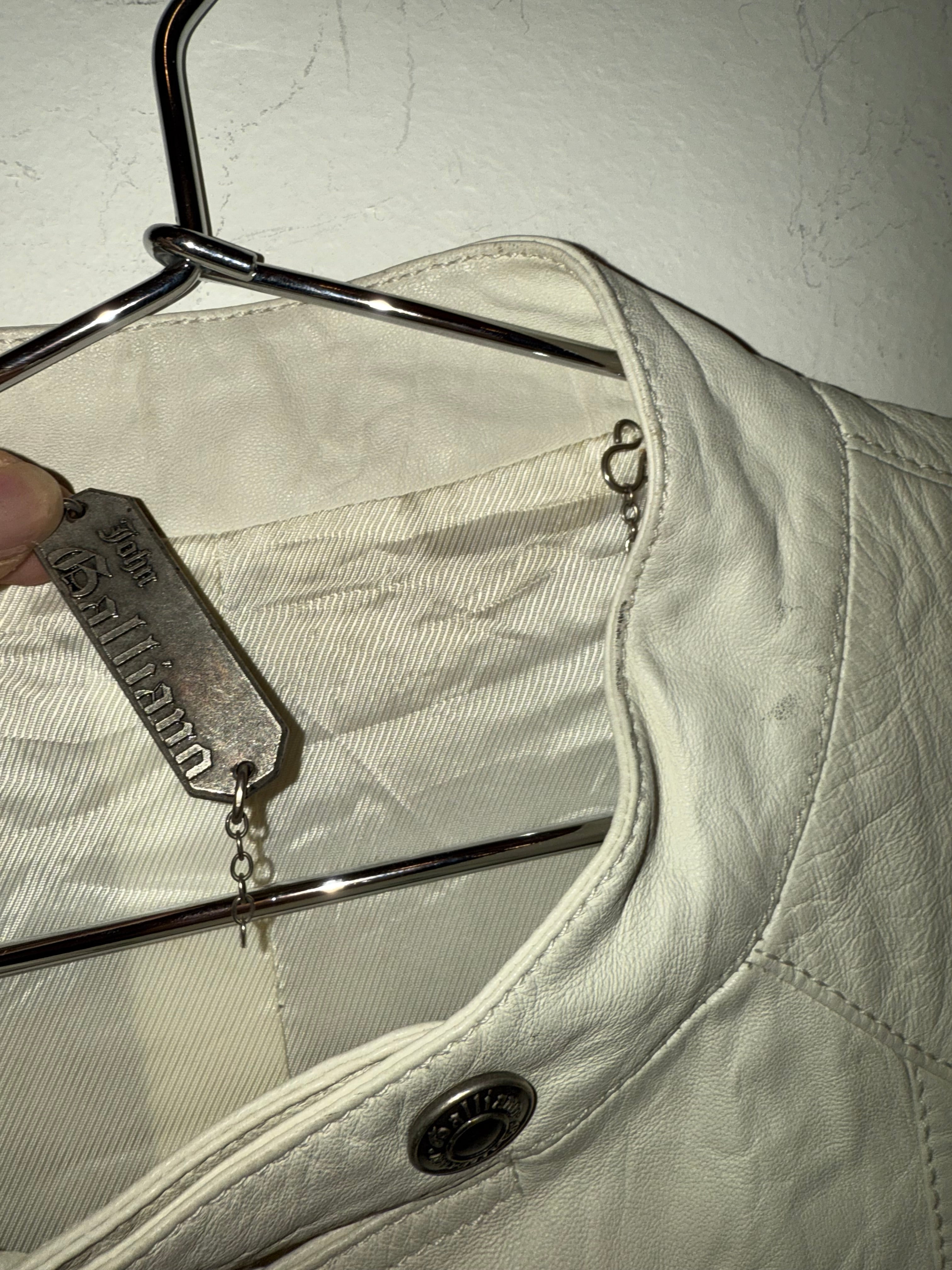 Galliano Embroidered White Leather Jacket