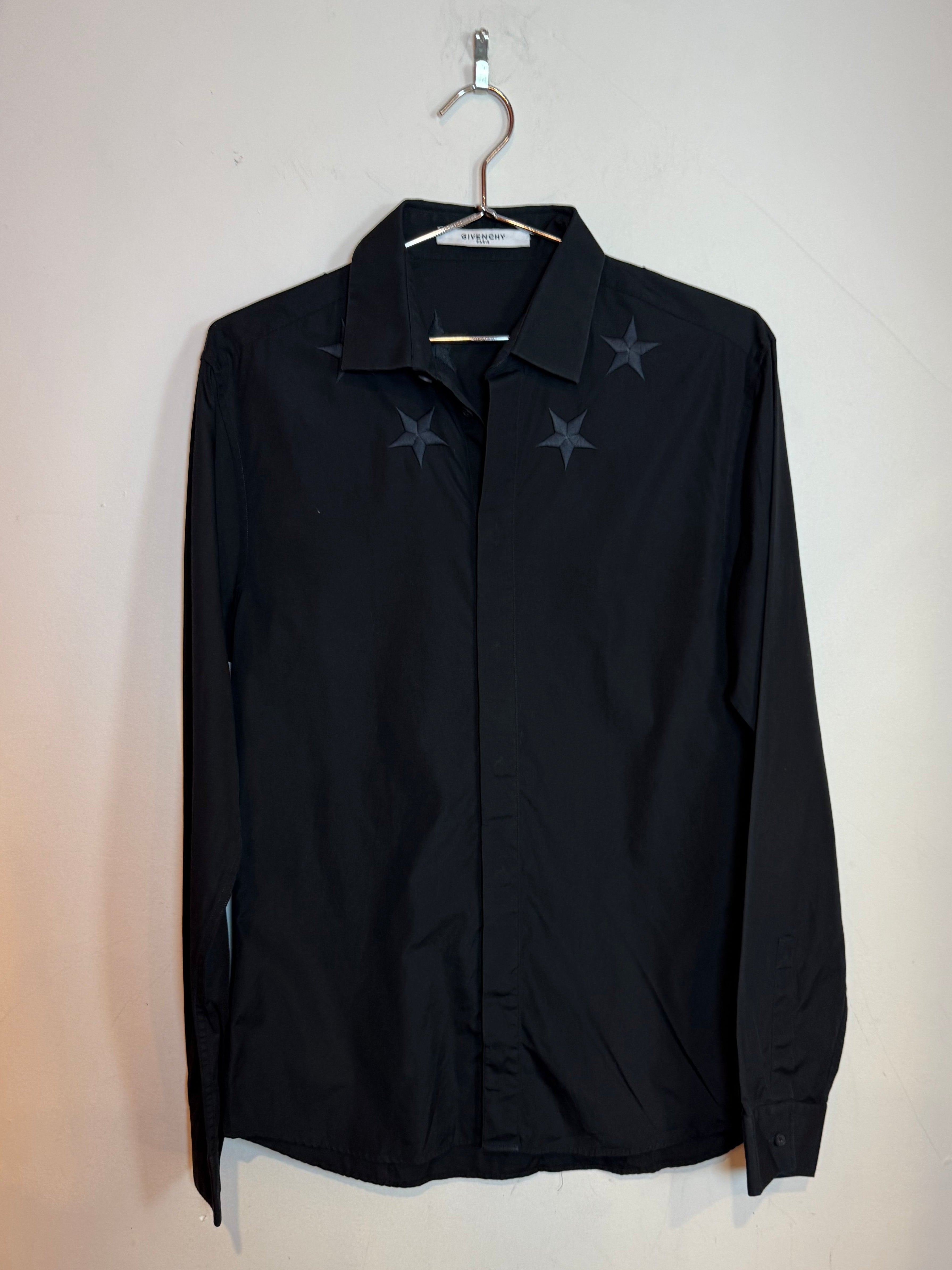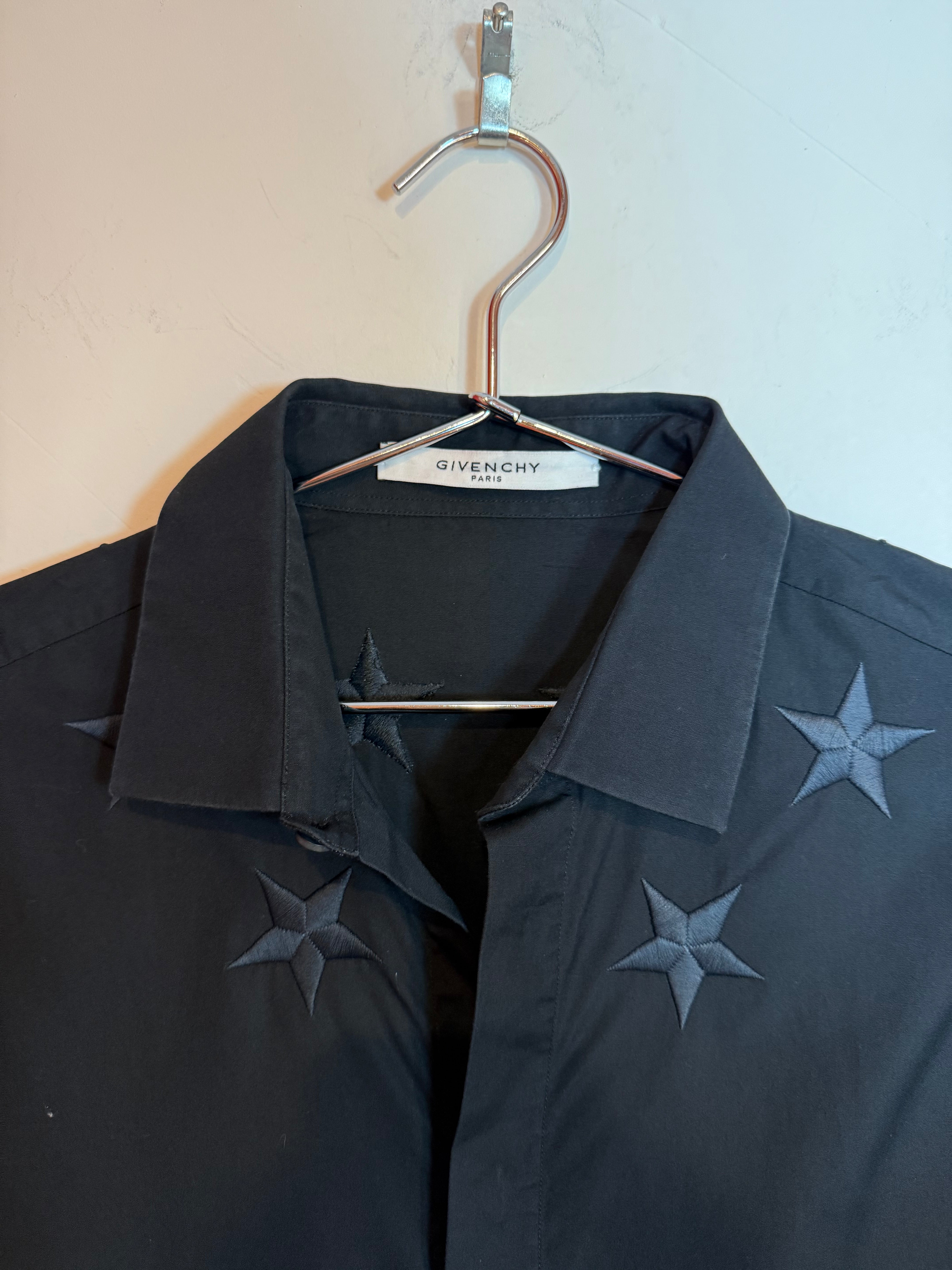 Givenchy Black Button Up Long Sleeve Shirt with Star Embroidery