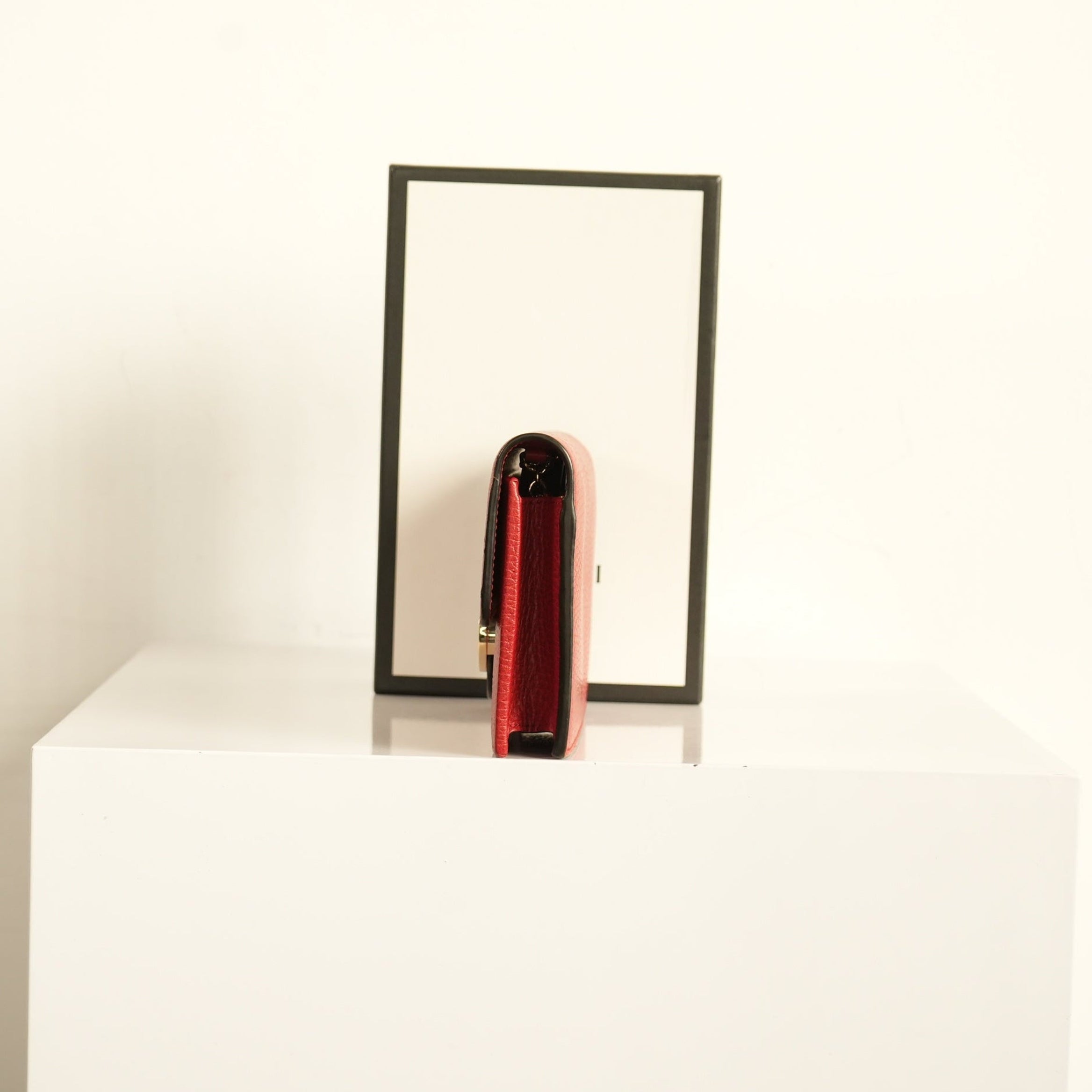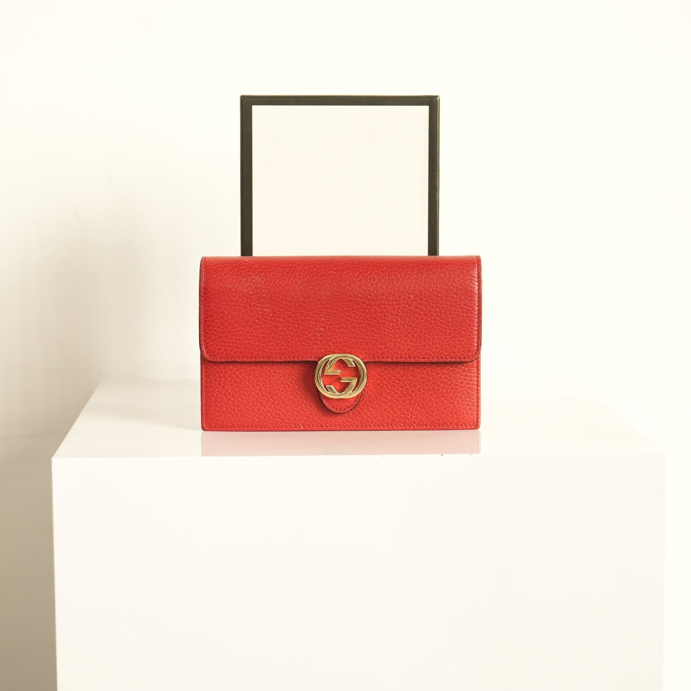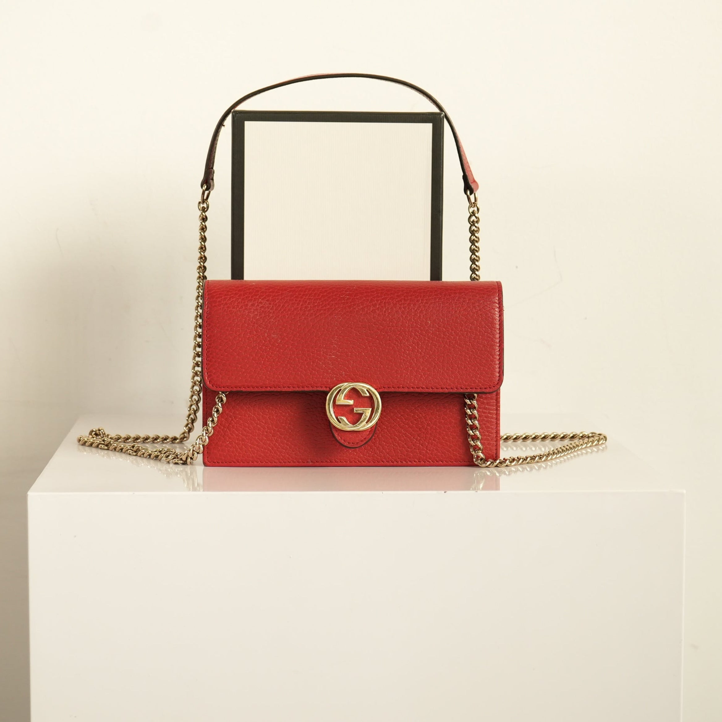 Gucci Red Calf Leather Interlocking G Wallet On Chain Bag
