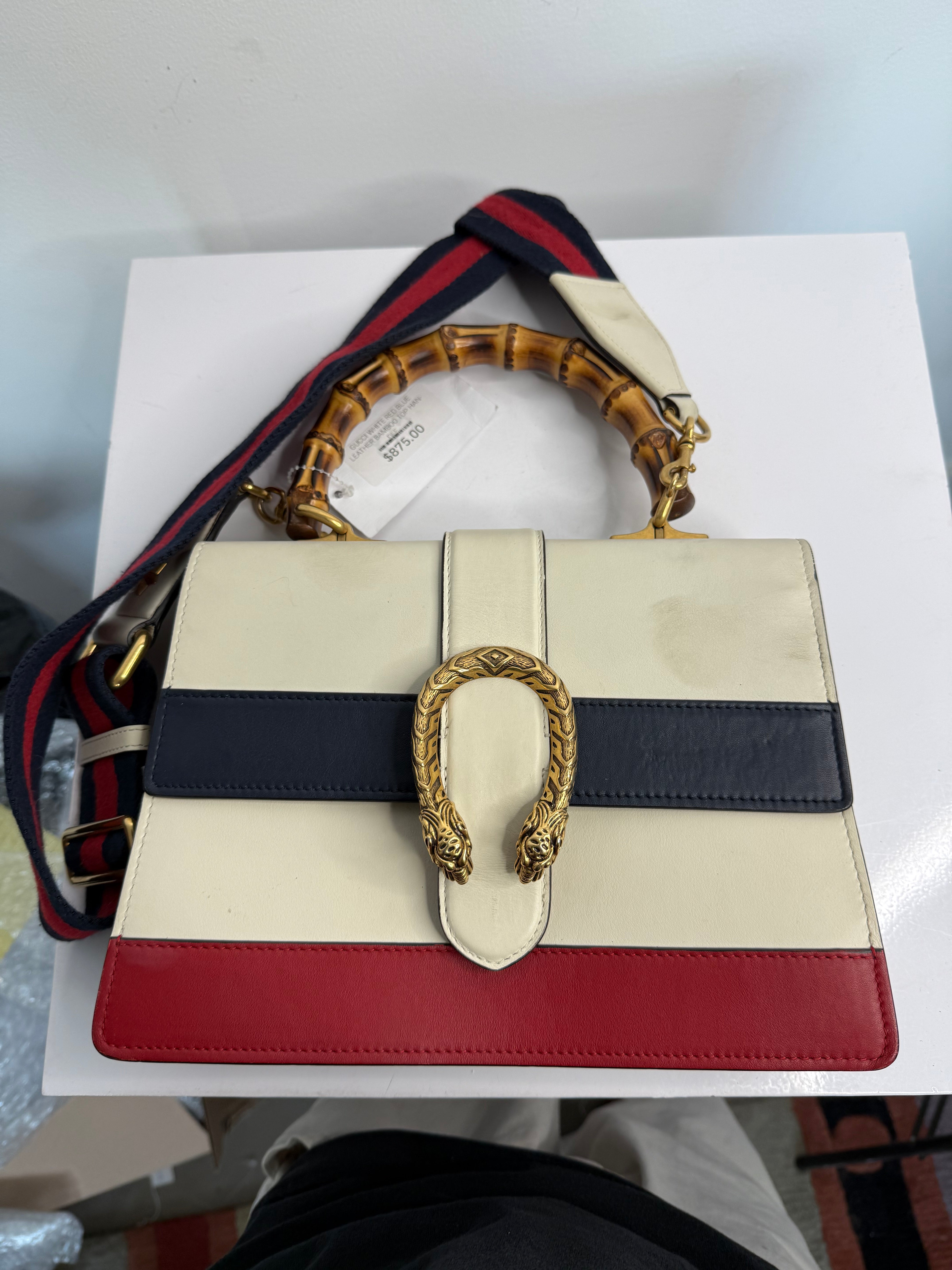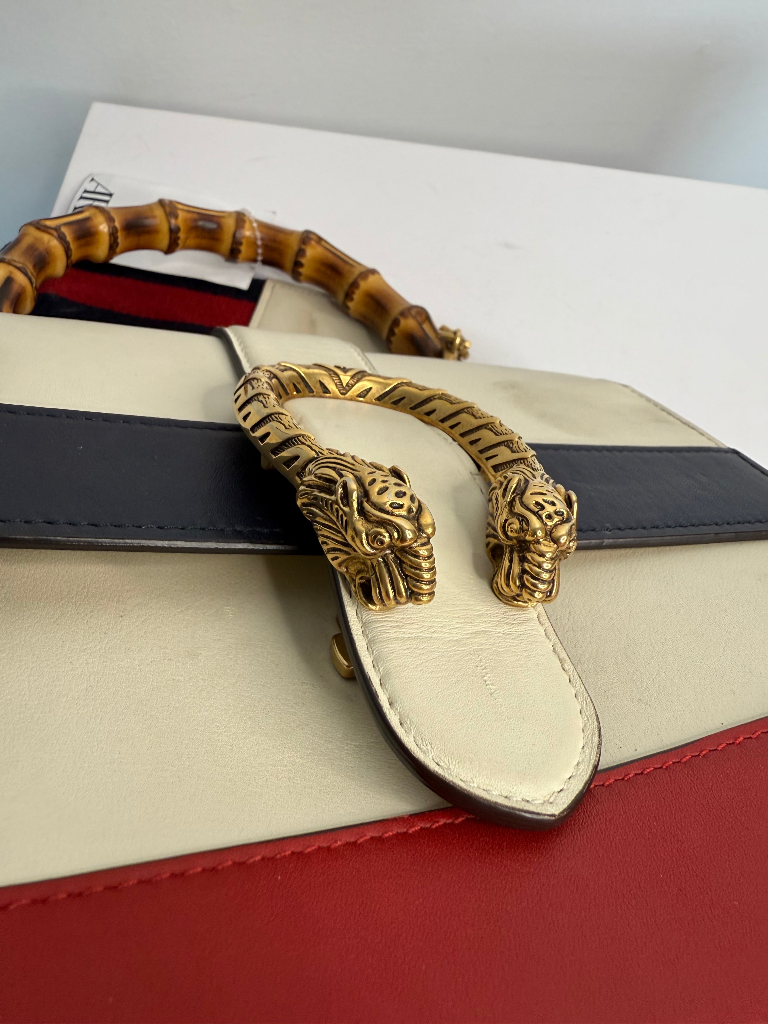Gucci Calfskin Bamboo Web Medium Dionysus Top Handle Bag