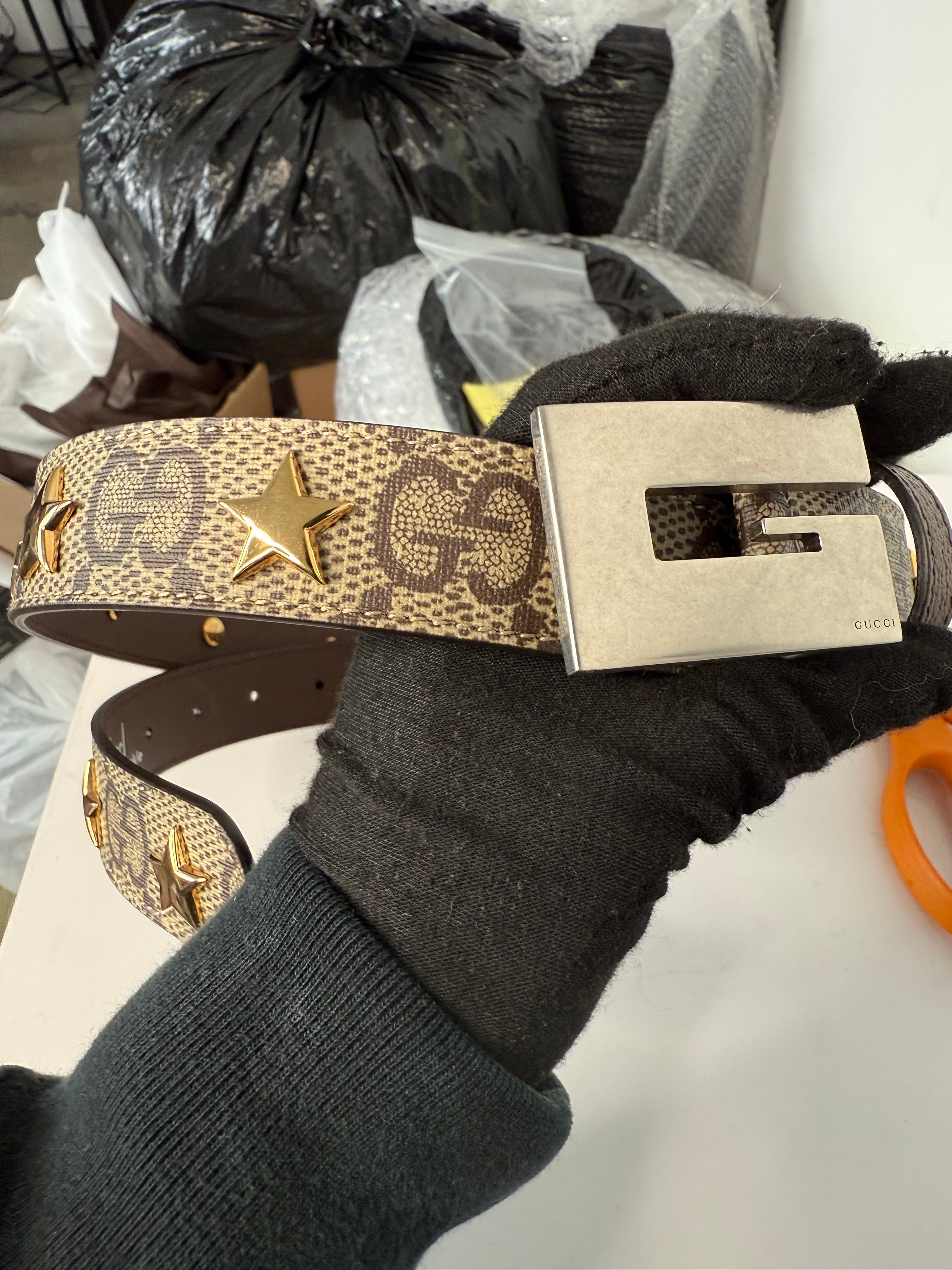 Gucci GG Supreme Stars Studded Belt with Square "G" Buckle w/ Dust Bag