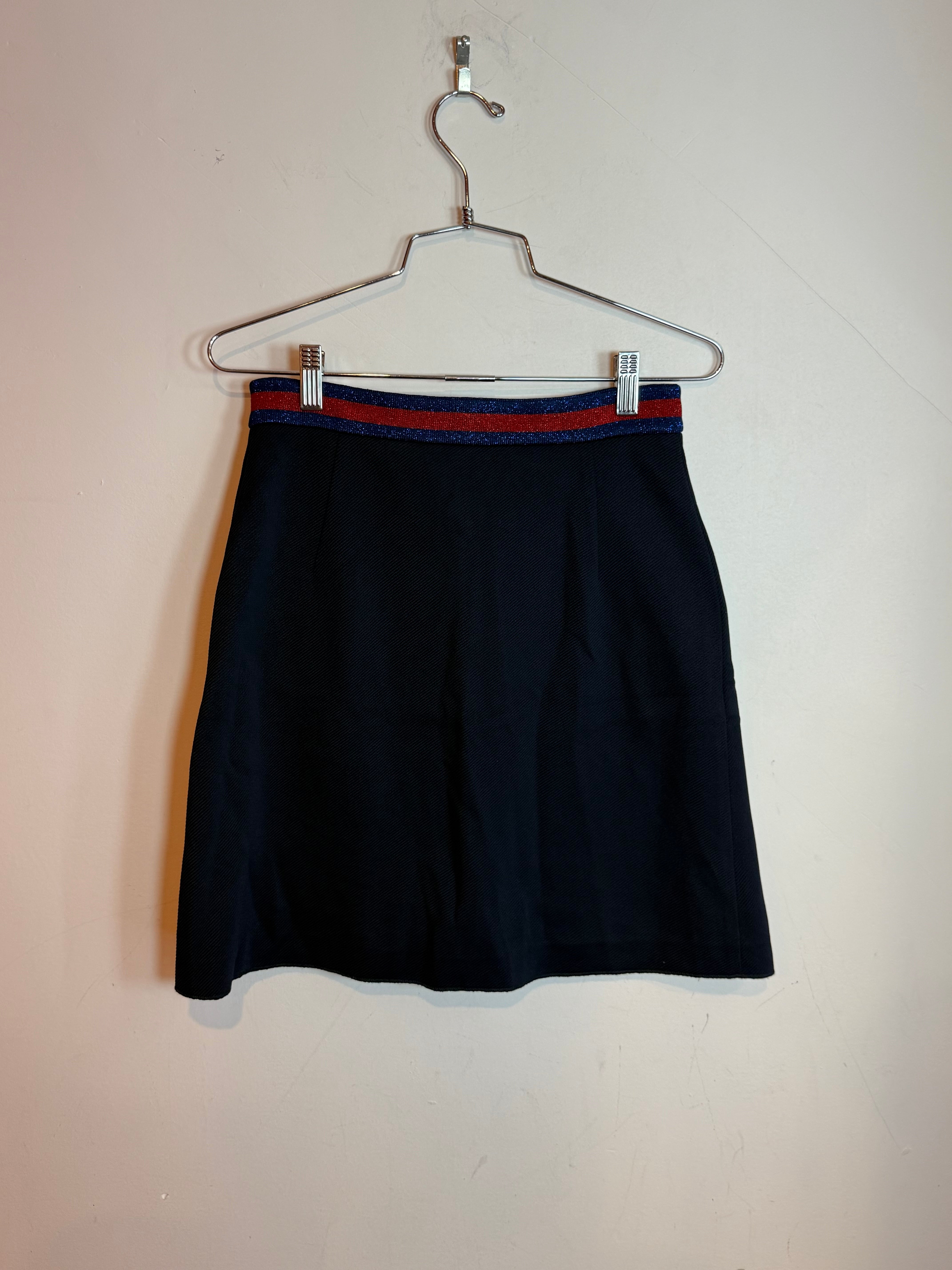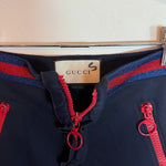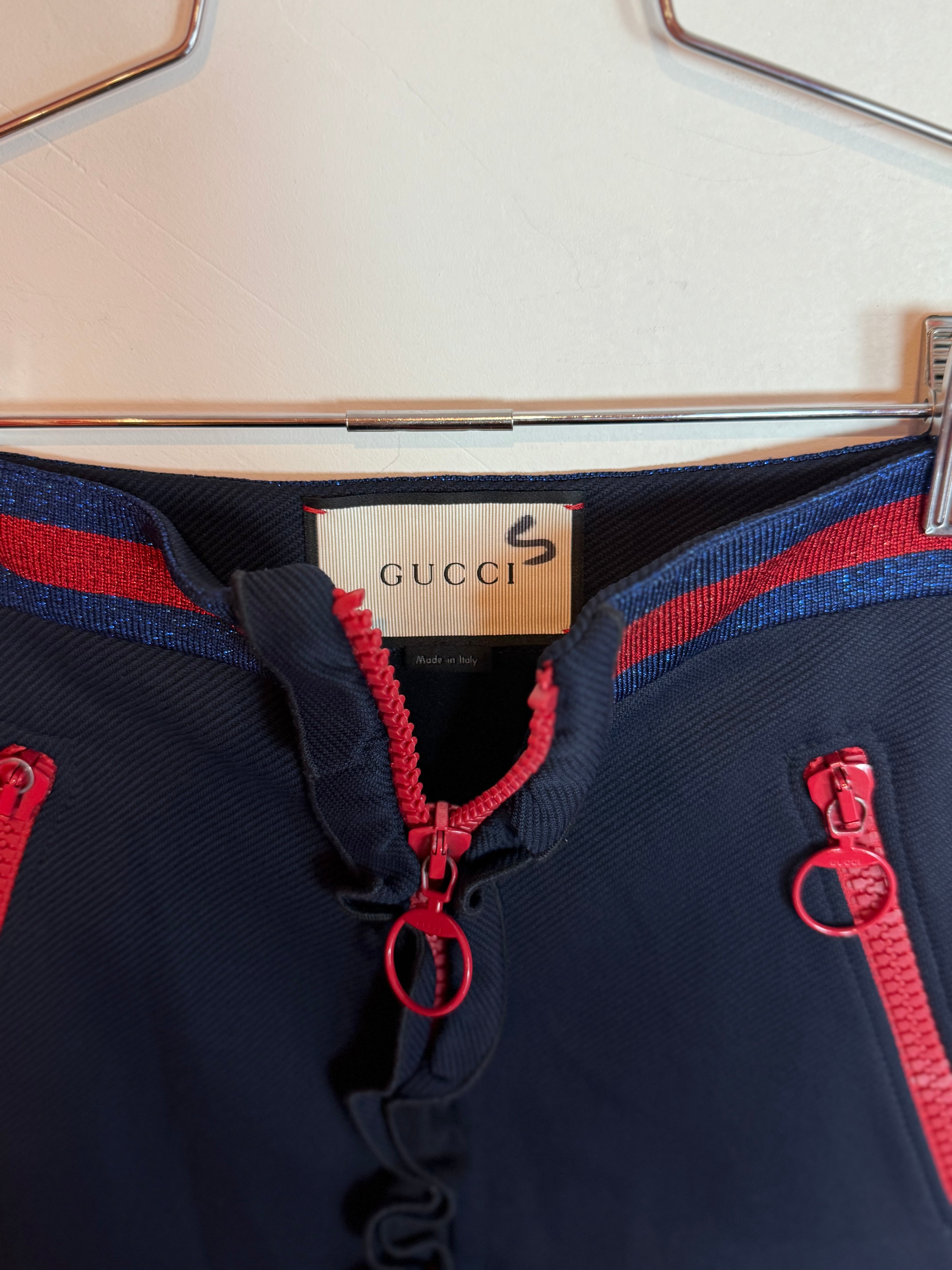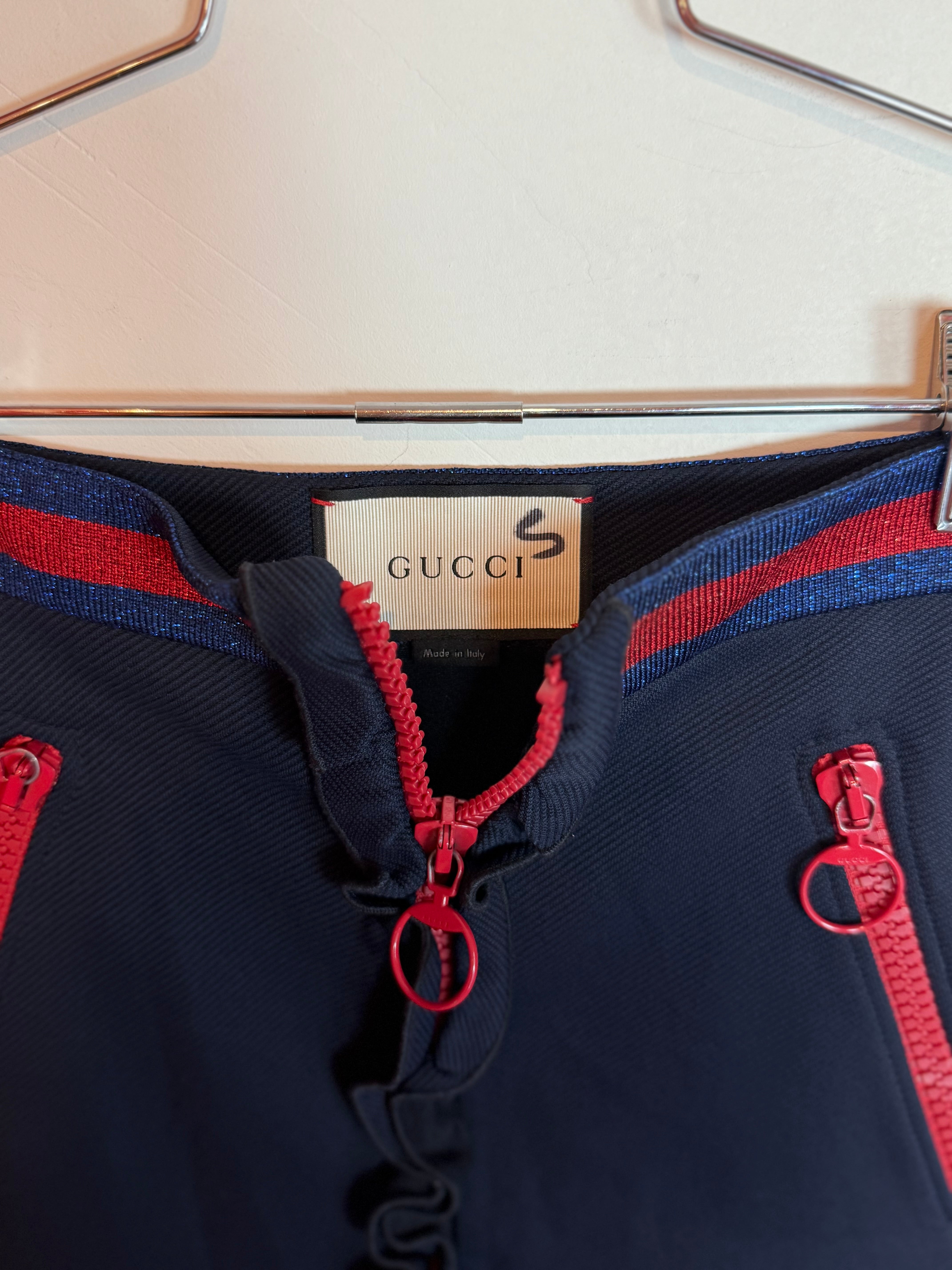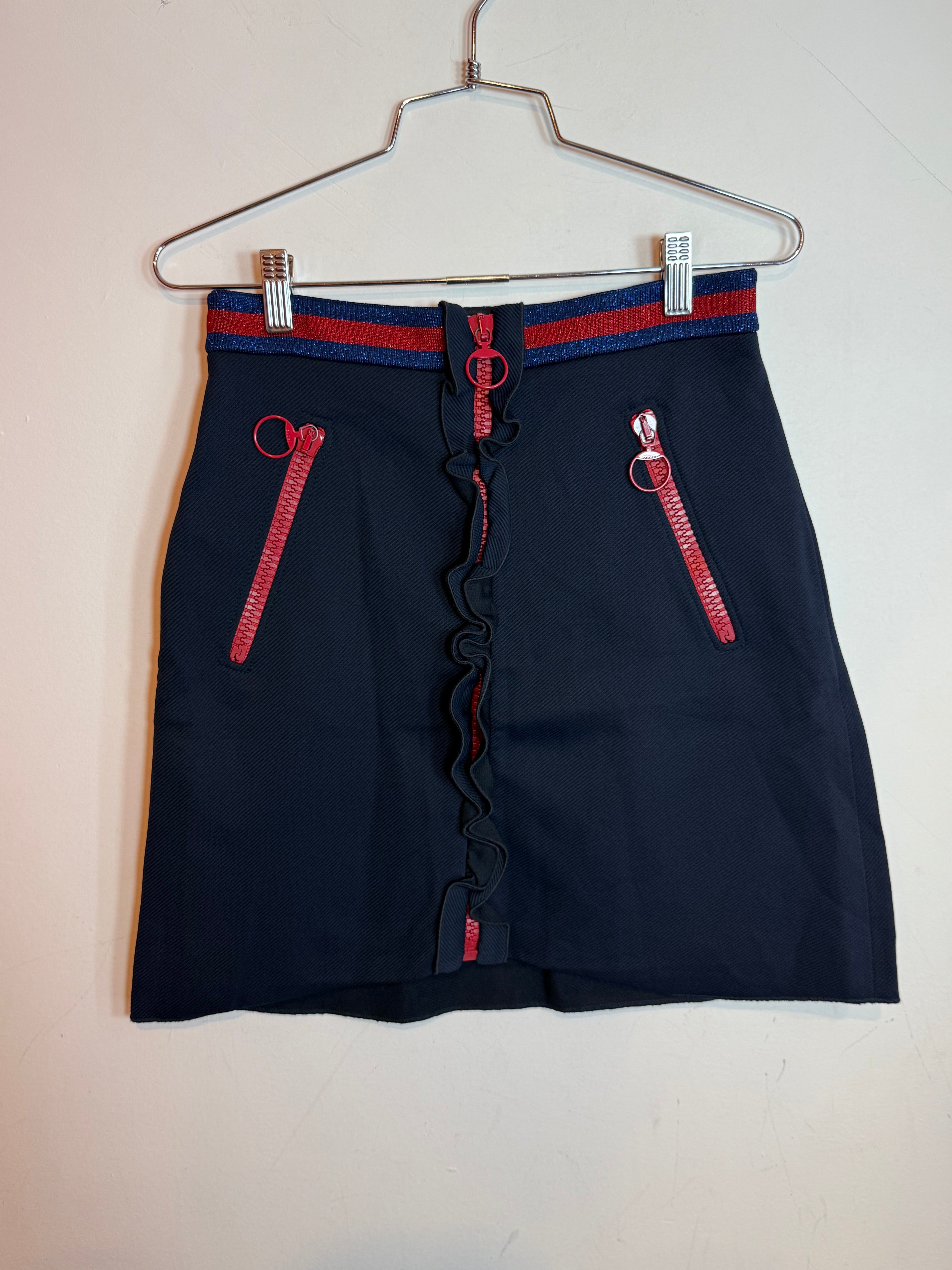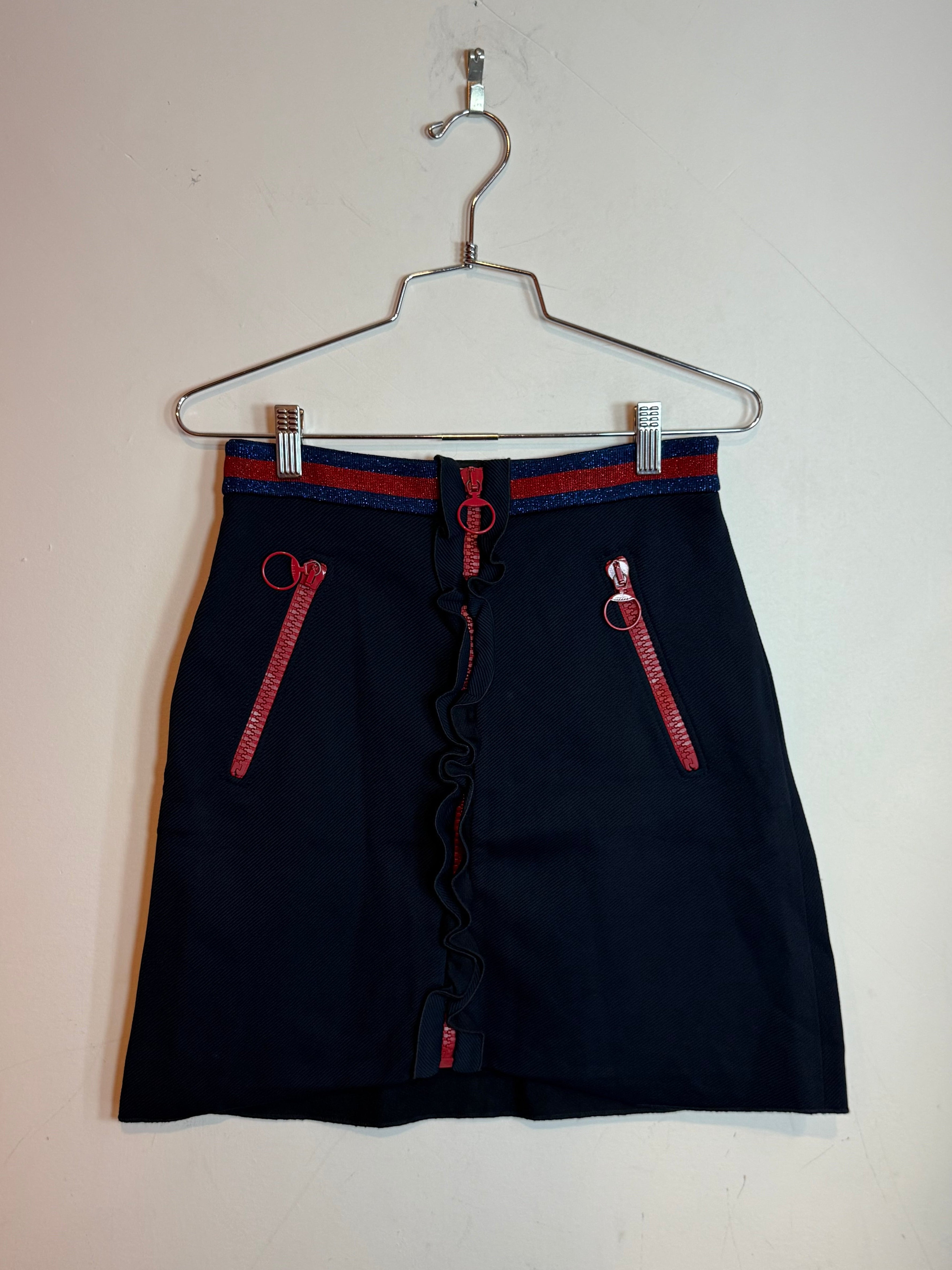 Gucci Lace Flap Skirt Black with Red Ruffle Zip Front and Striped Waist