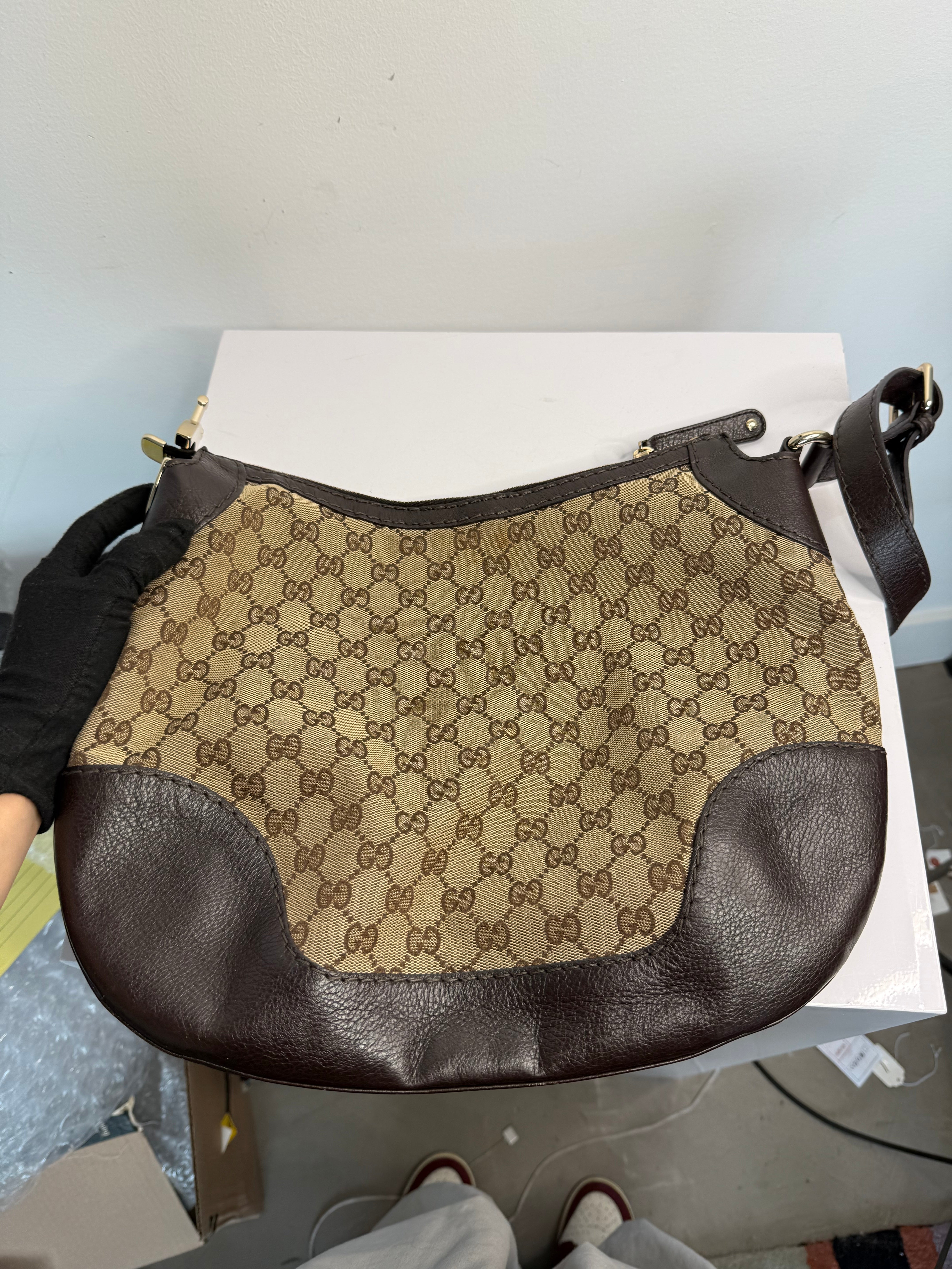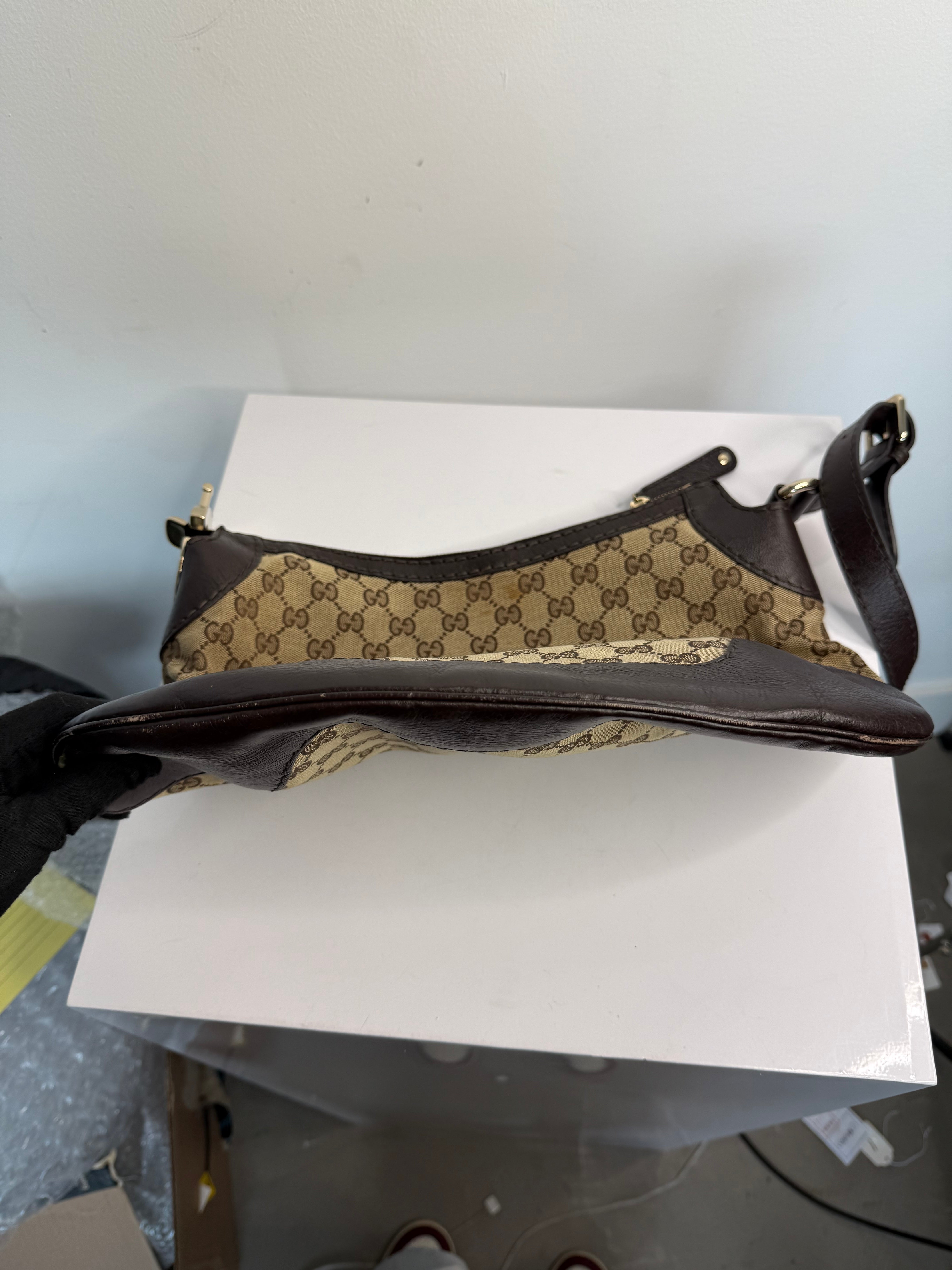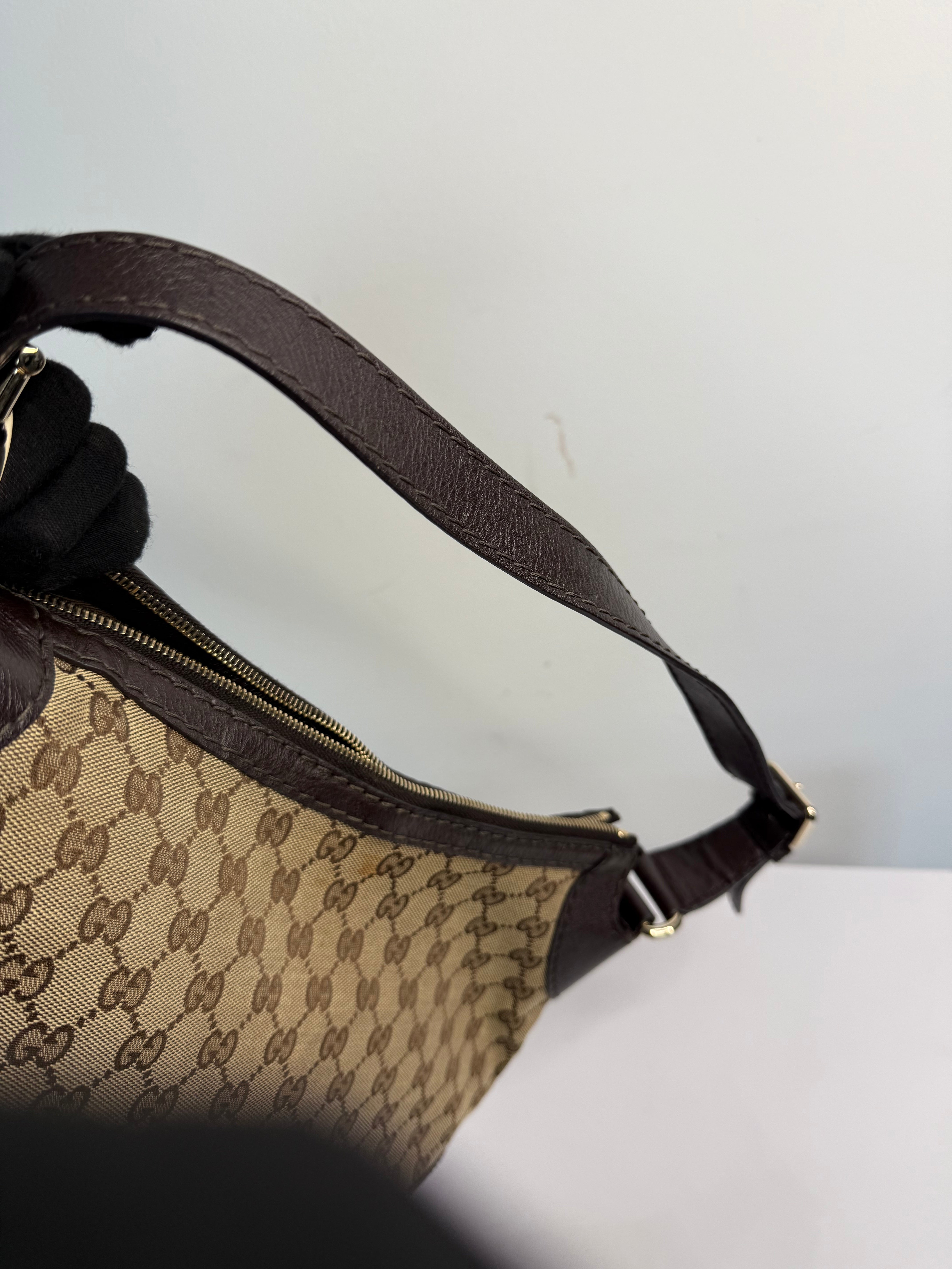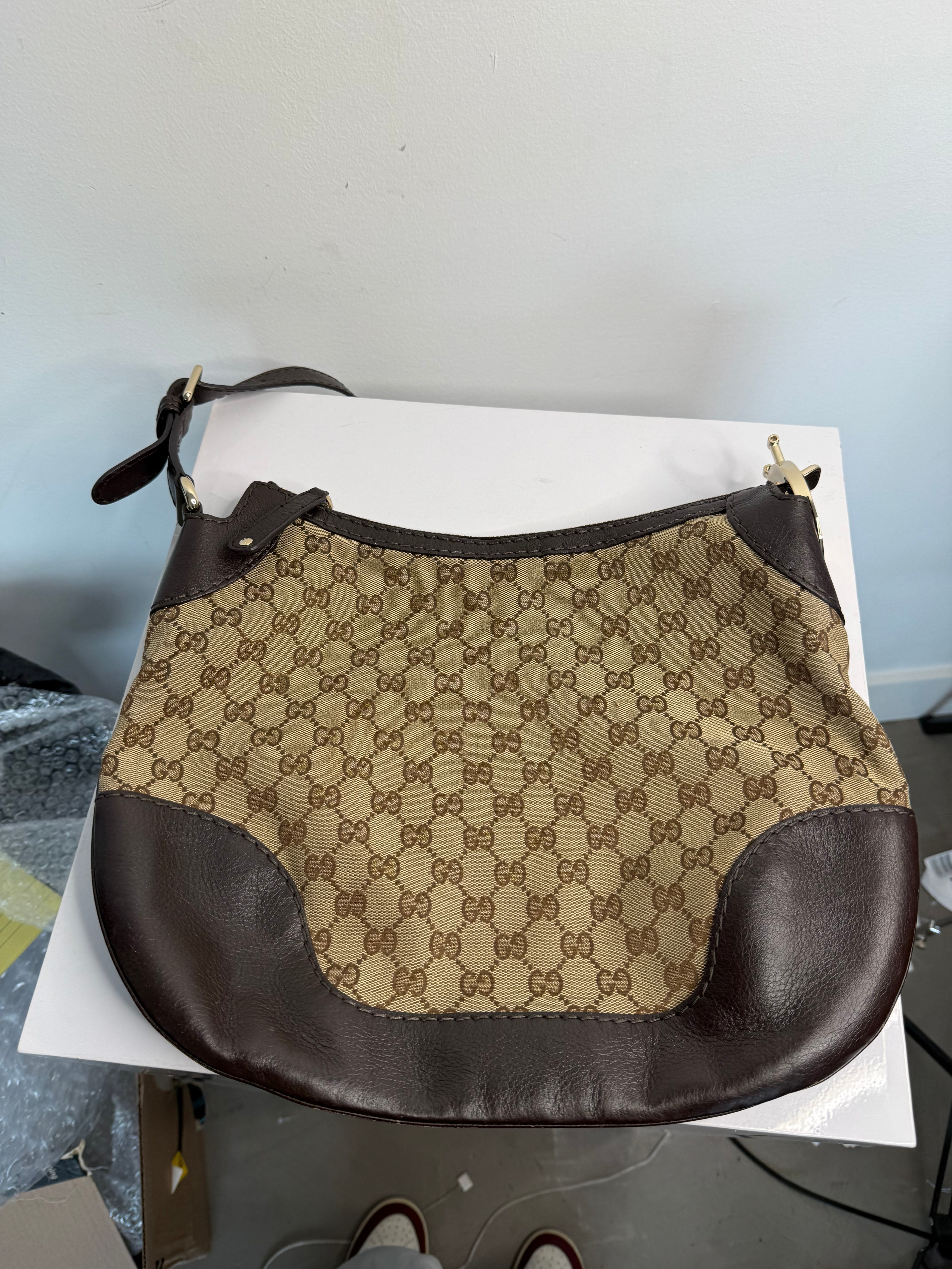 Gucci Monogram Medium Charlotte Hobo Shoulder Bag Beige Brown