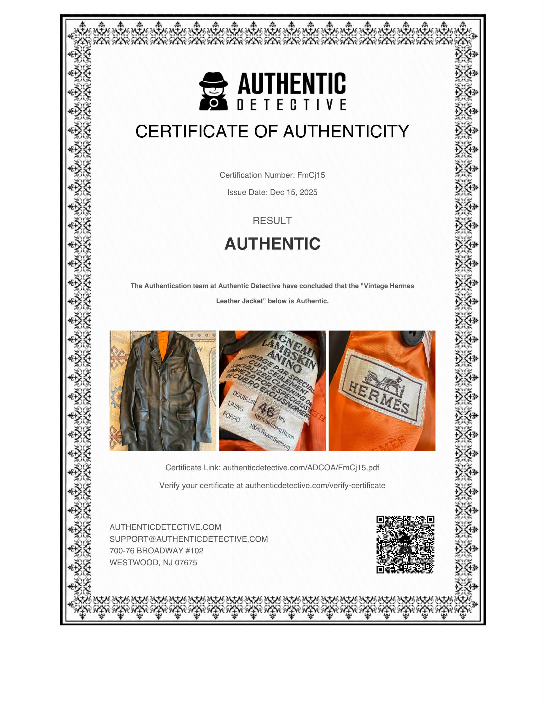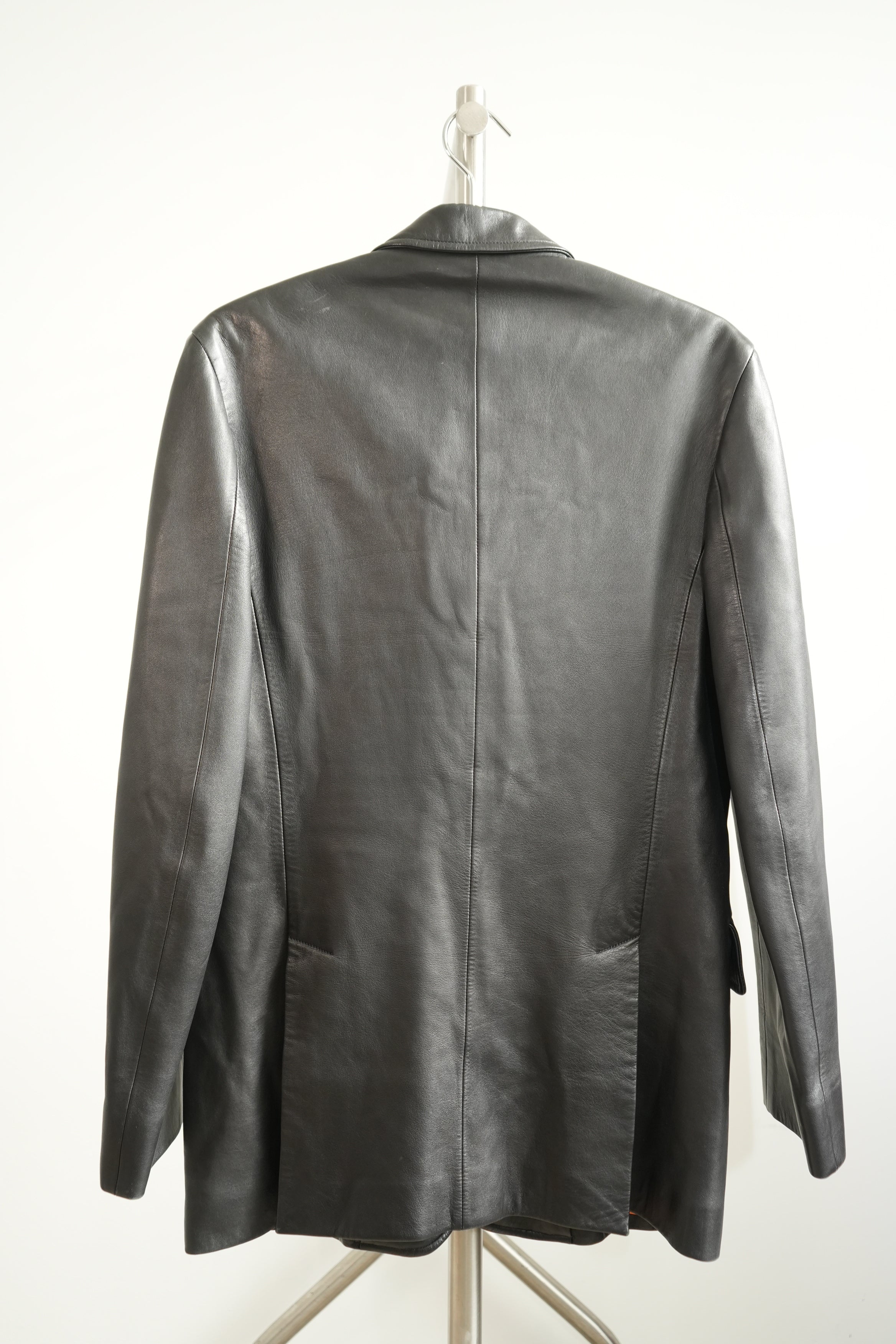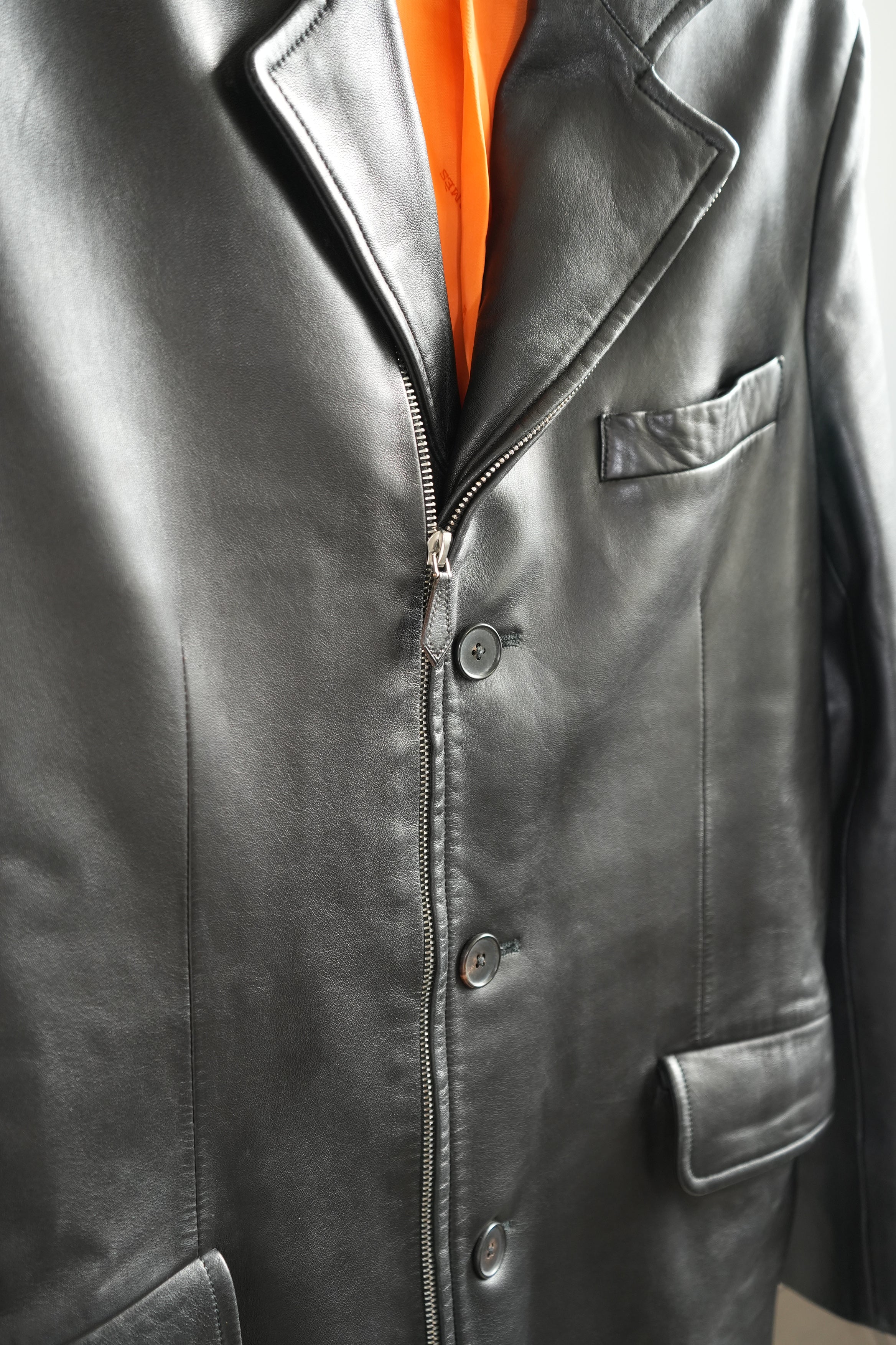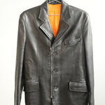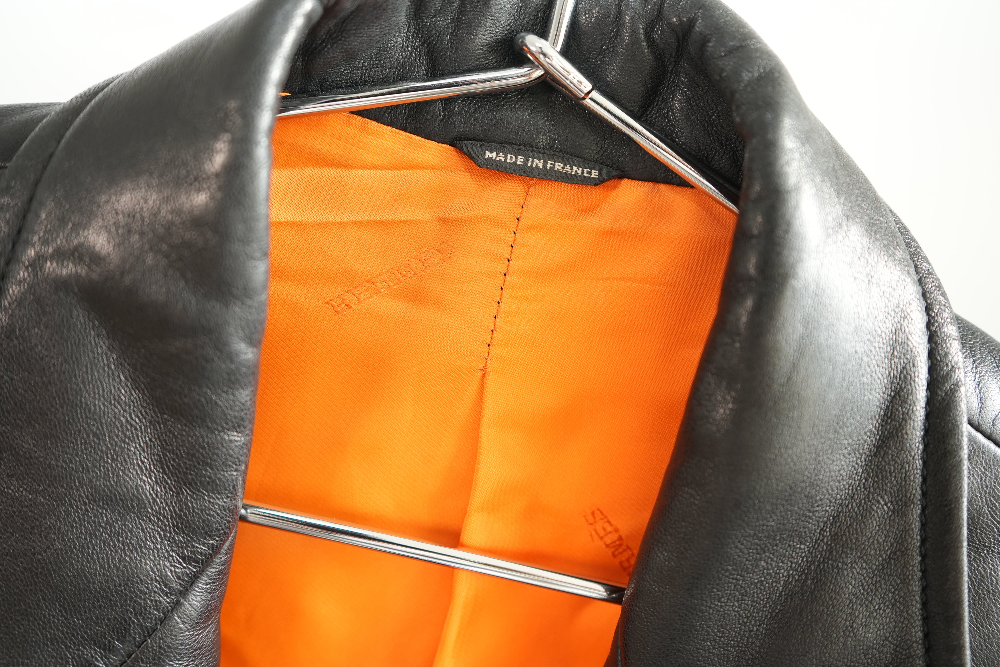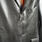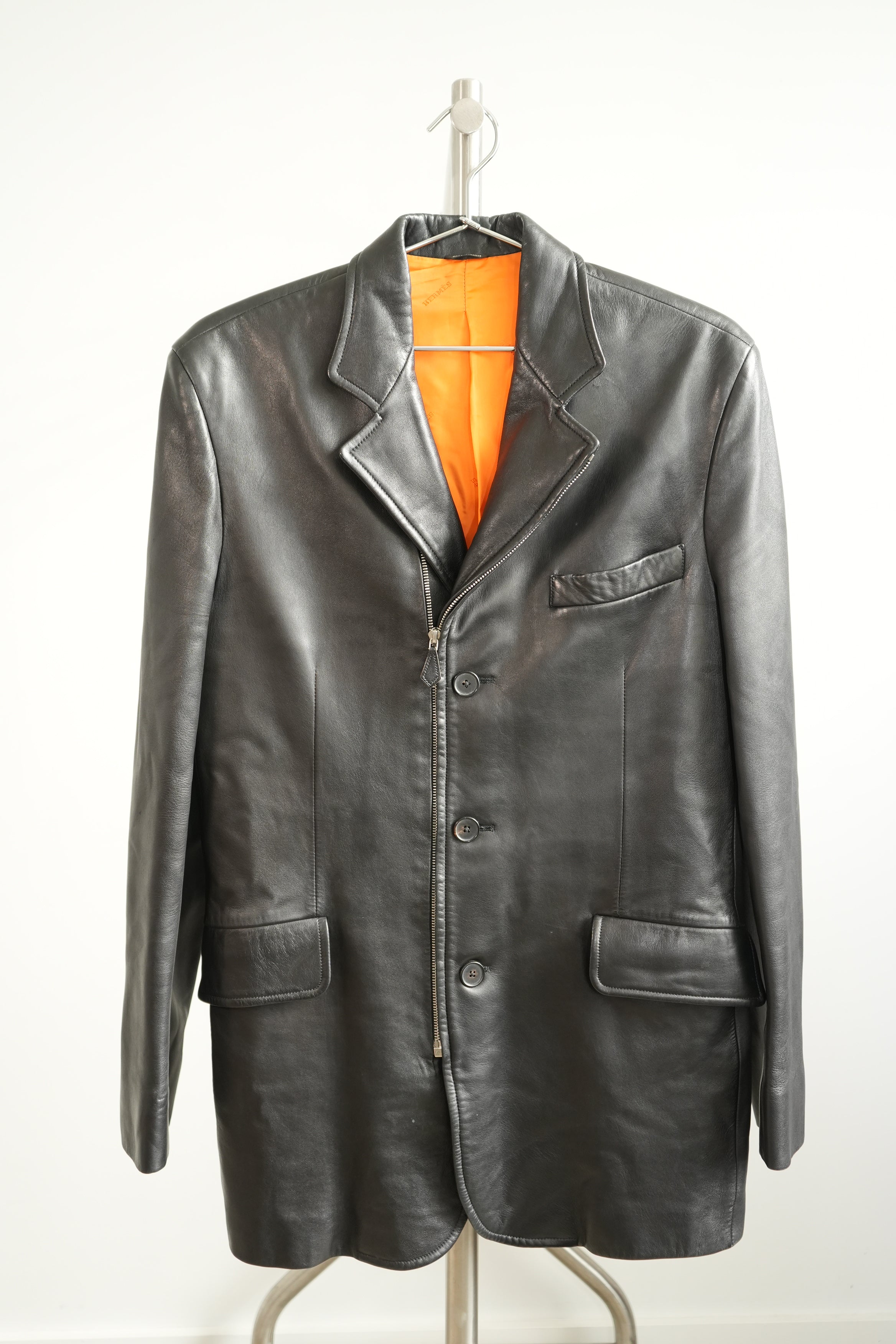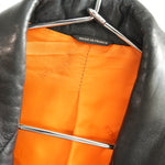 Hermes Black Leather 3-Button Blazer Jacket Orange Lining
