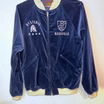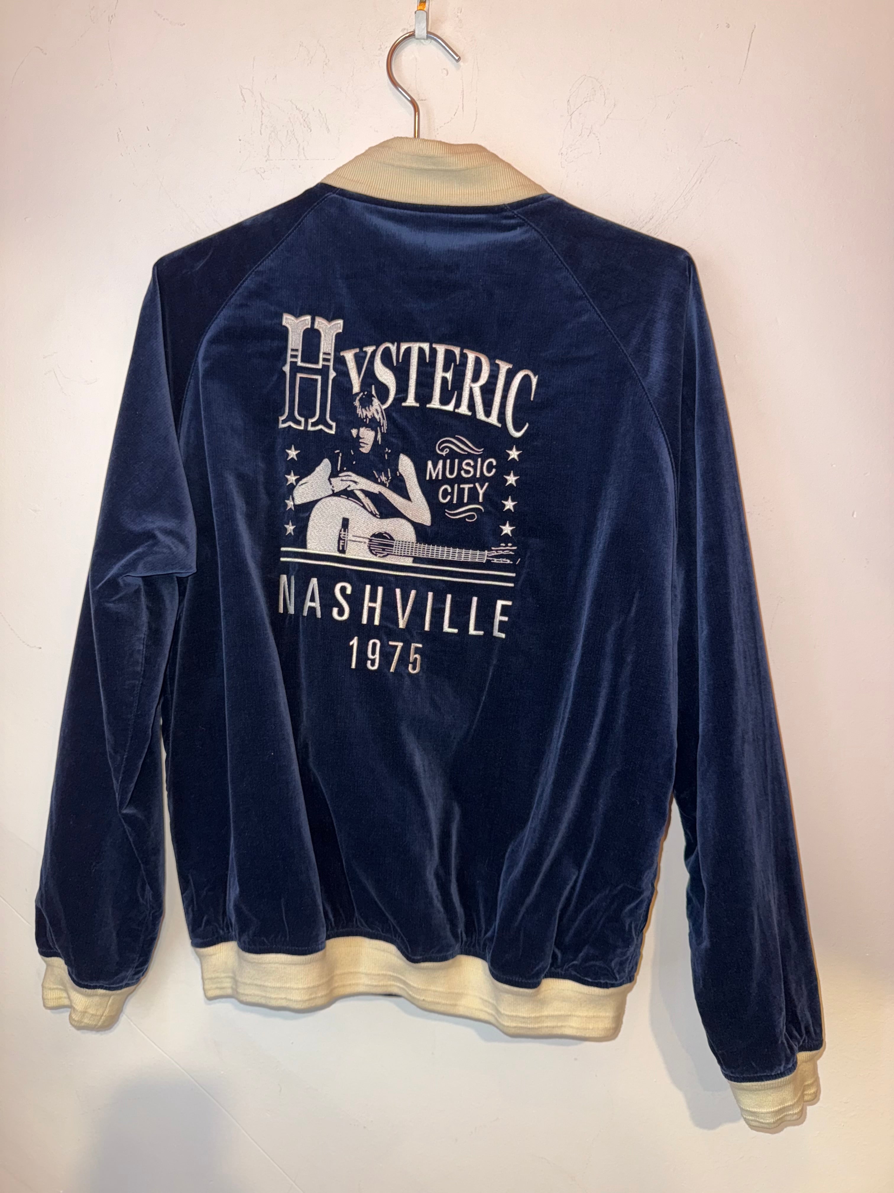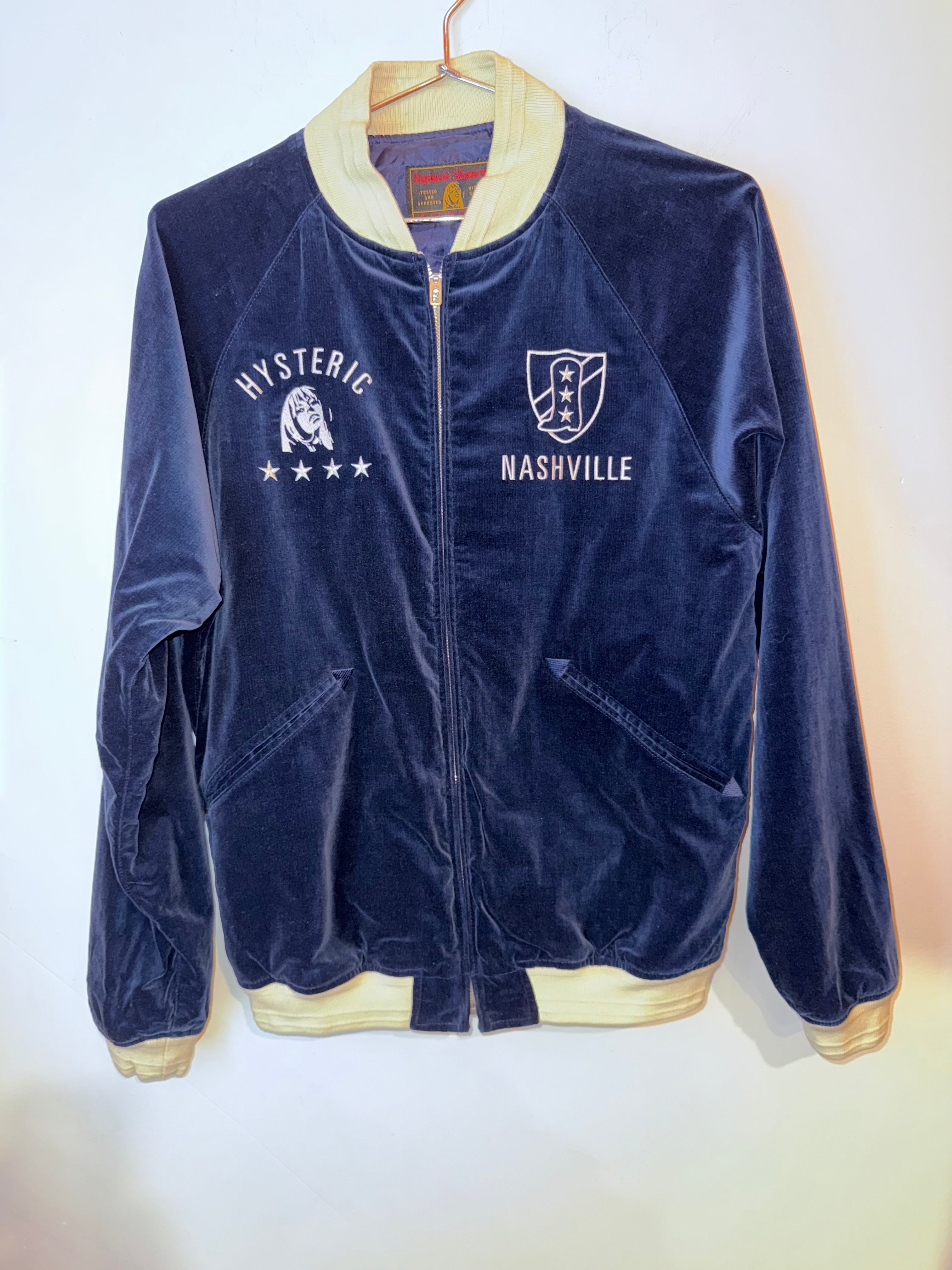 Hysteric Glamour Velvet Varsity Jacket Navy Blue and White