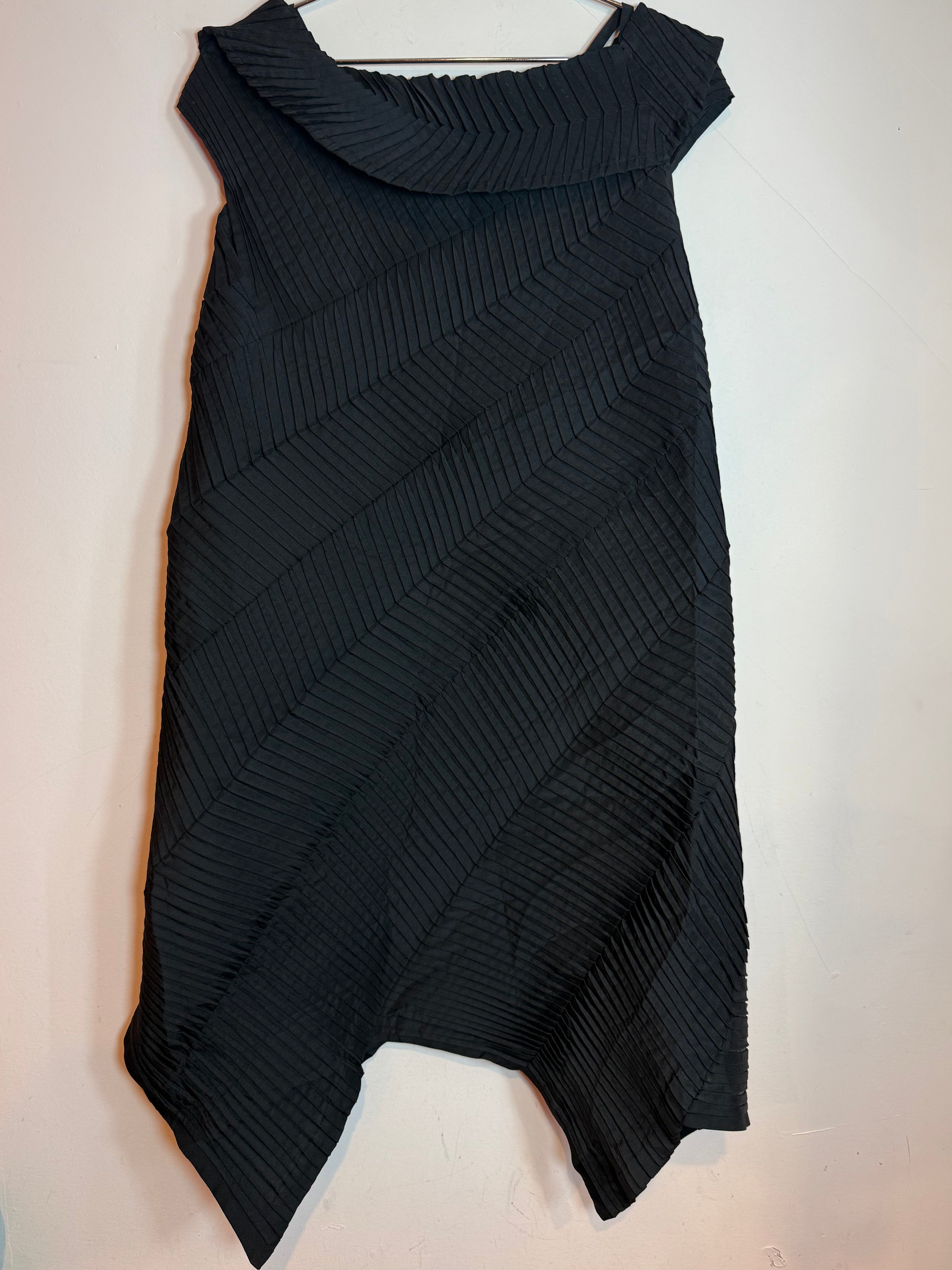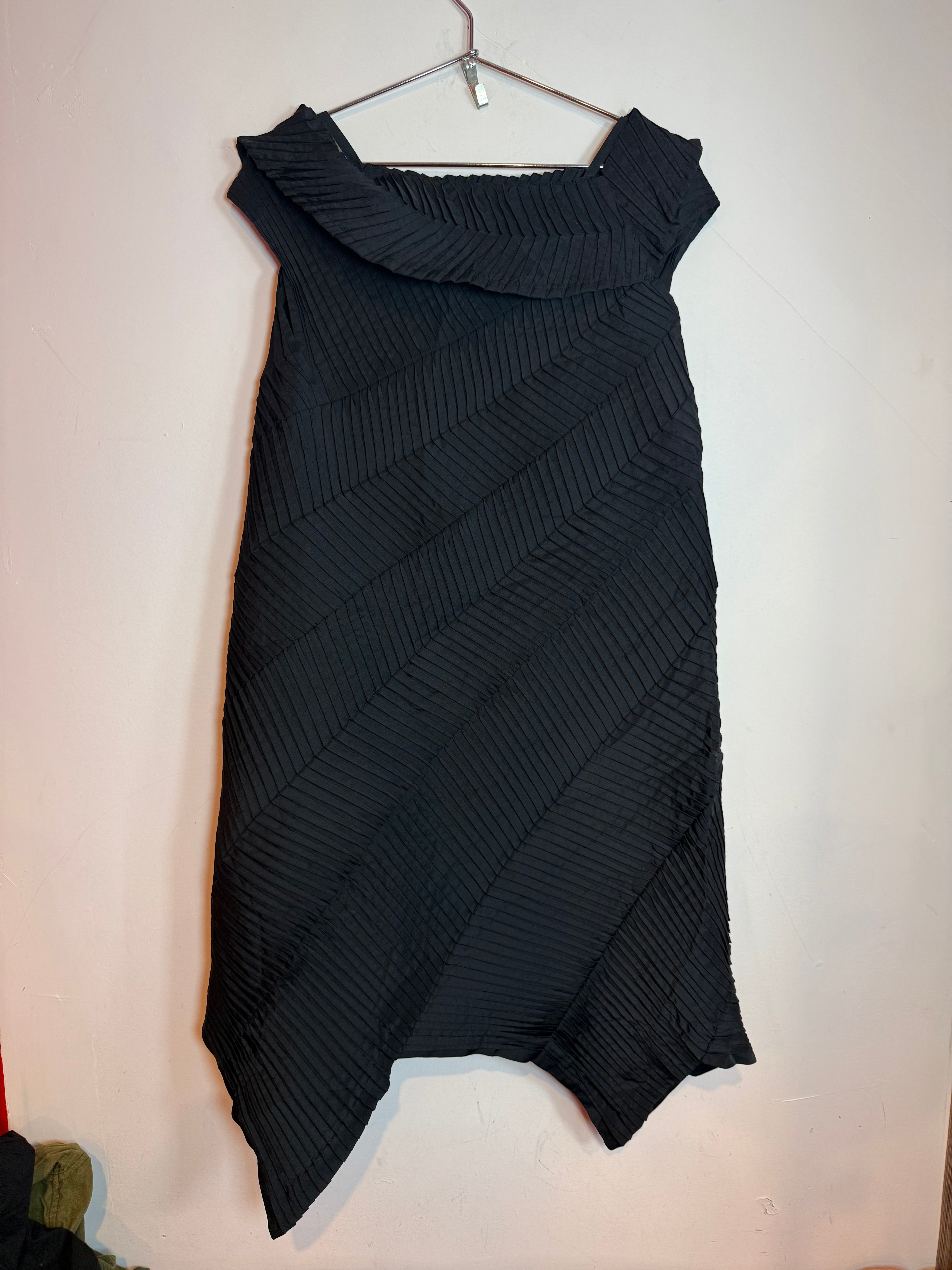 Issey Miyake Black Pleated Asymmetrical Sleeveless Dress Sample