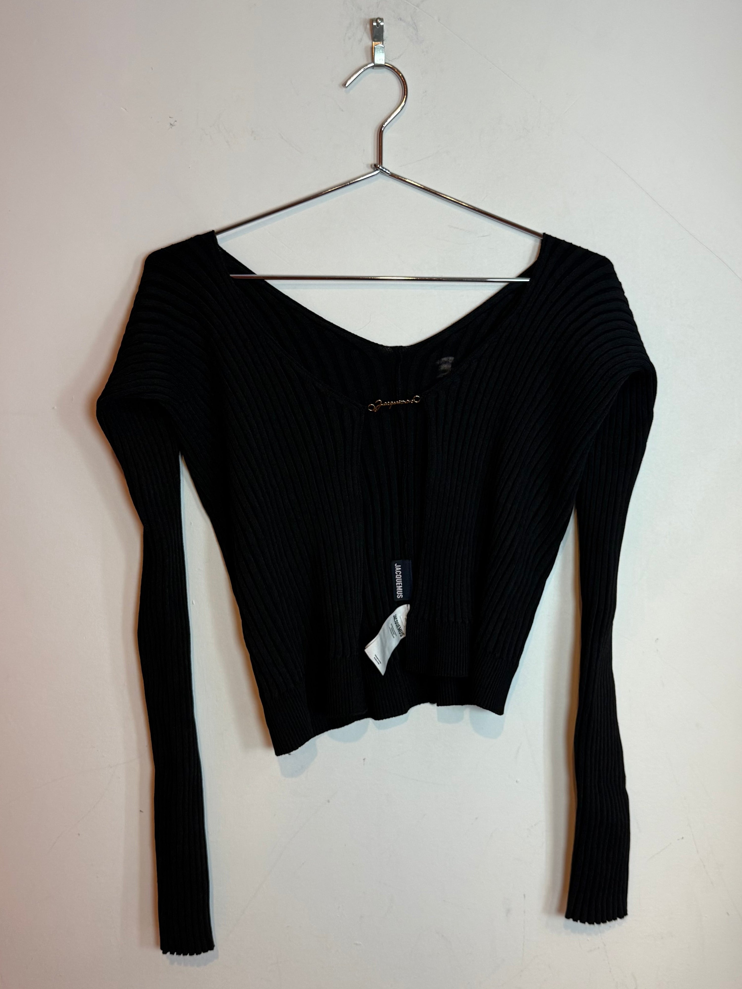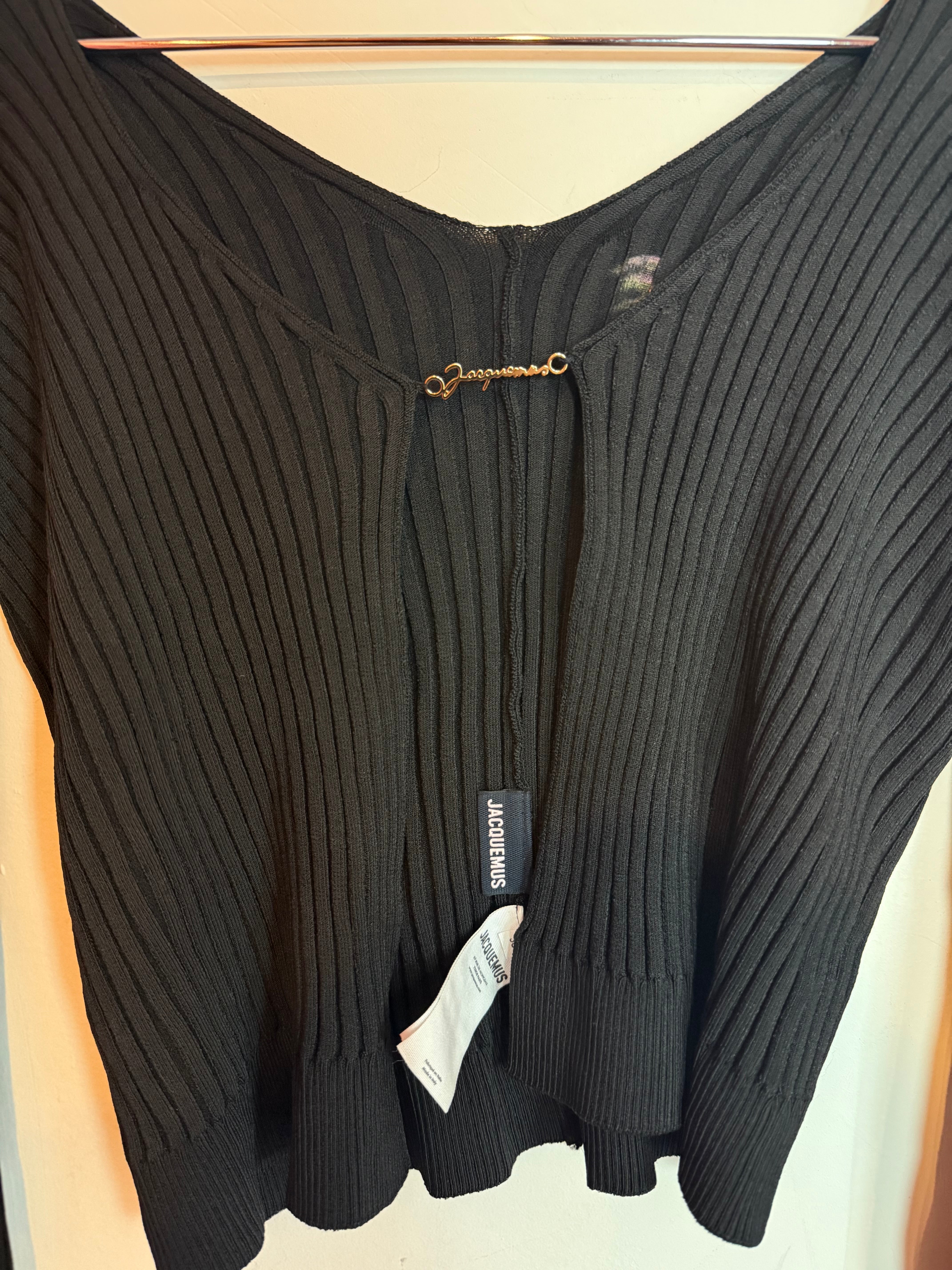 Jacquemus La Maille Pralù Longue Cardigan Black w/ Gold-toned Logo Size 36
