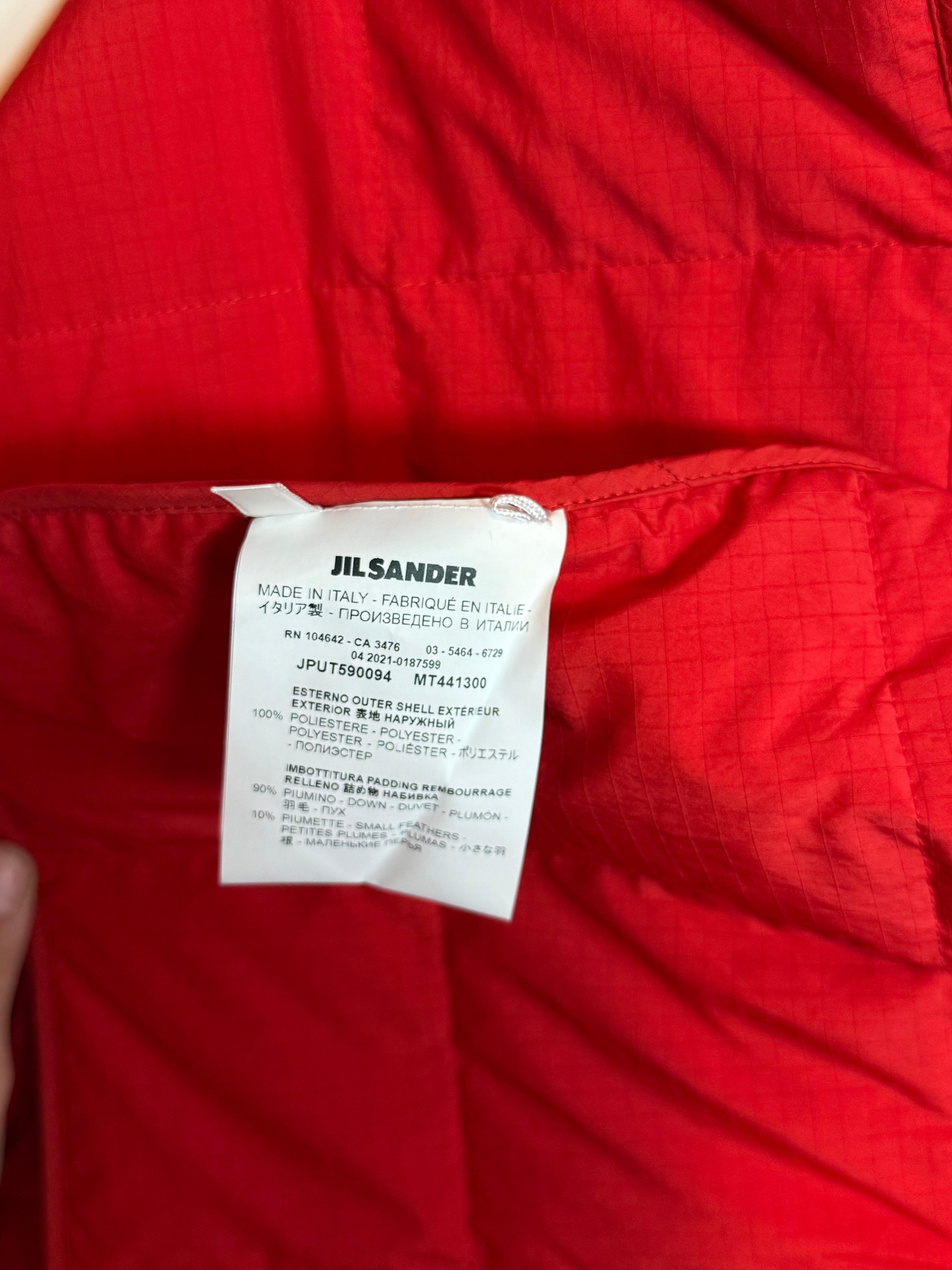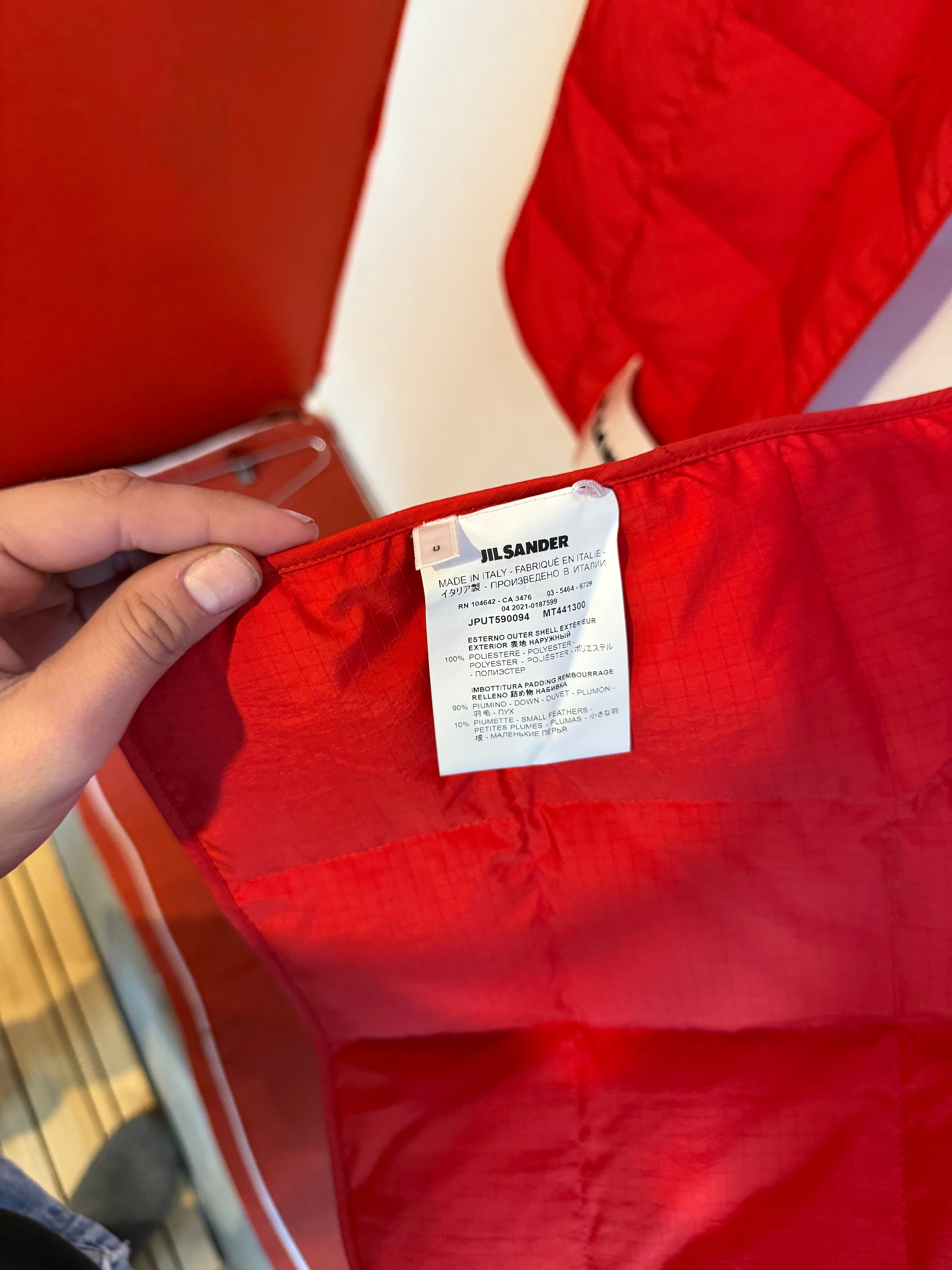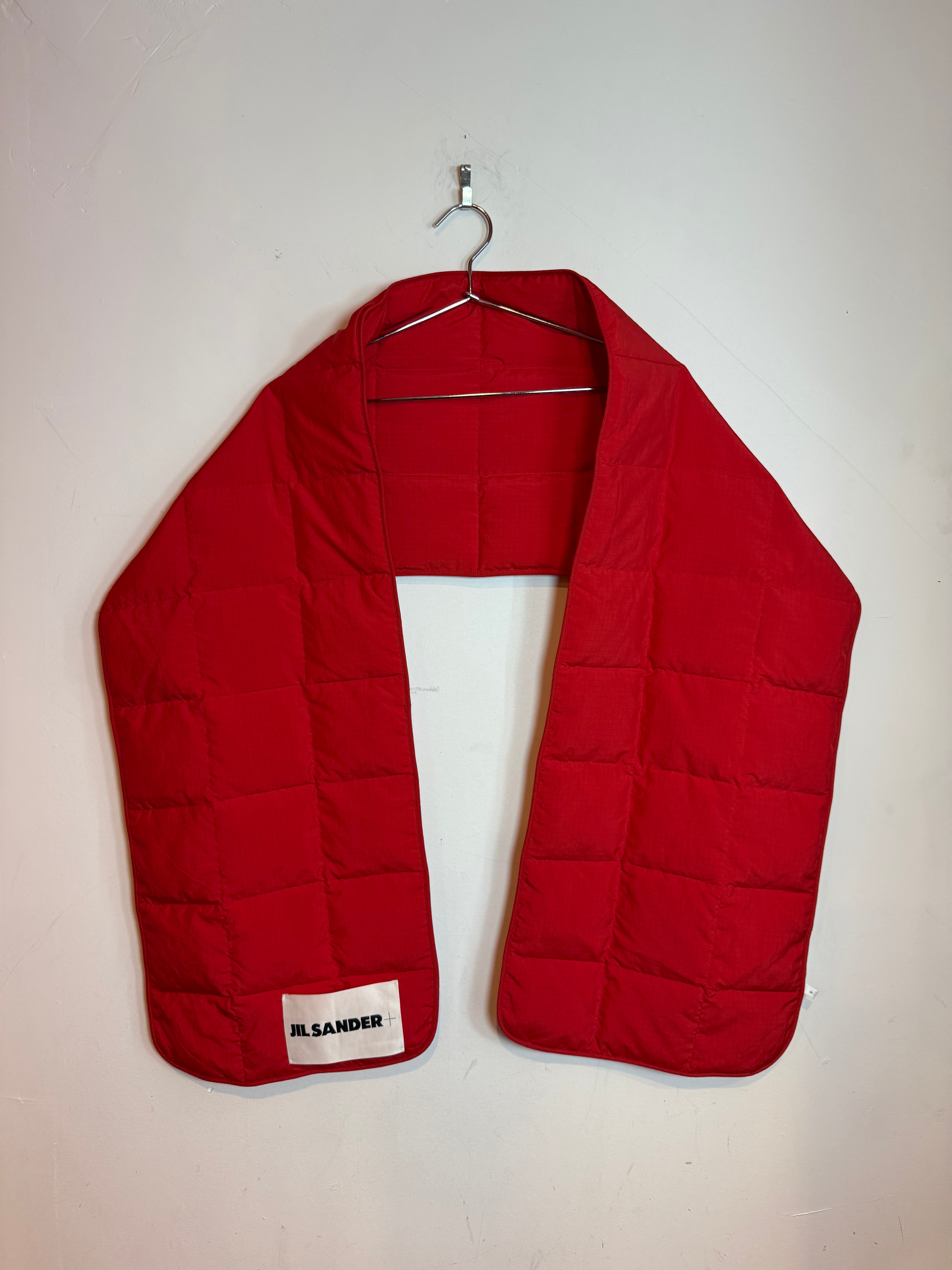 Jil Sander Red Quilted Down Puffer Scarf with Logo Patch