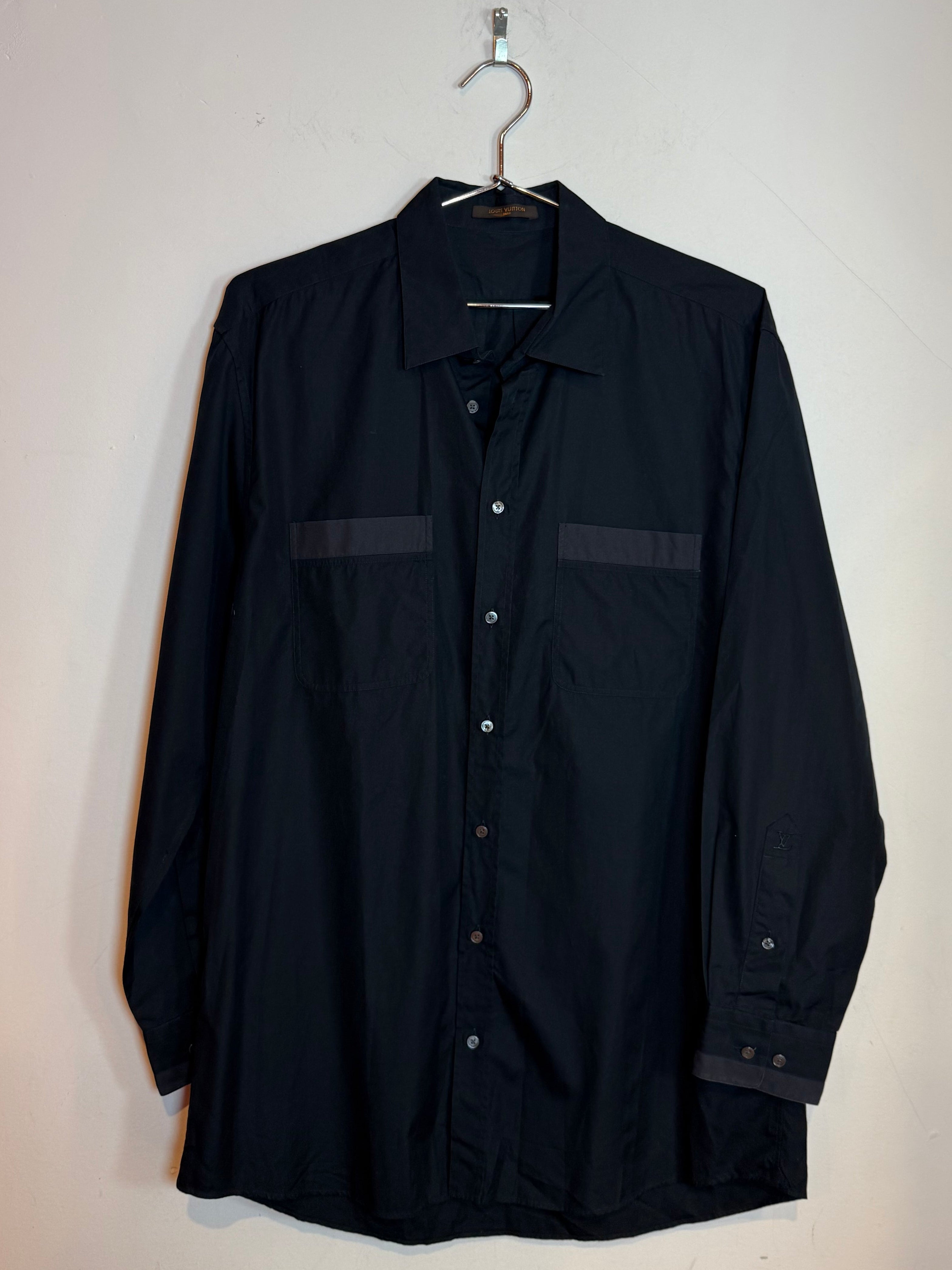 Louis Vuitton Two Pocket Chest Stripe Detail Button-Up Long Sleeve Shirt Black