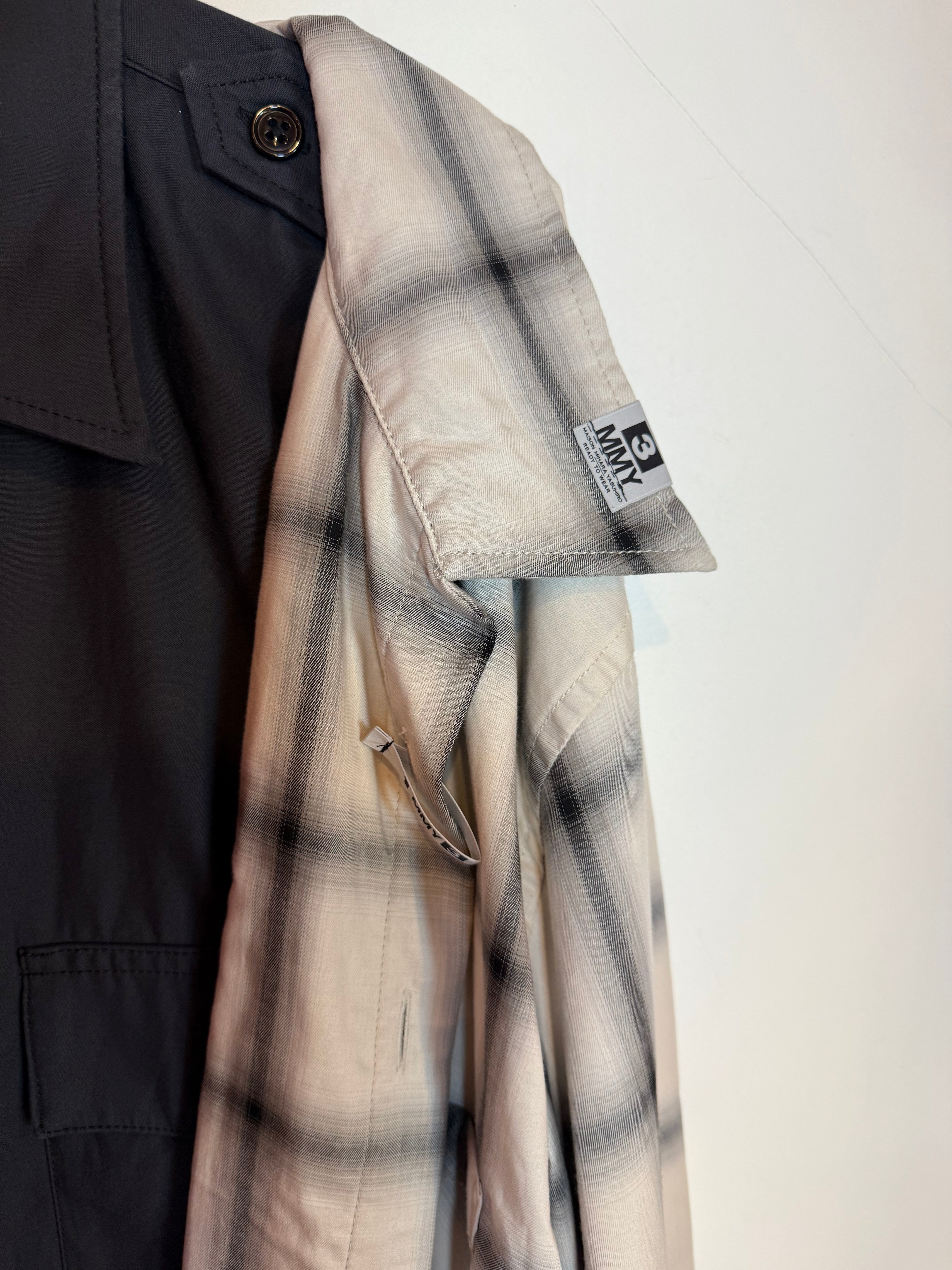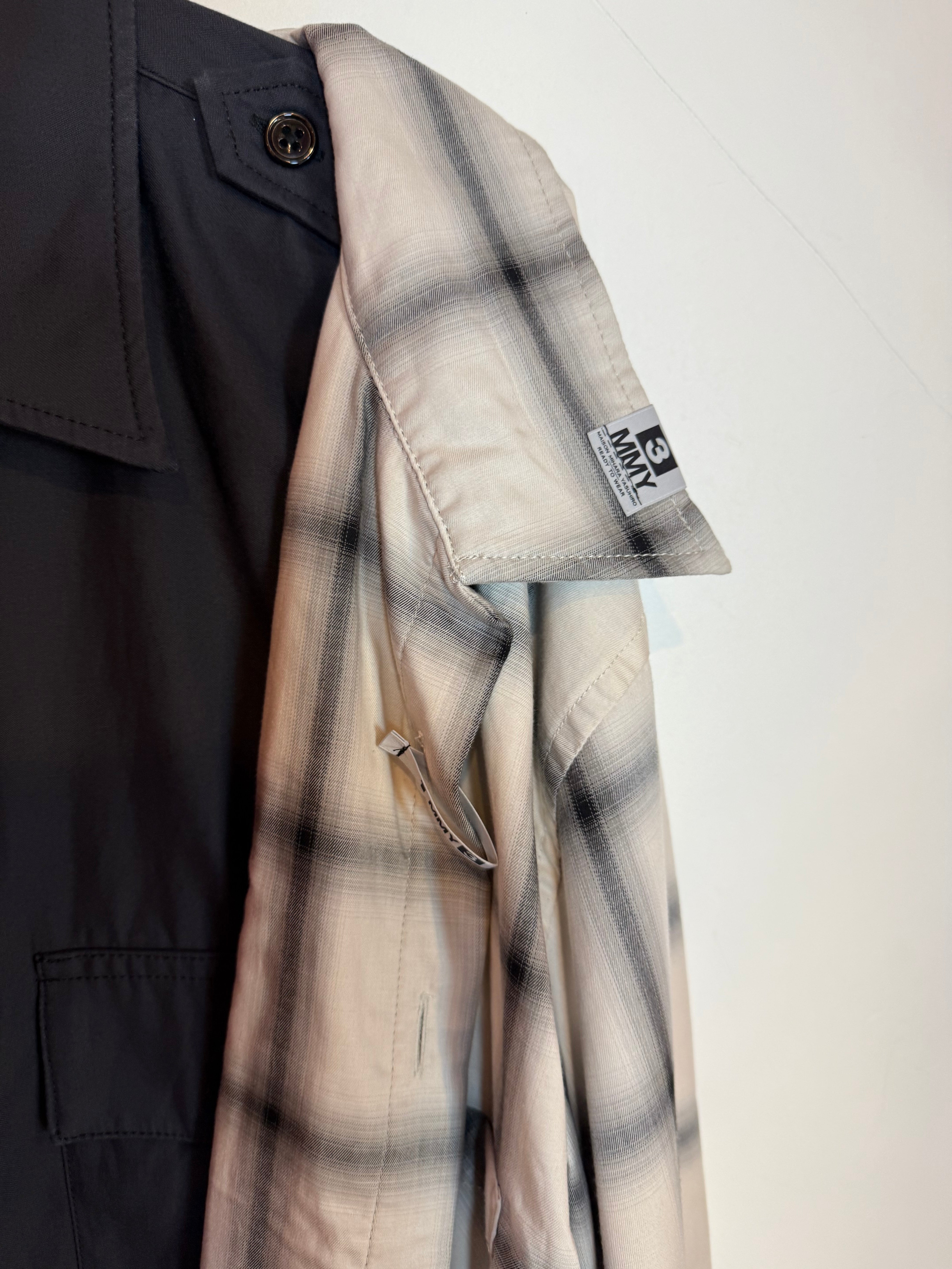 Maison Mihara Yasuhiro Left Docking Shirt Plaid & Black Long Sleeve Button Up