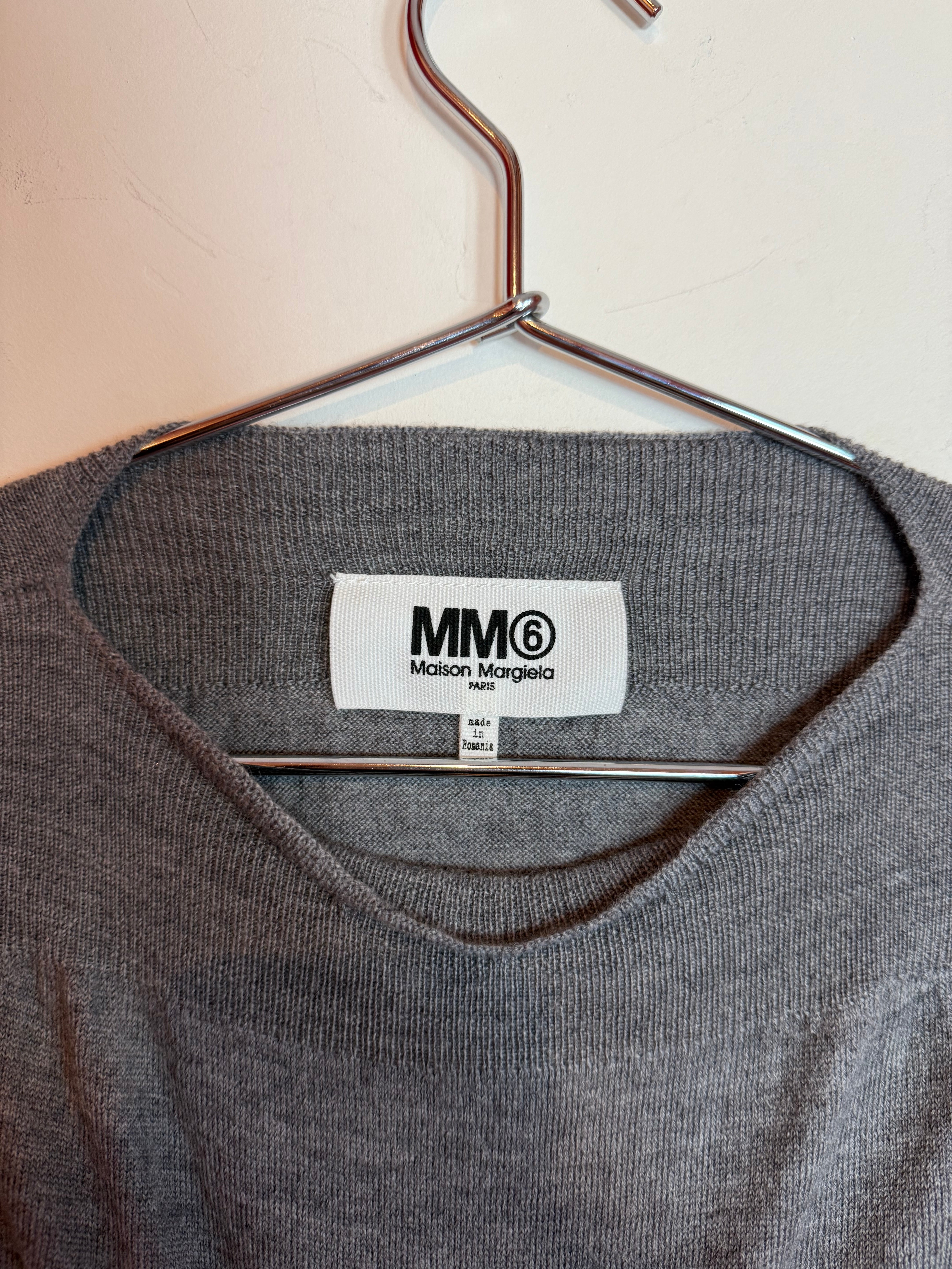 MM6 Maison Margiela Tie Front Knitted Pullover Sweater Gray