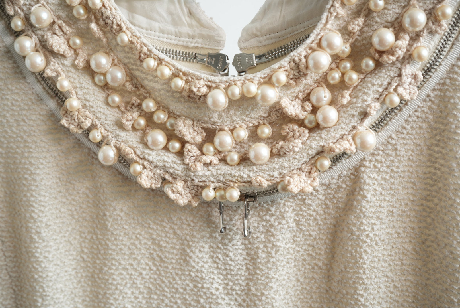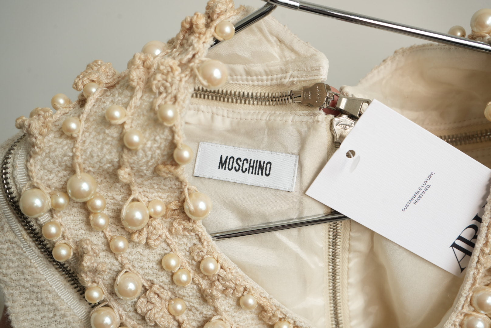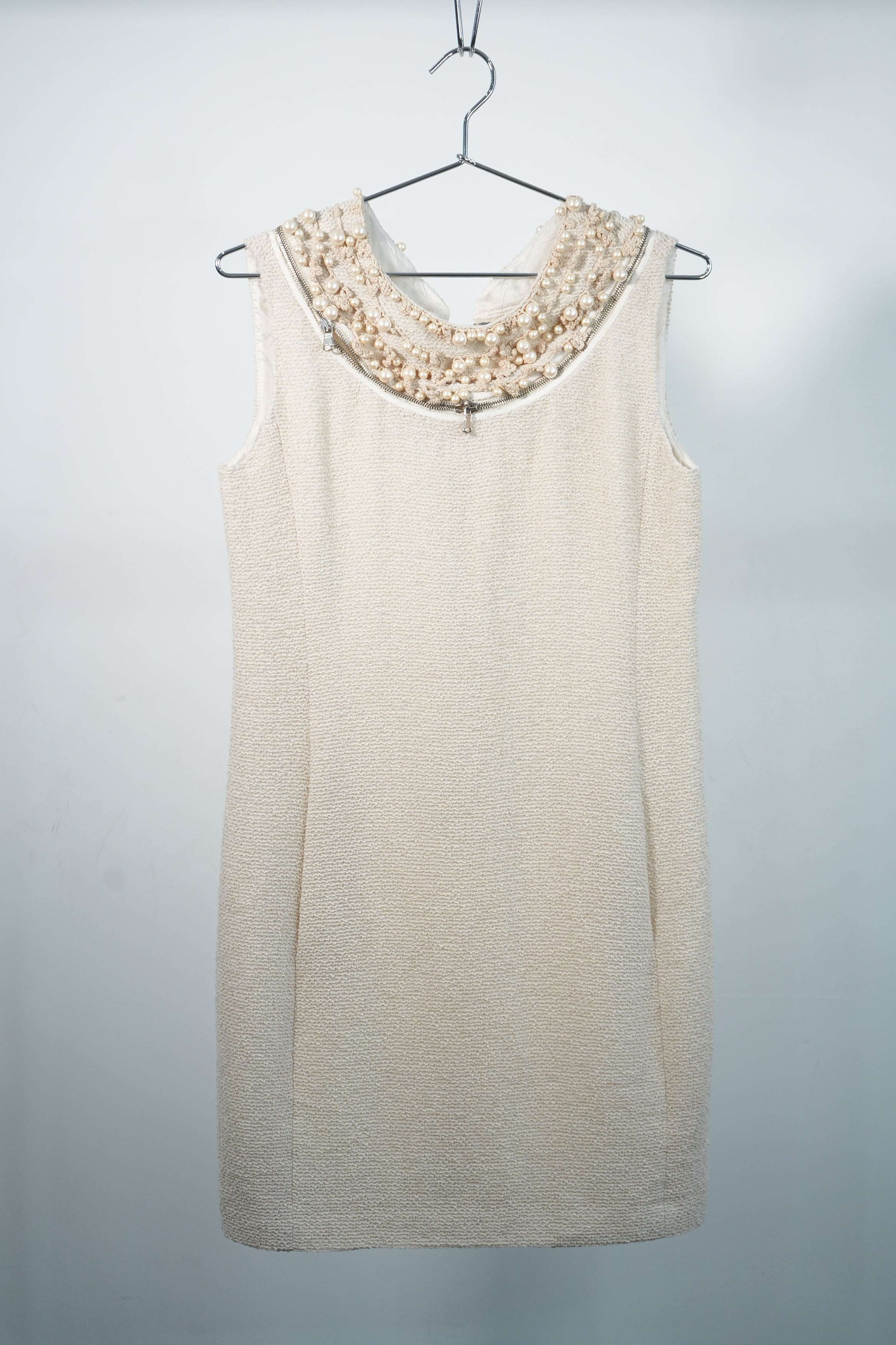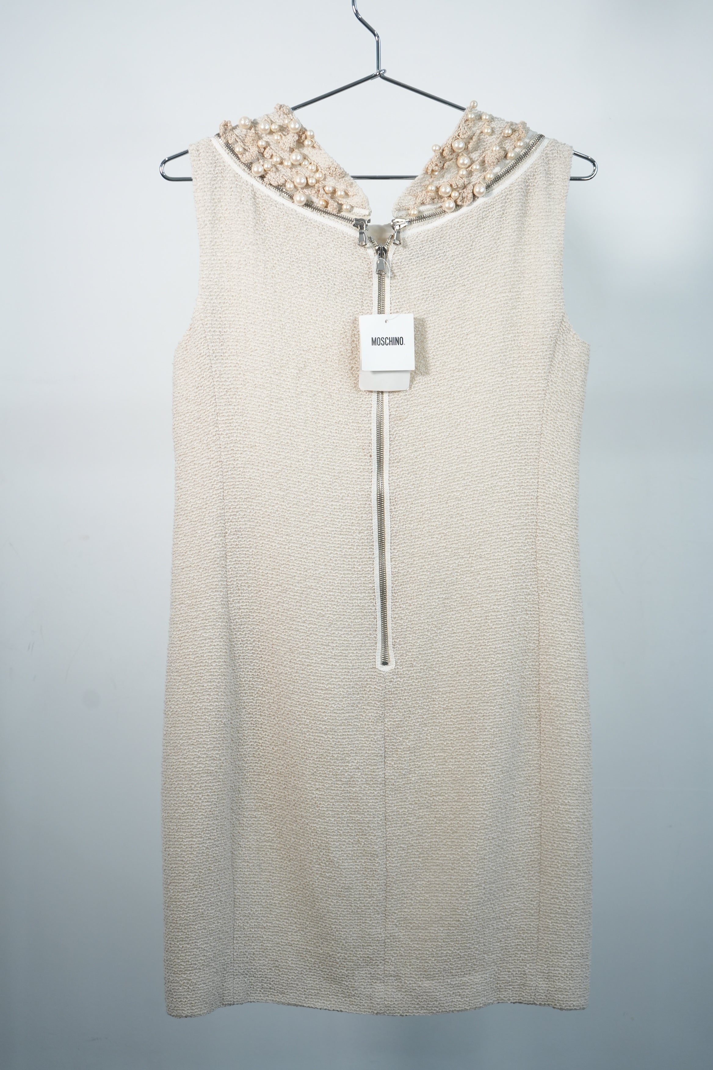 Moschino Pearl Collar Sleeveless Dress Beige New with Tags