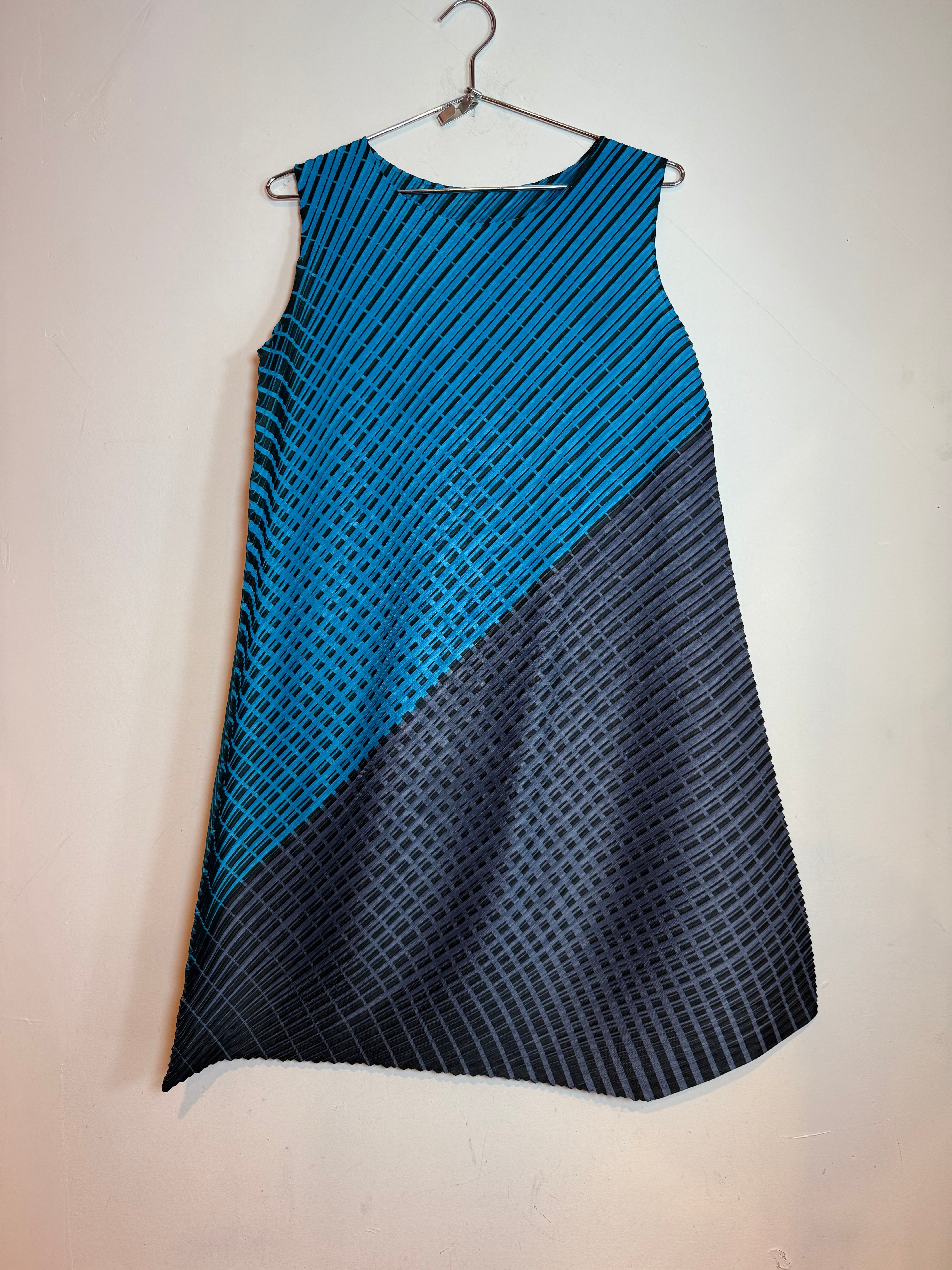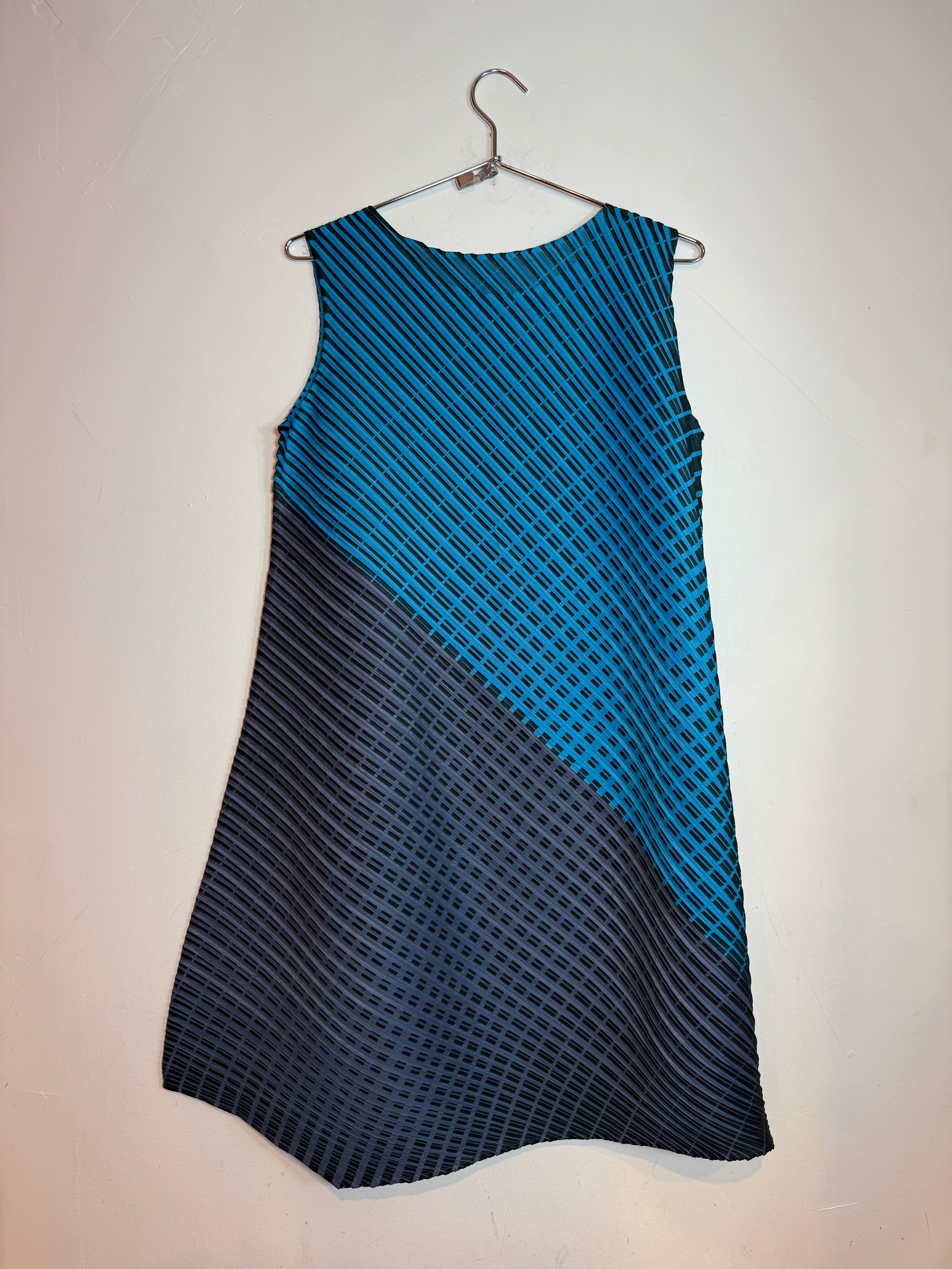 Pleats Please Issey Miyake Diagonal Colorblock Pleated Sleeveless Dress Size 3