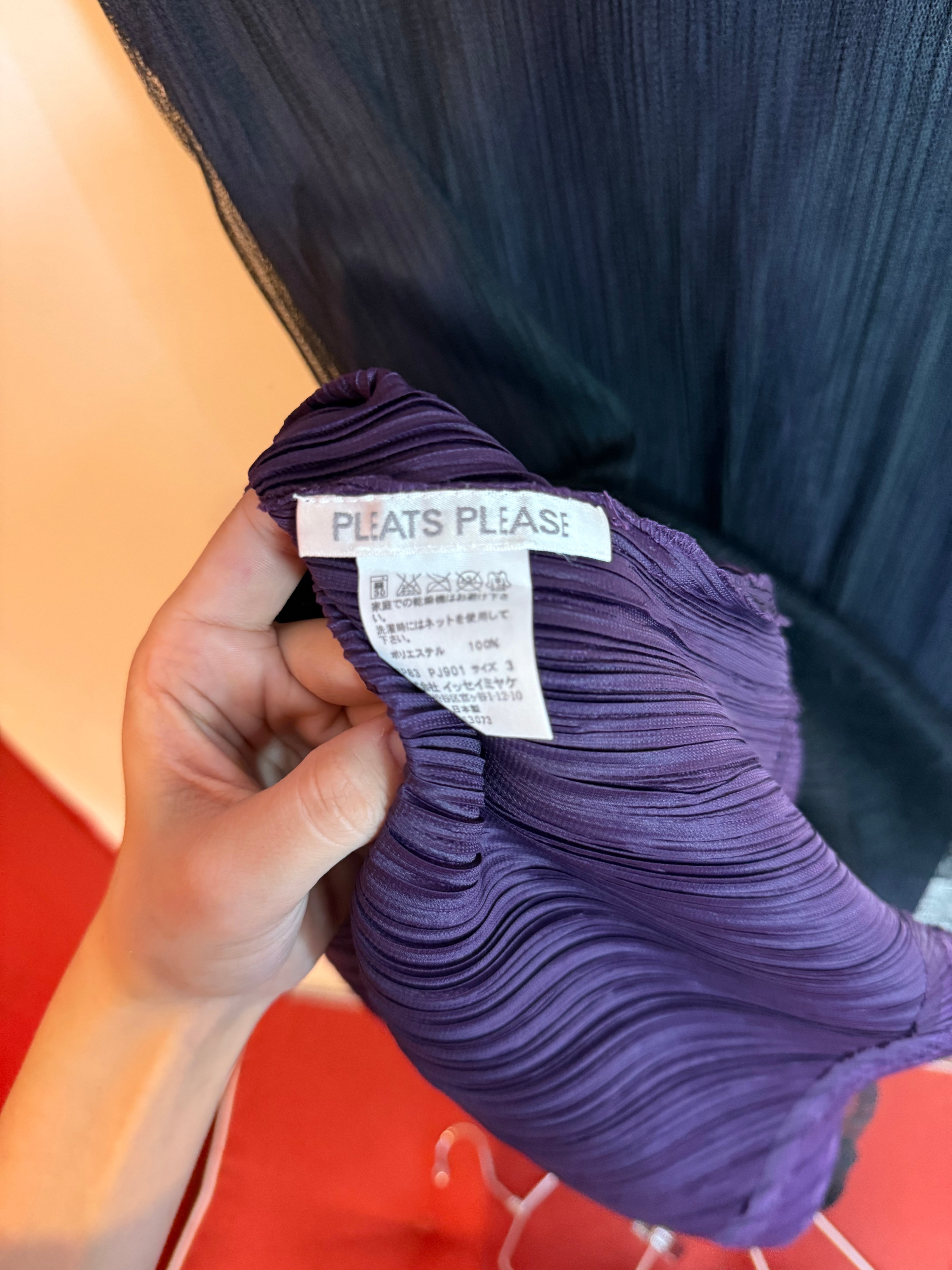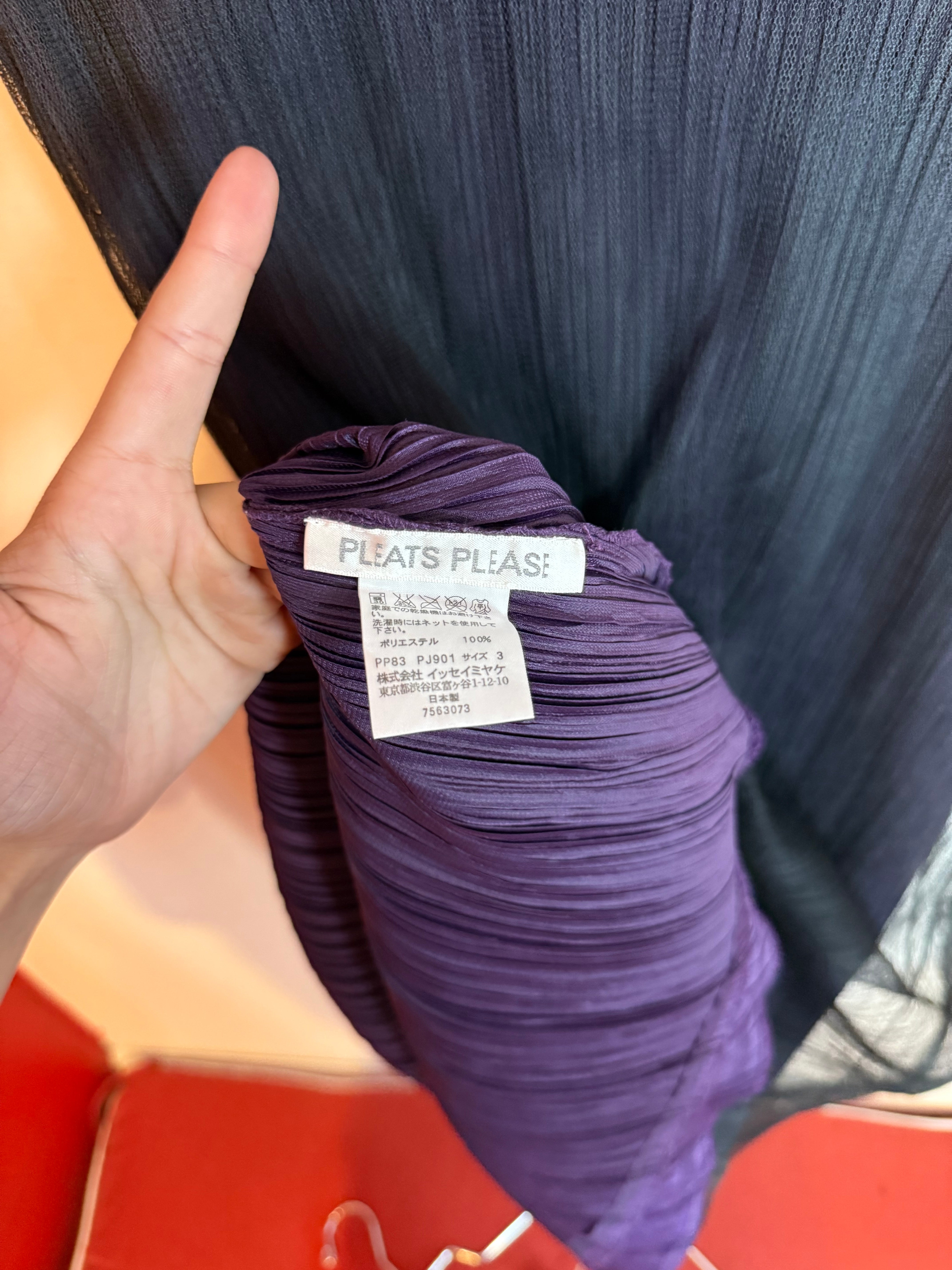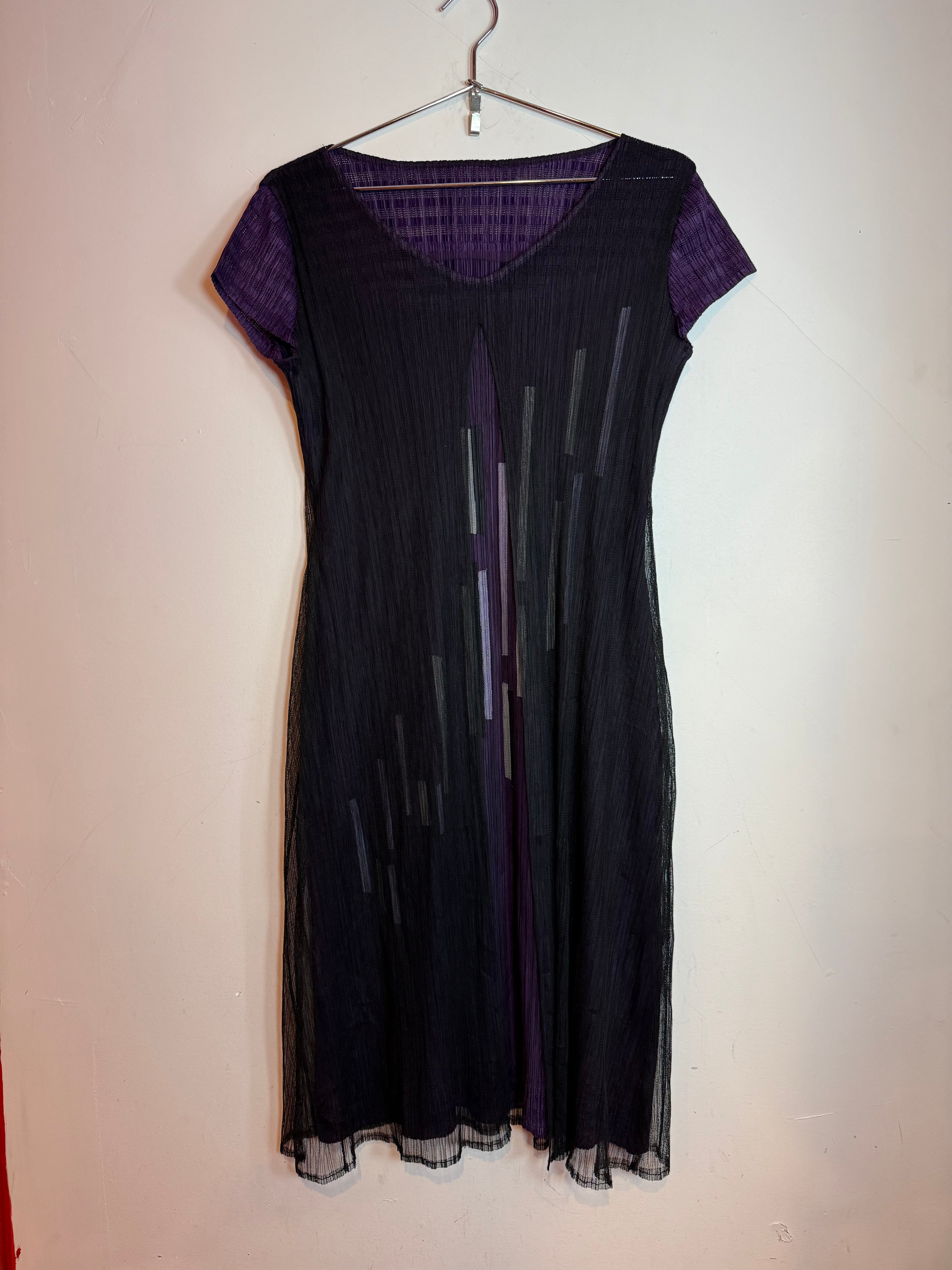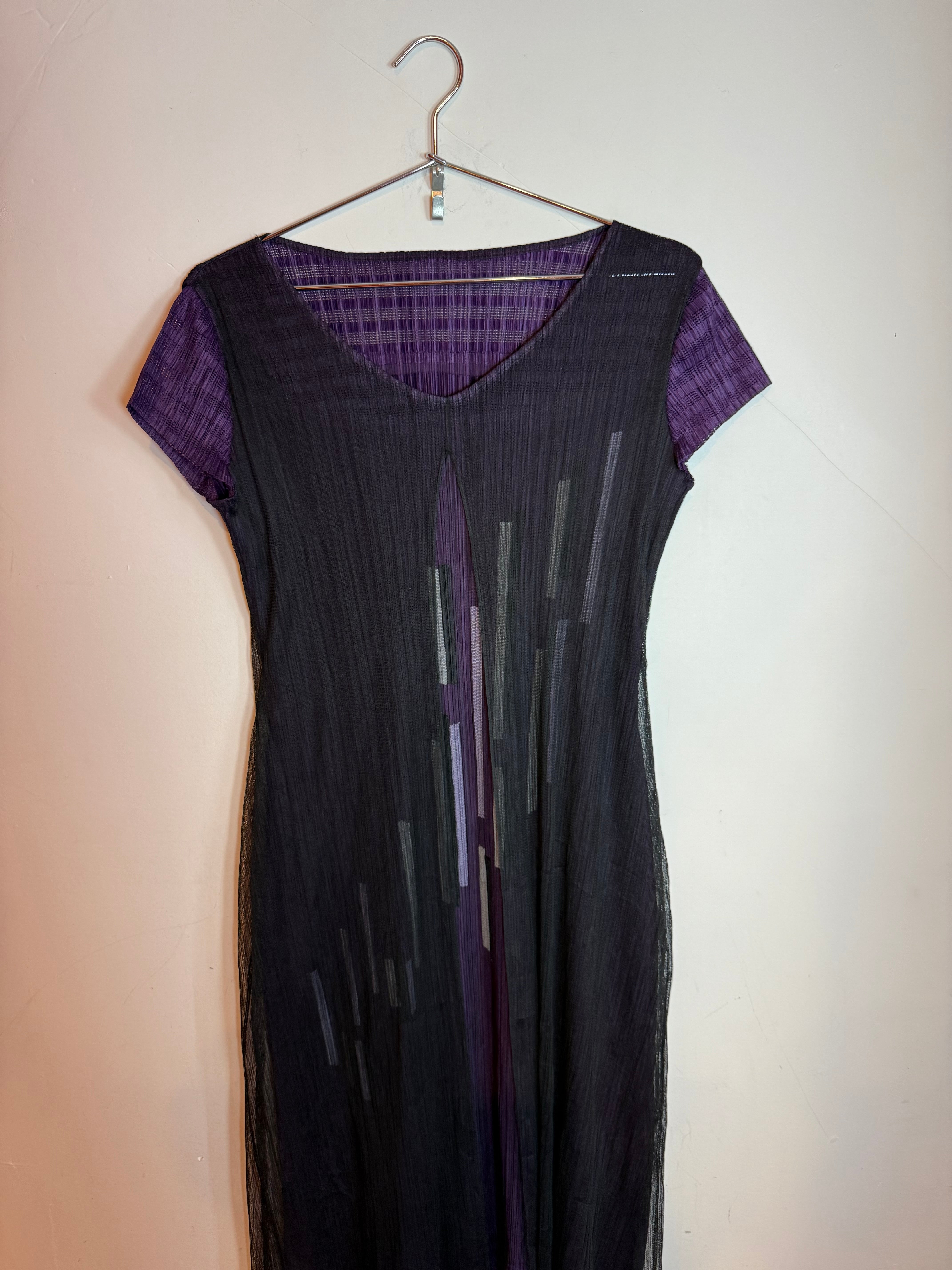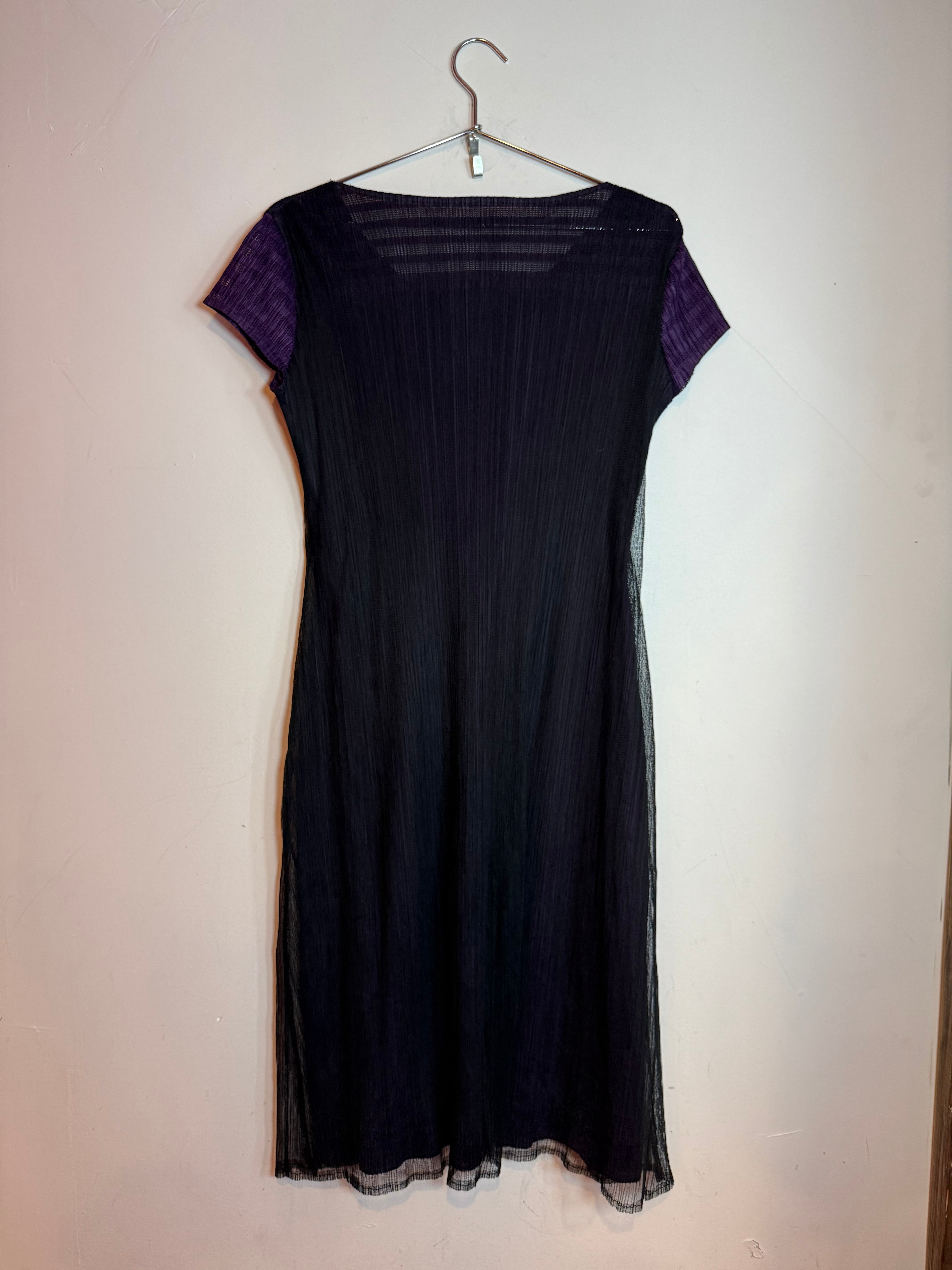 Pleats Please Issey Miyake Layered Pleated Black & Purple Sheer Tunic Dress Size 3