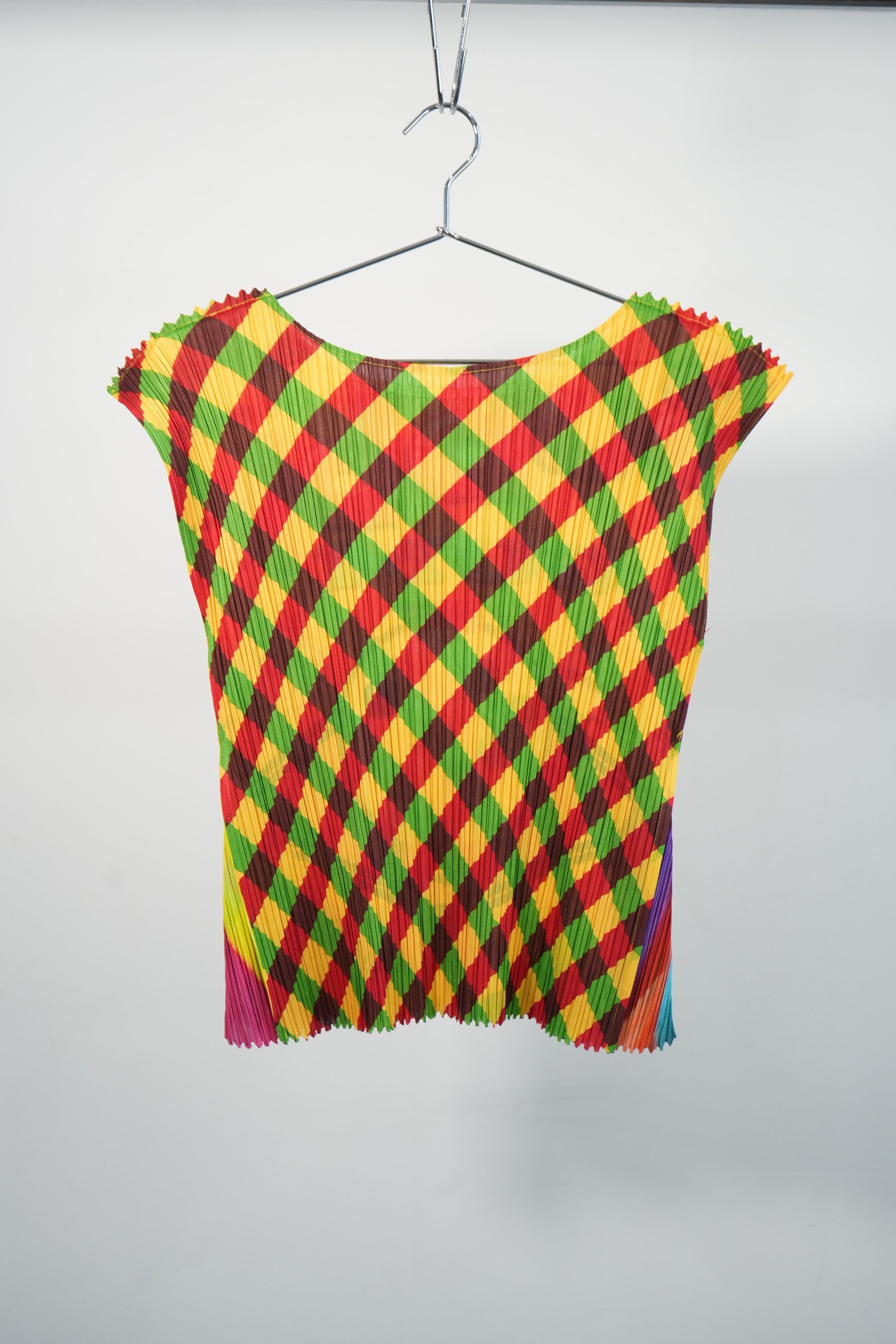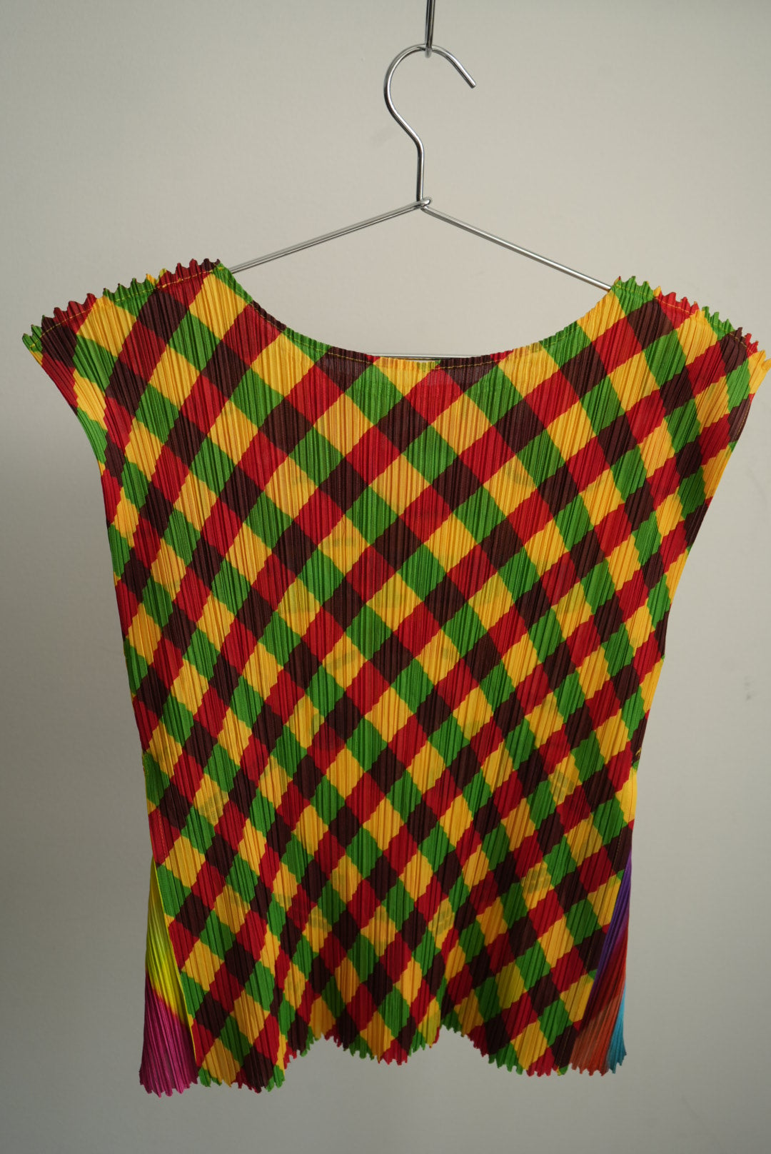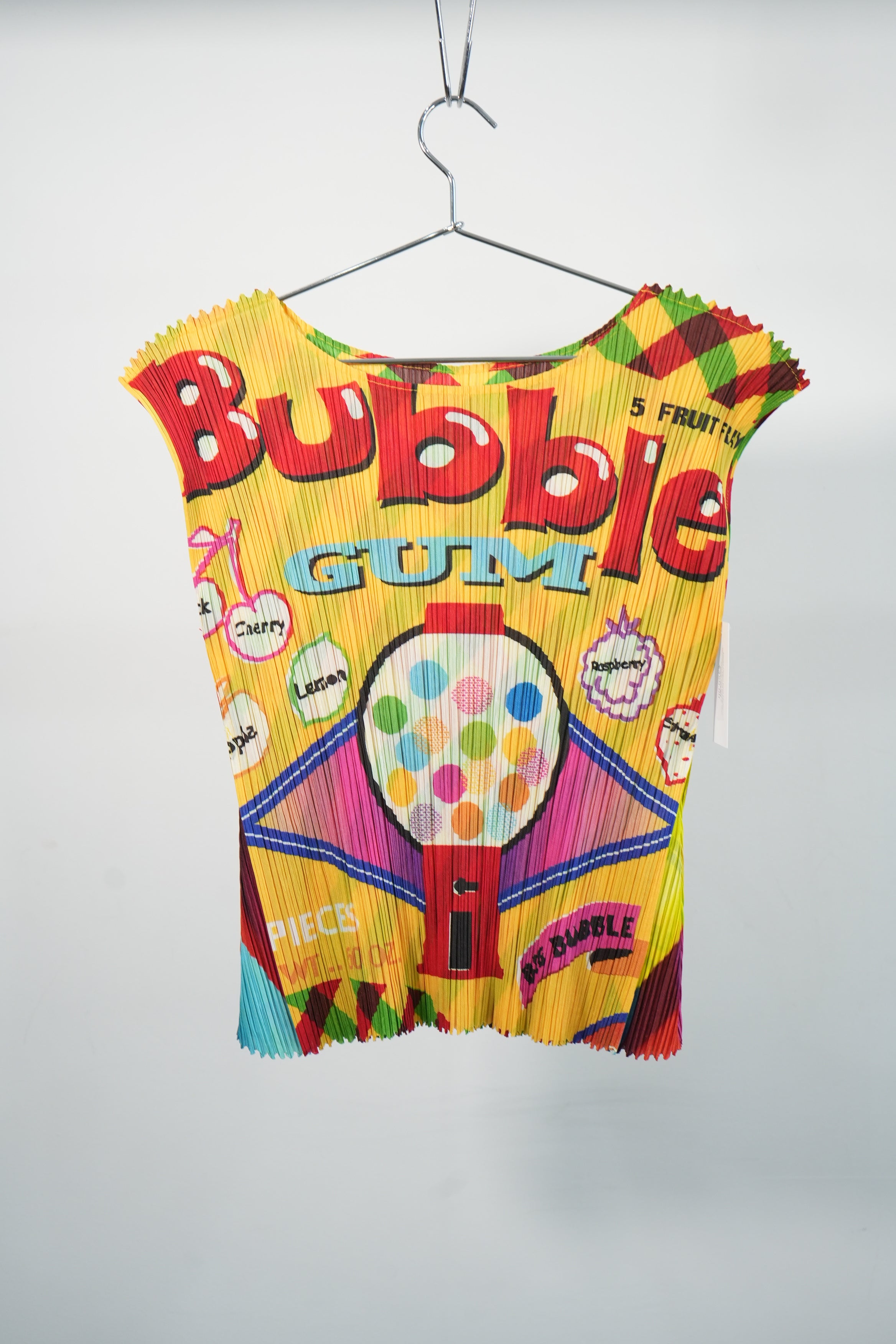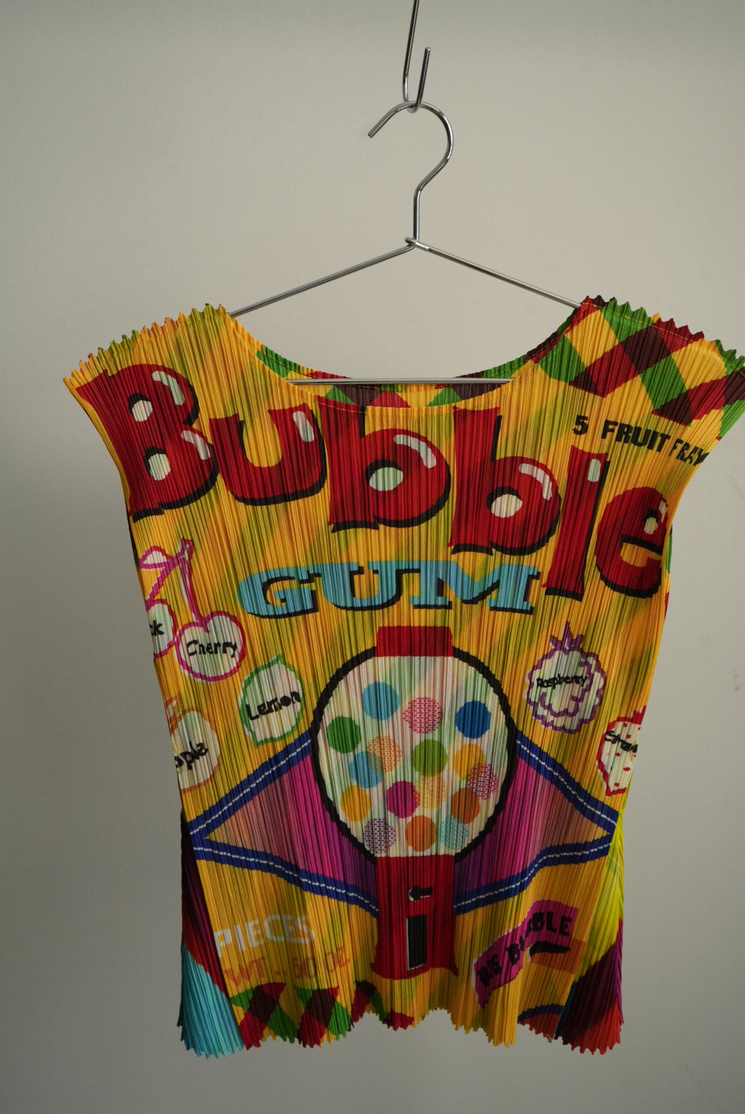 Pleats Please Issey Miyake Sleeveless Pleated Bubble Gum Graphic Top Size 3
