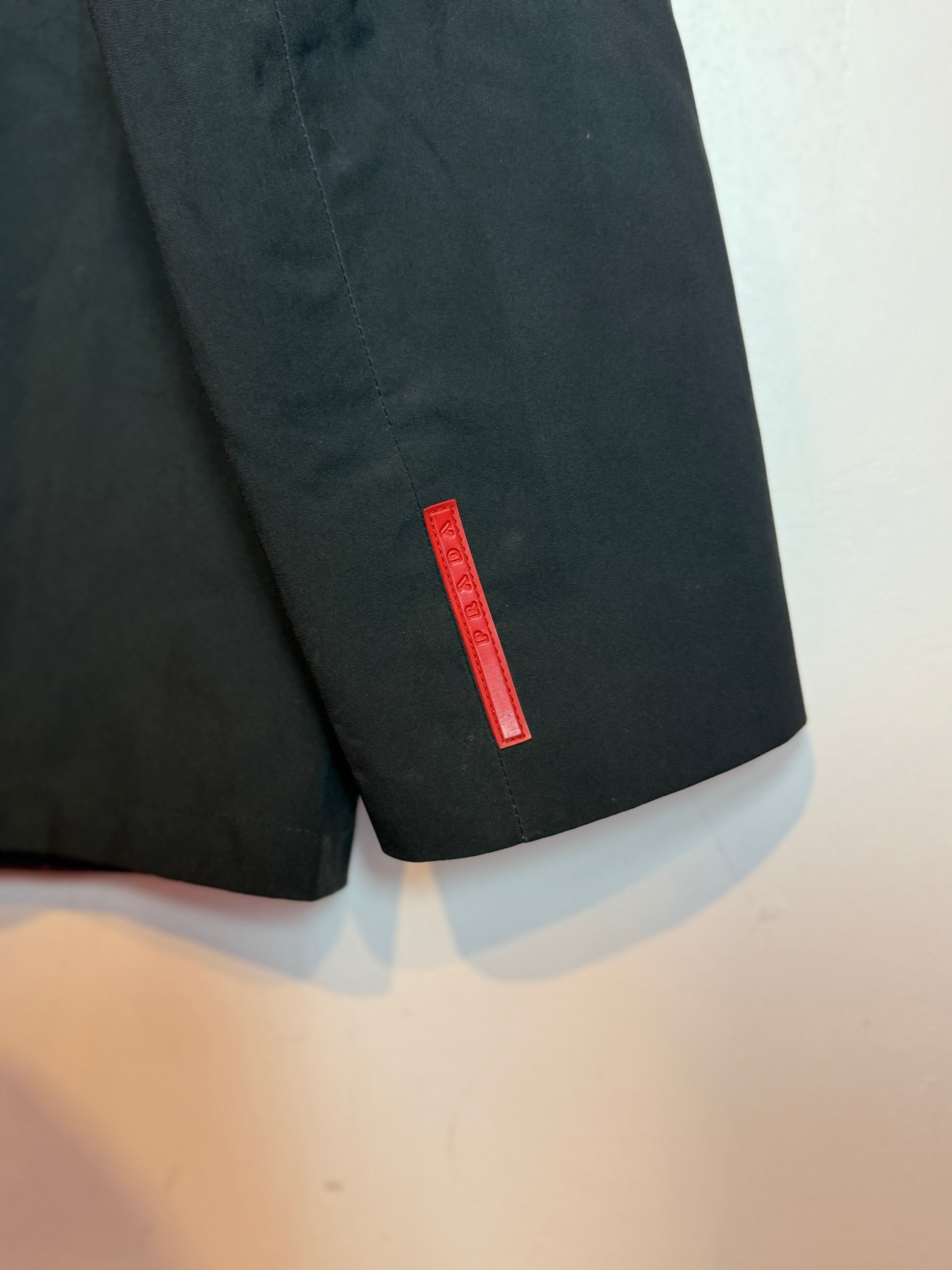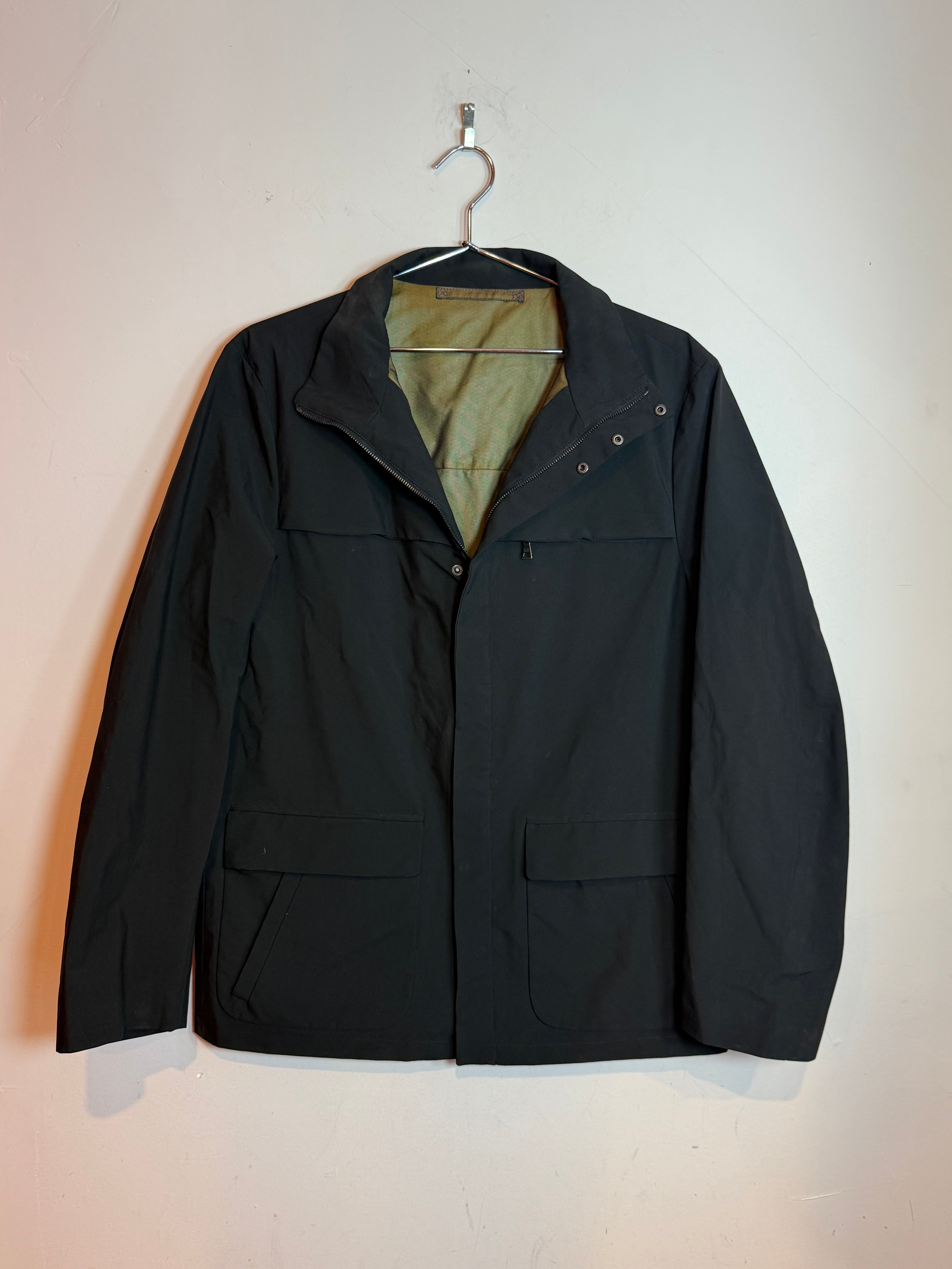 Prada Black Nylon Lightweight Jacket Khaki Lining and Flap Pockets