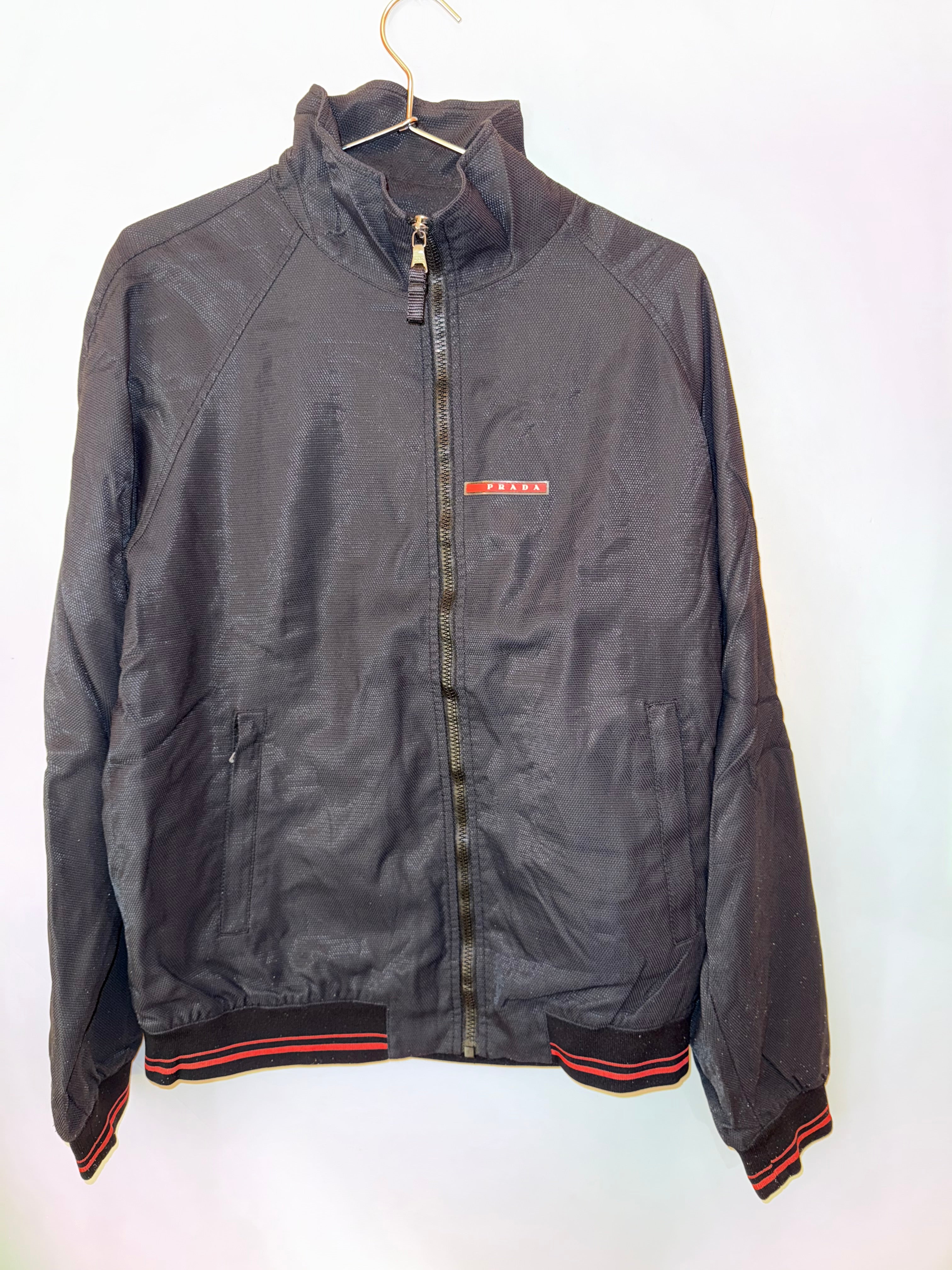 Prada dark blue with red stripes Nylon Jacket