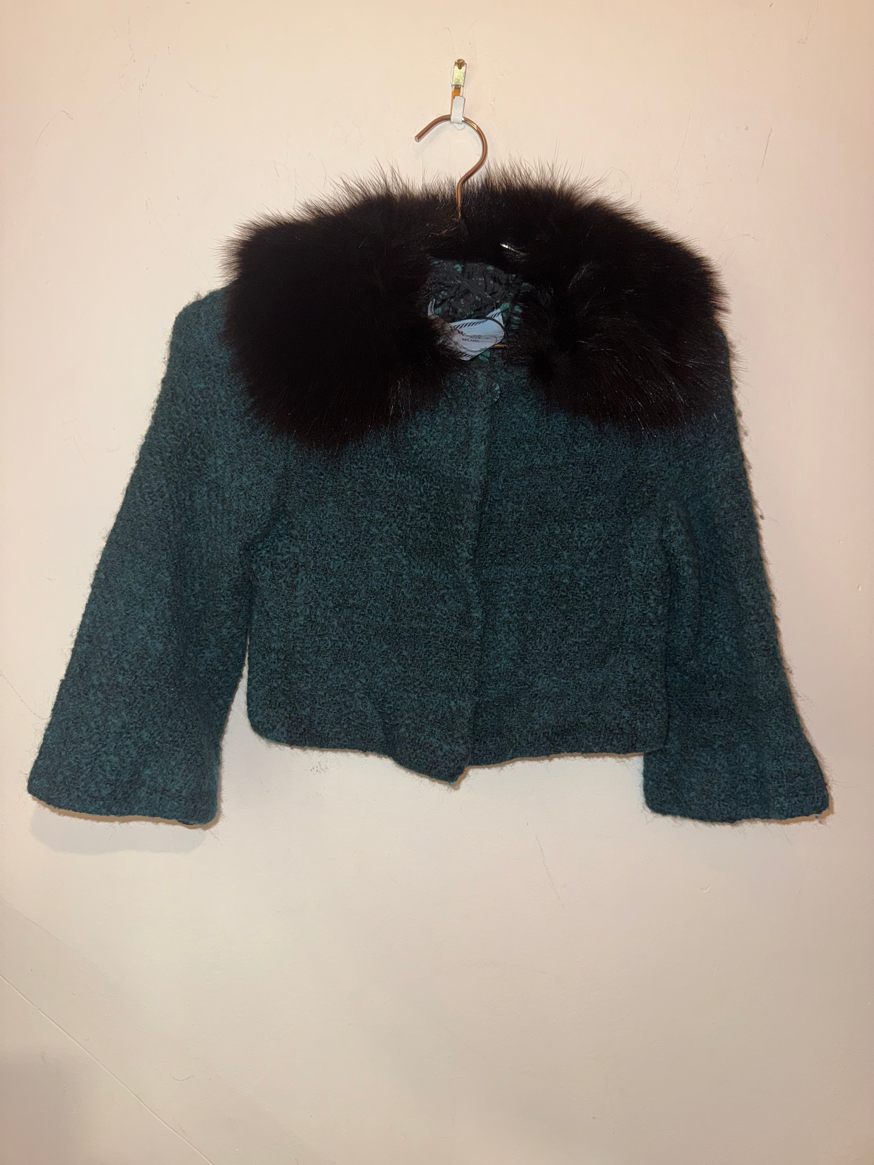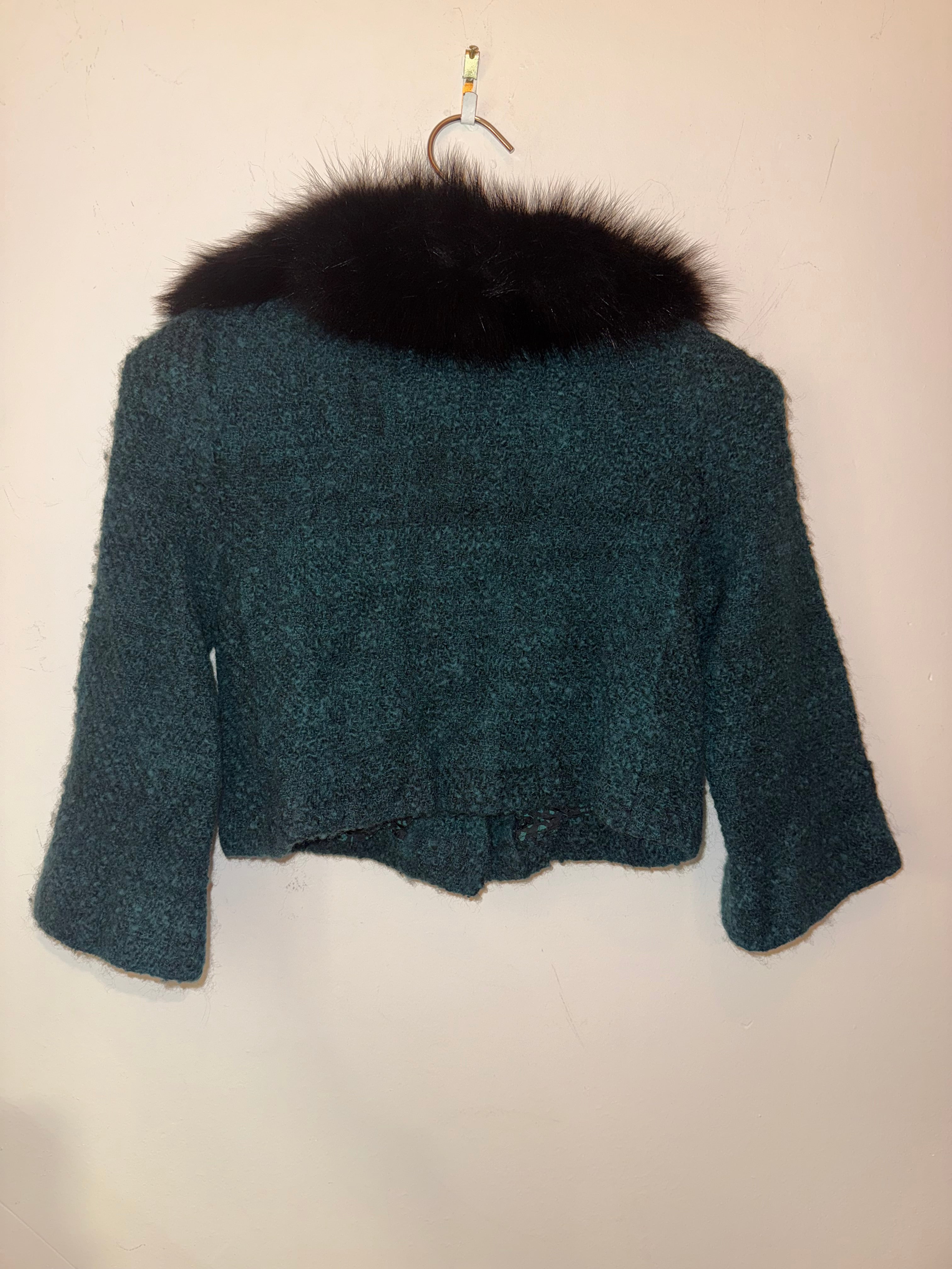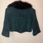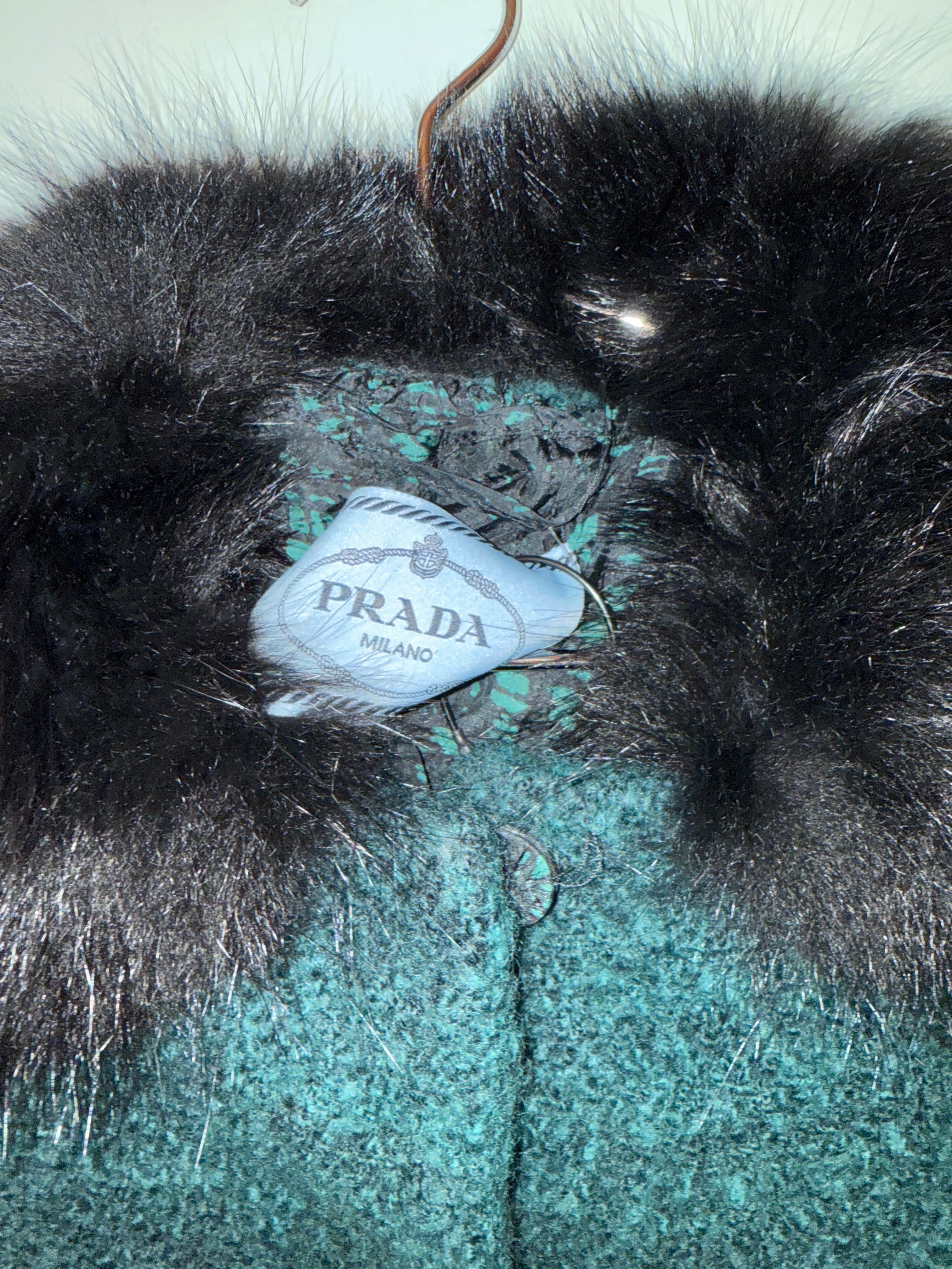 Prada Emerald Black Fur Tweed Mini Jacket