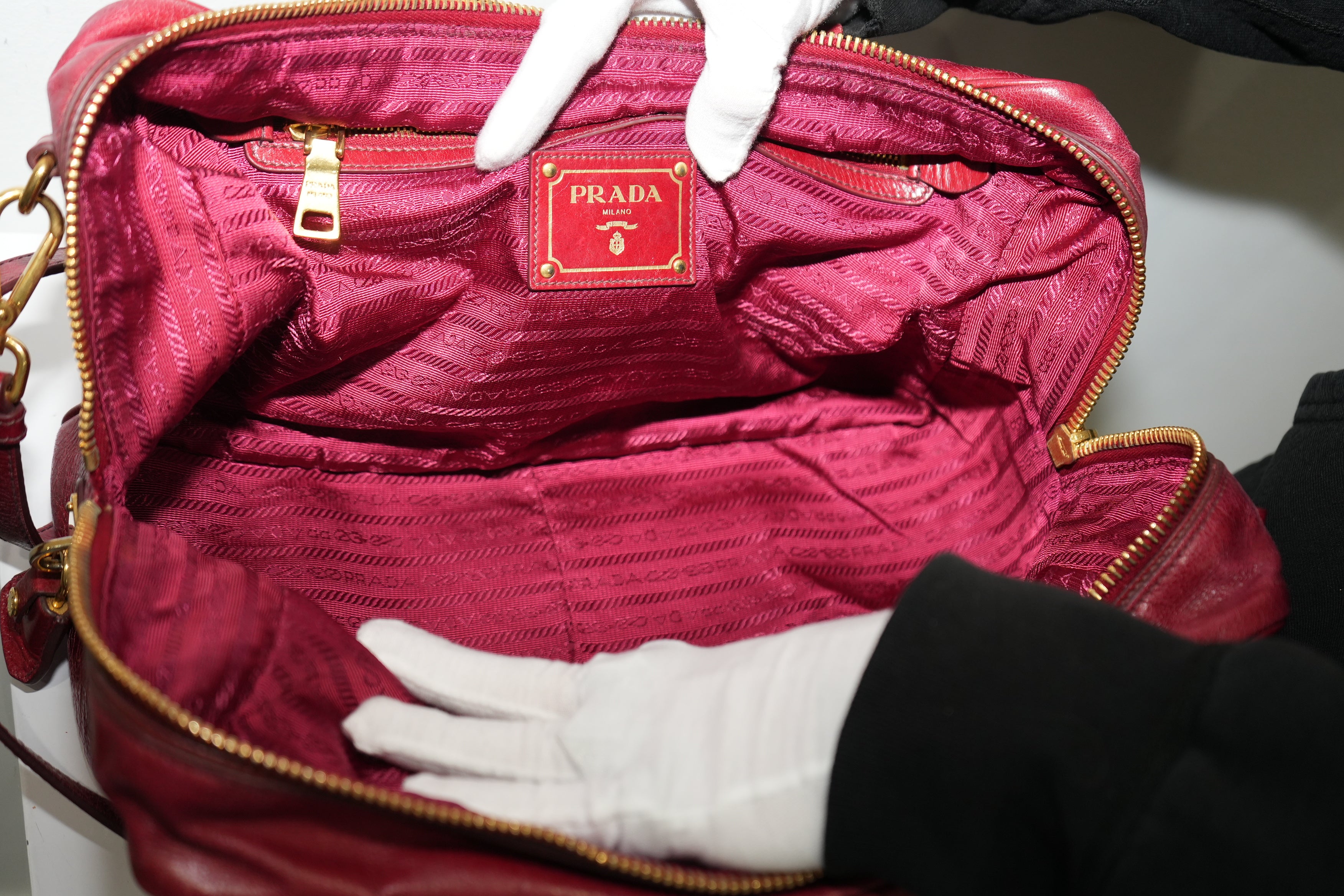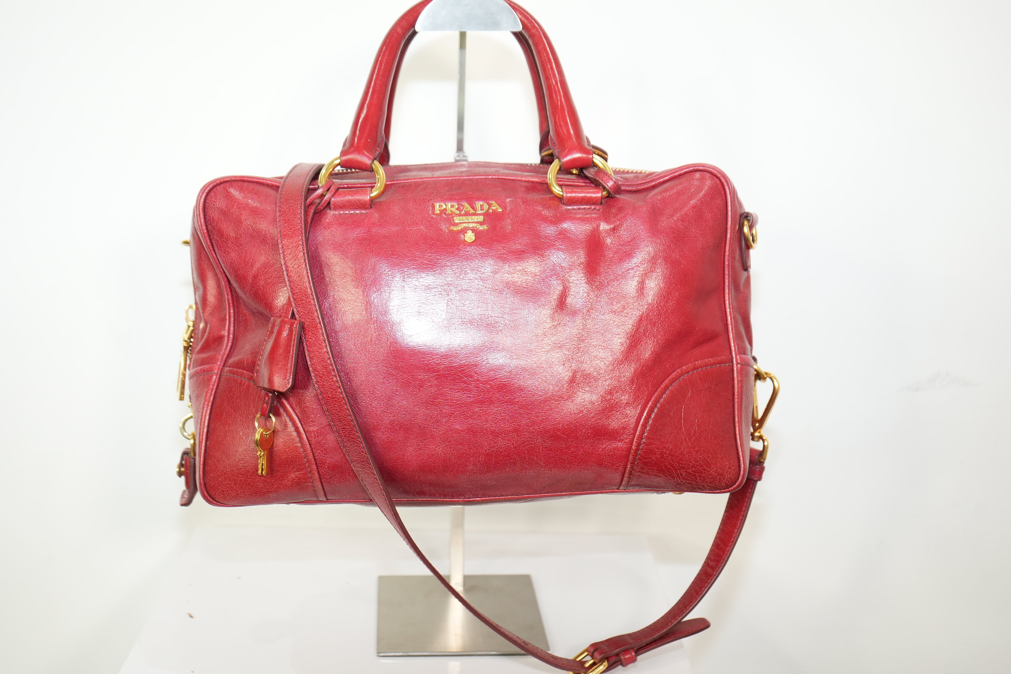 Prada Leather Calfskin Bauletto Handbag Shoulder Bag