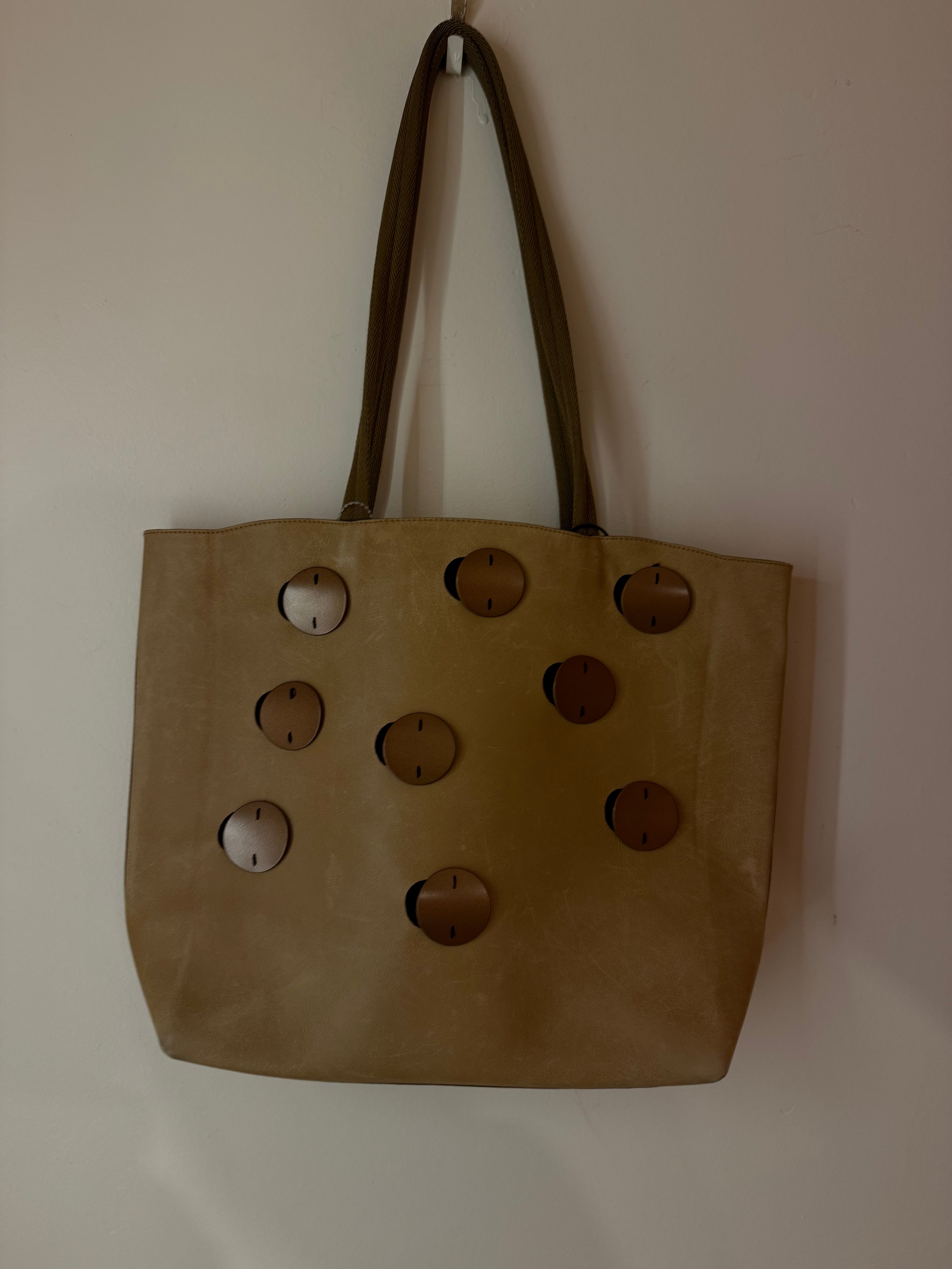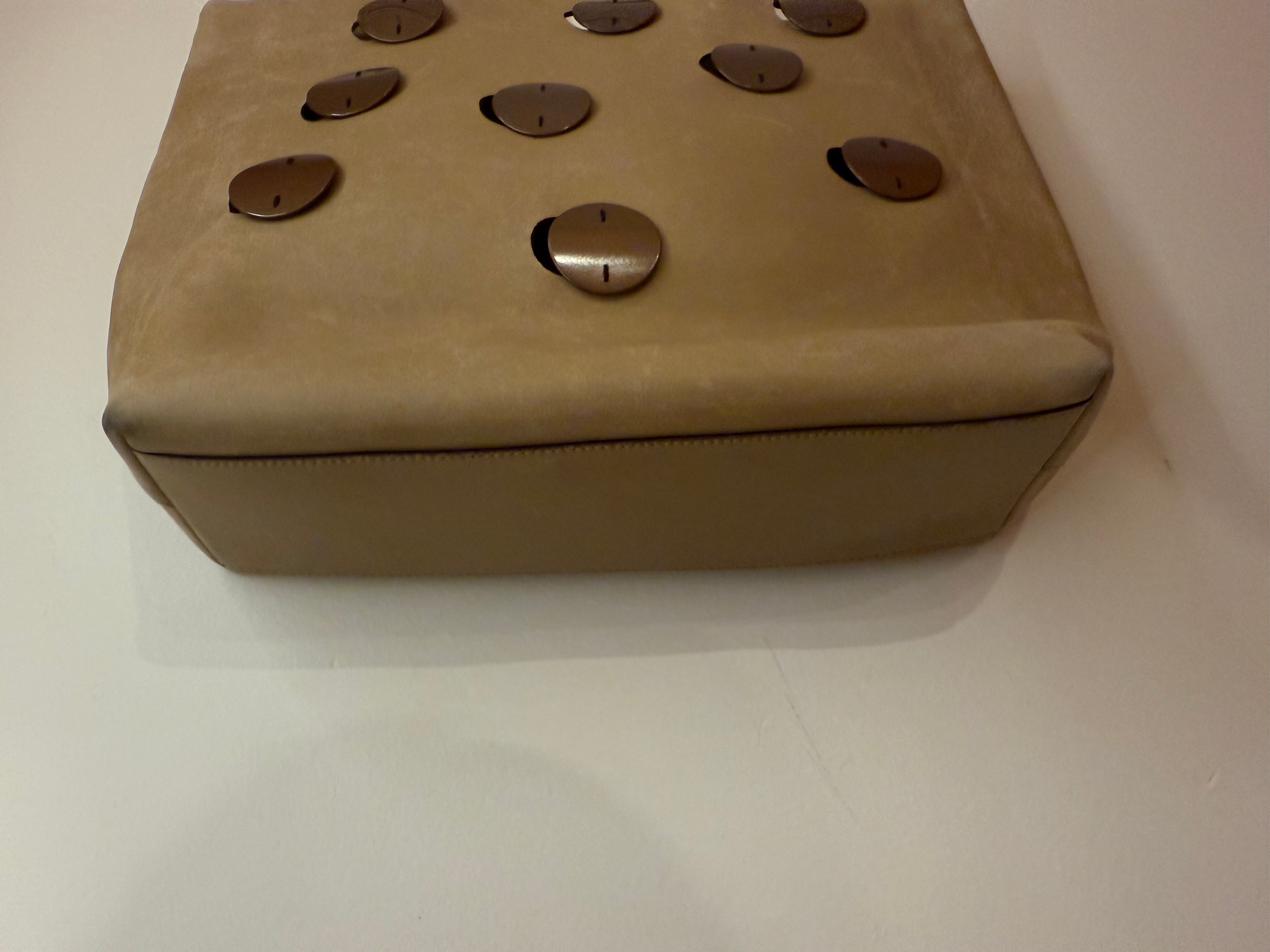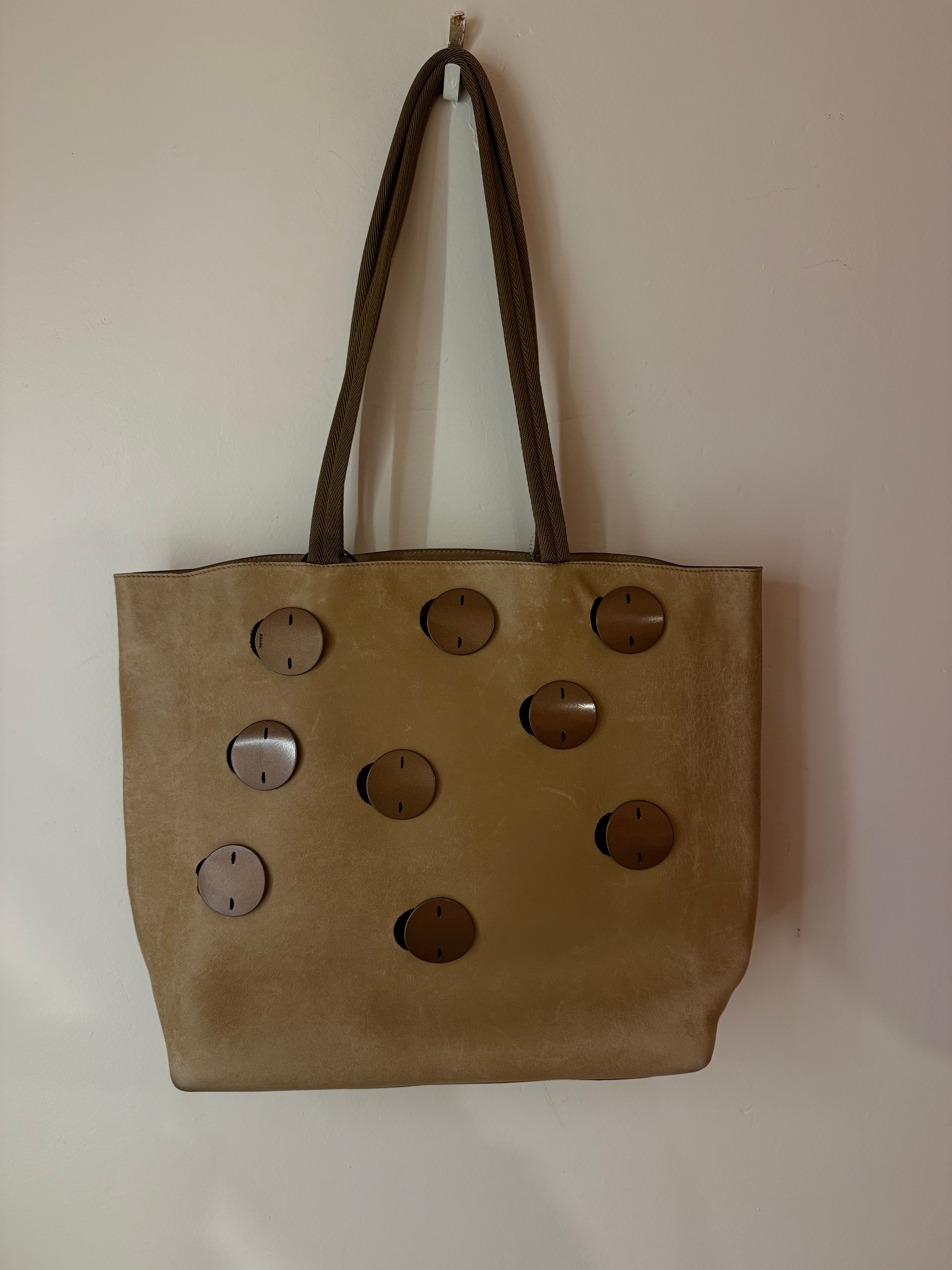 Prada Tan Tote Bag W/ Circular Metal Accessories