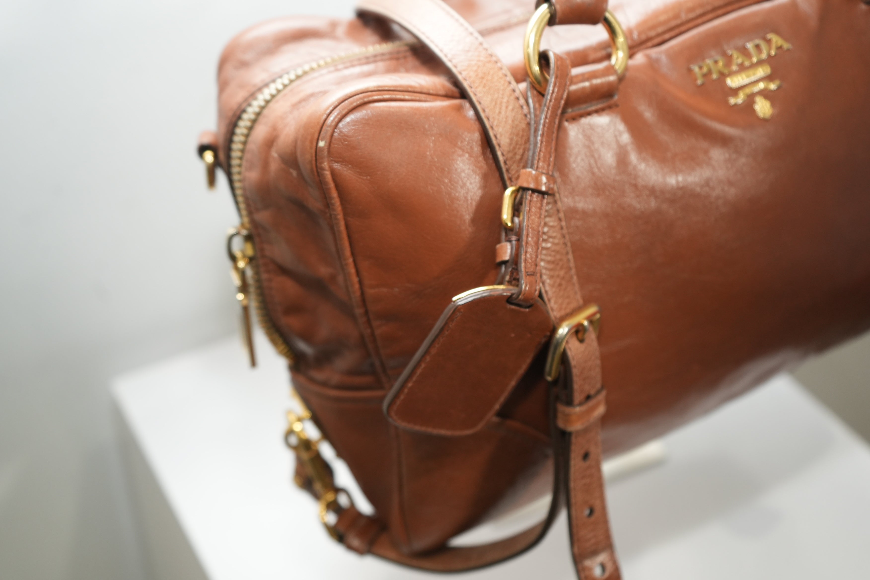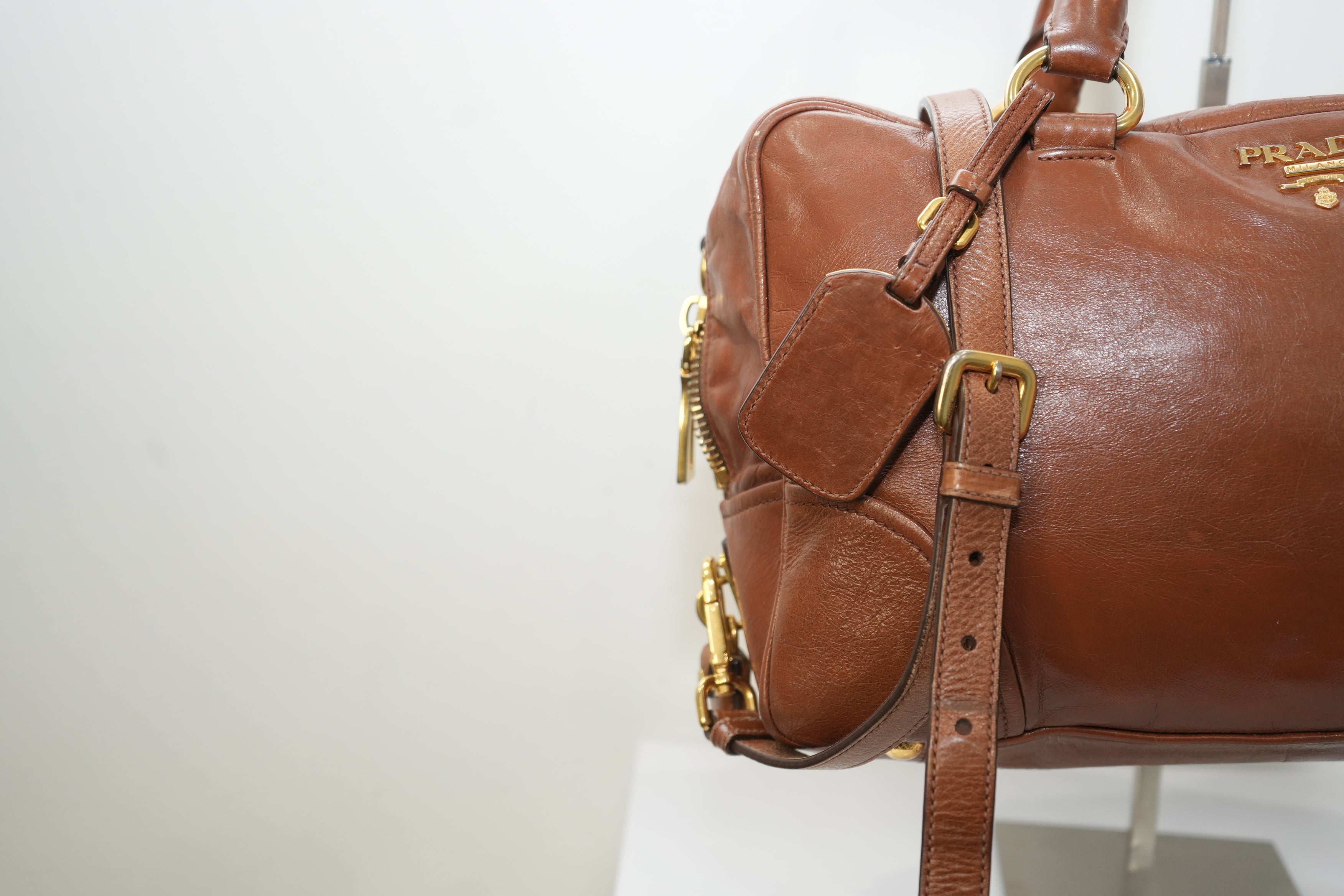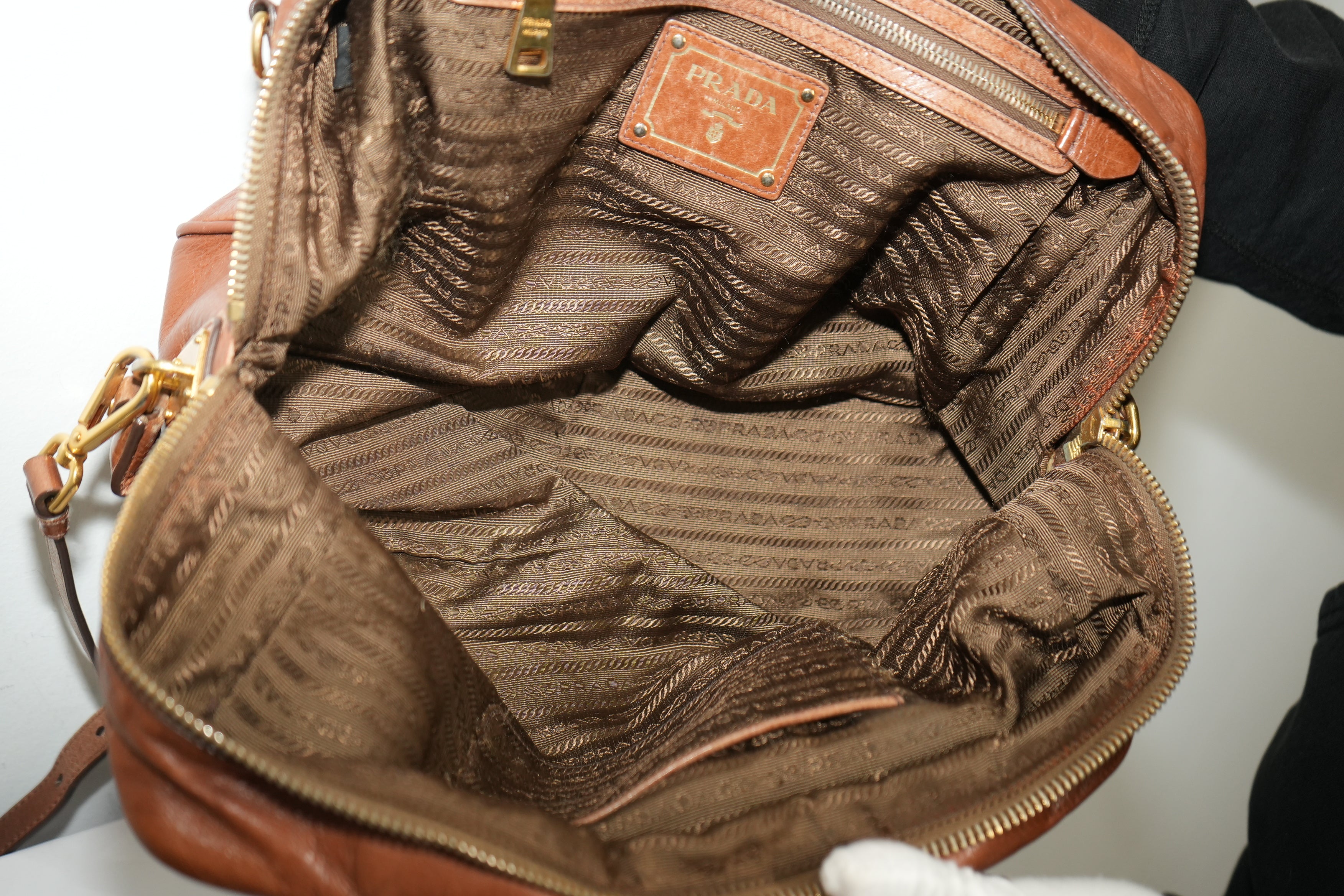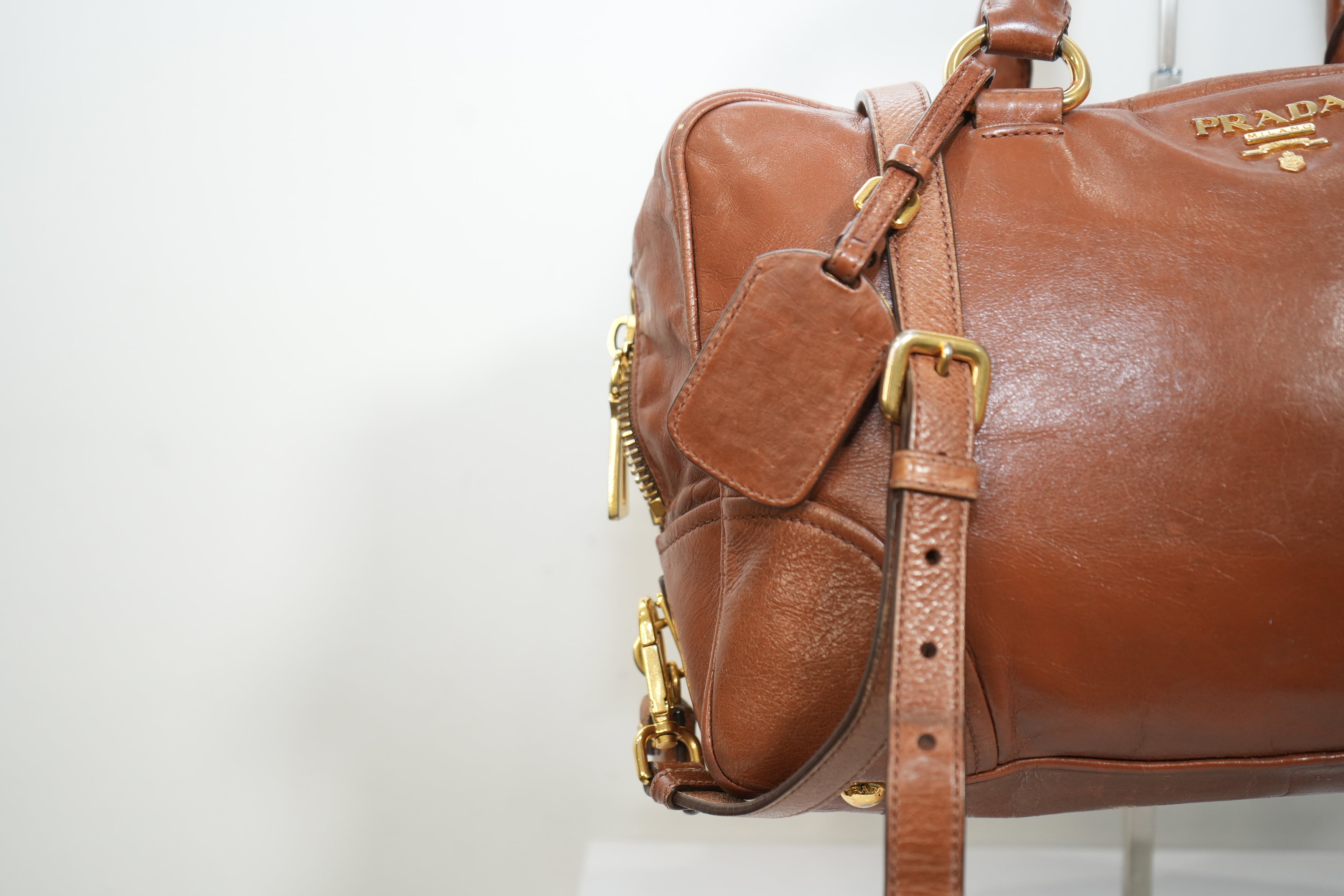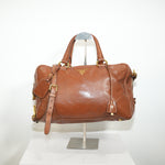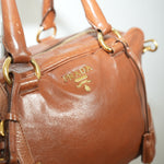 Prada Vitello Shine 2 Way Bag Brown Leather
