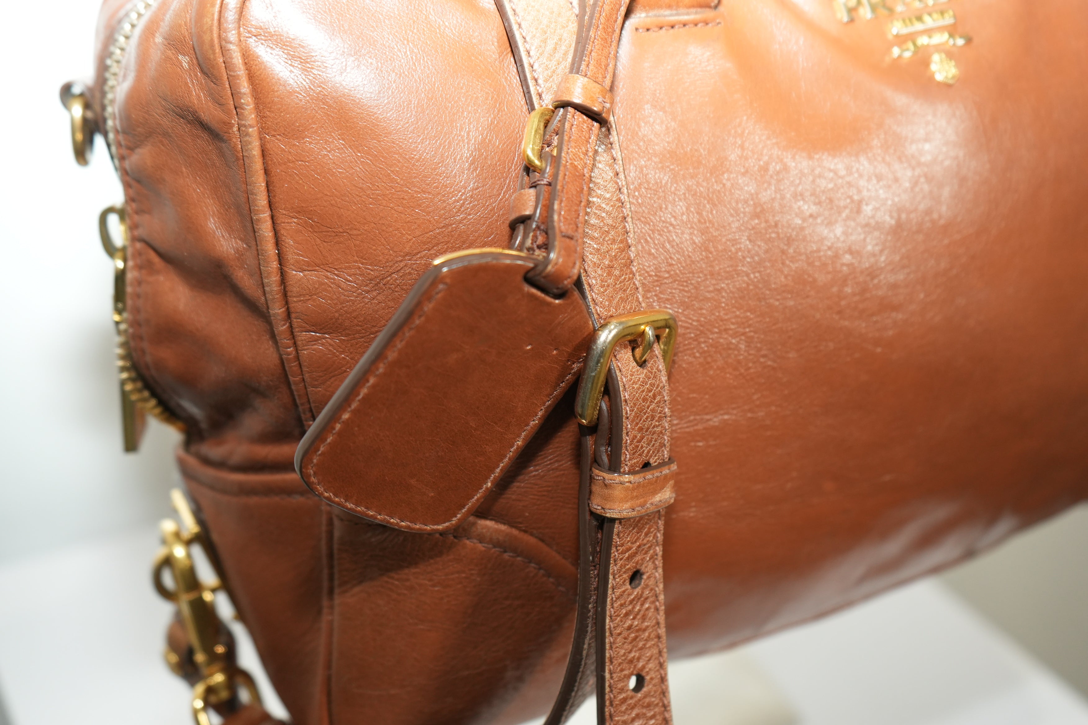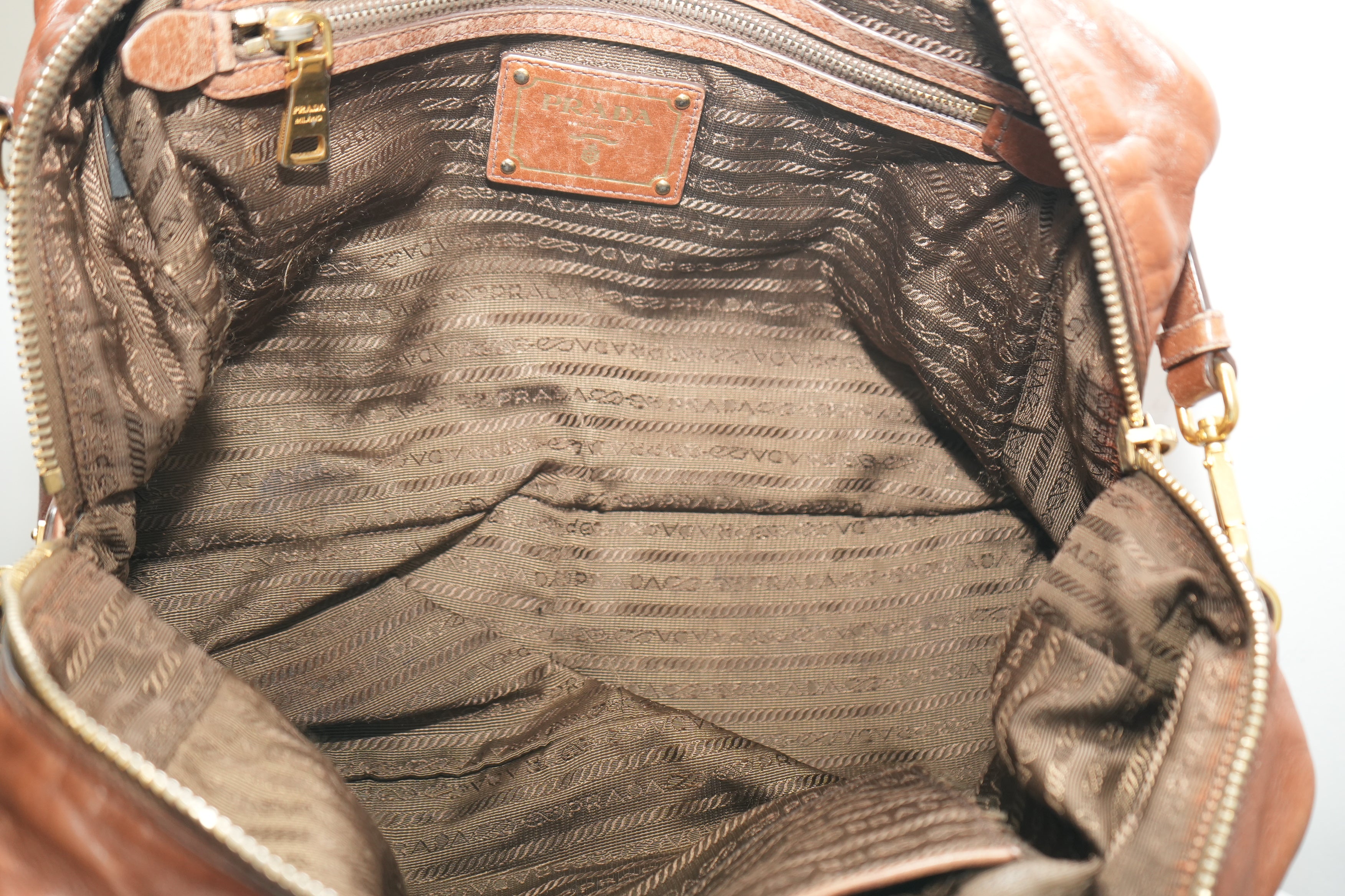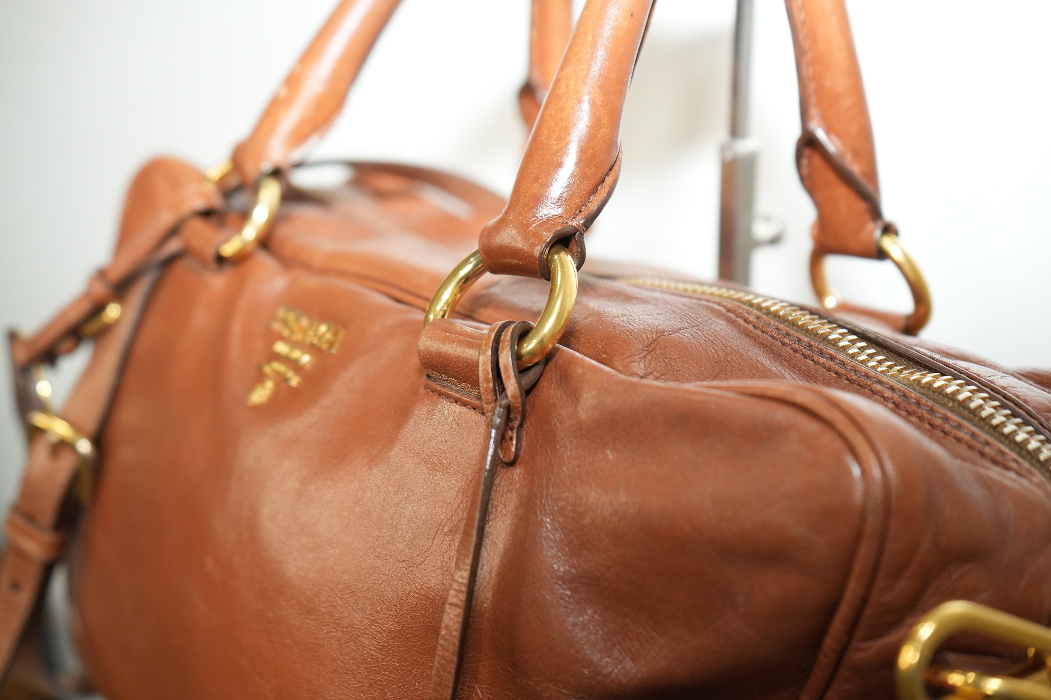 Prada Vitello Shine 2 Way Bag Brown Leather