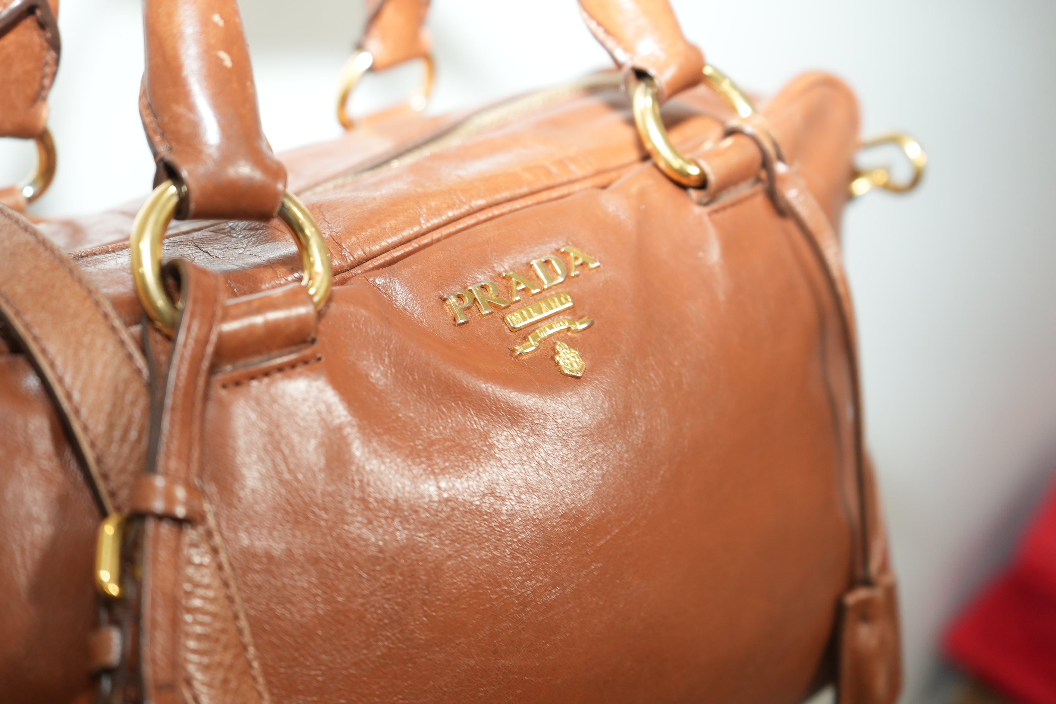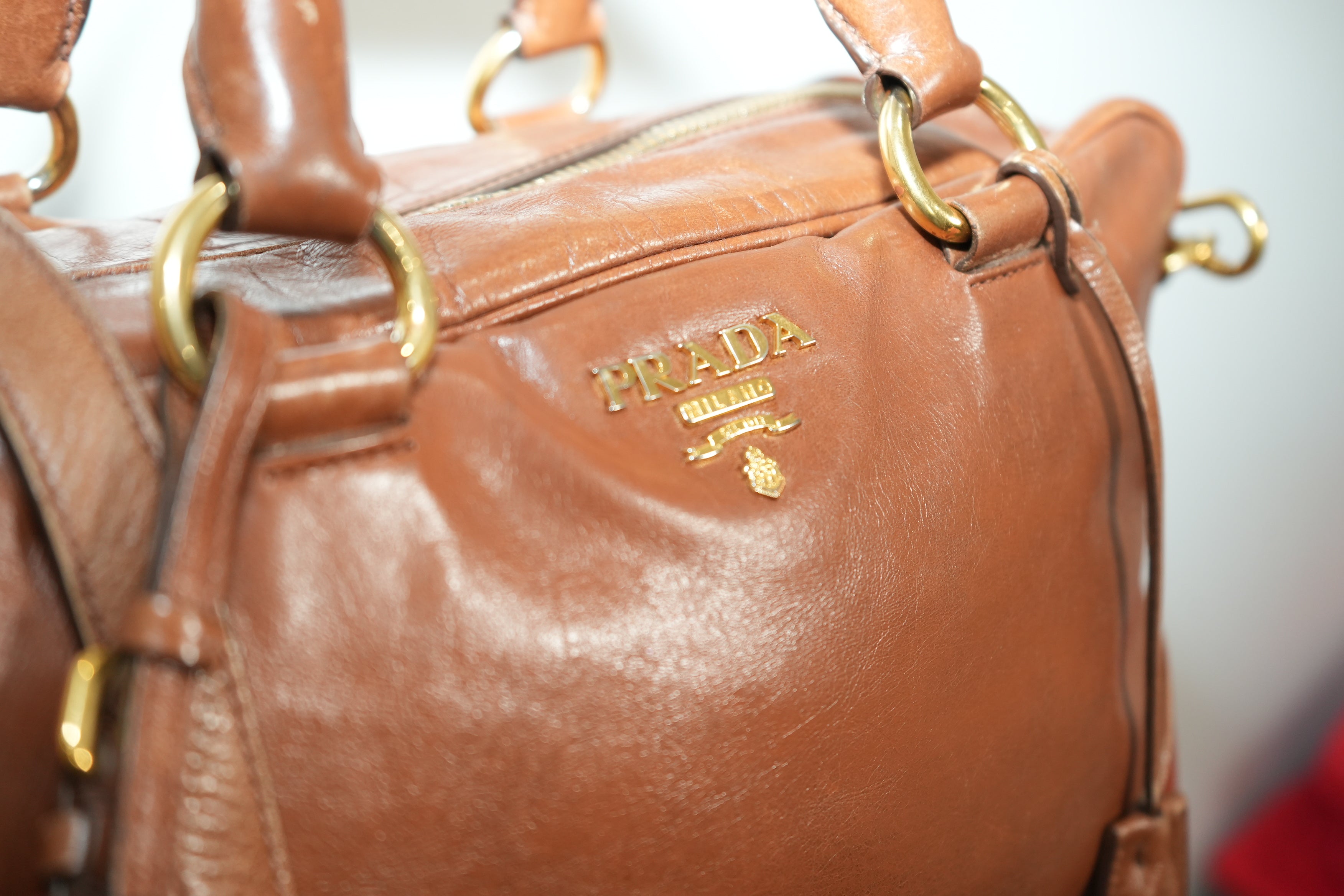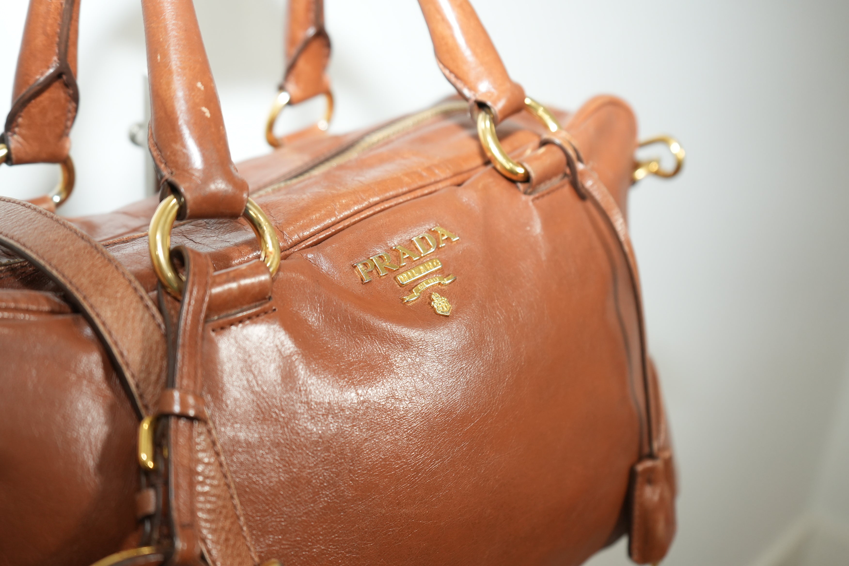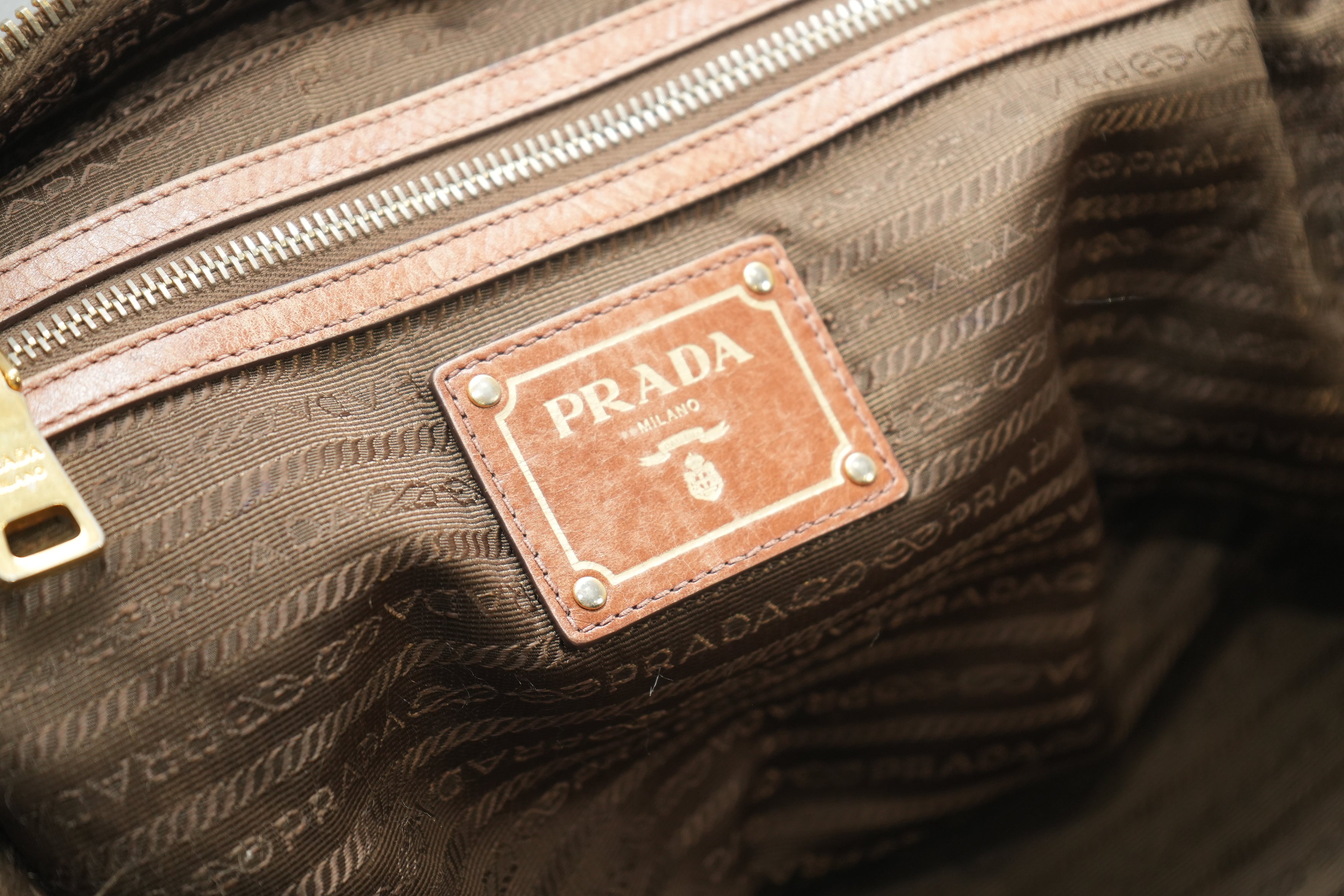 Prada Vitello Shine 2 Way Bag Brown Leather