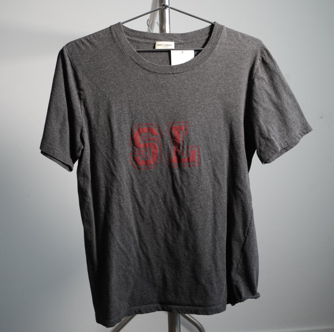 Saint Laurent Paris "SL" Print Tee Shirt Gray