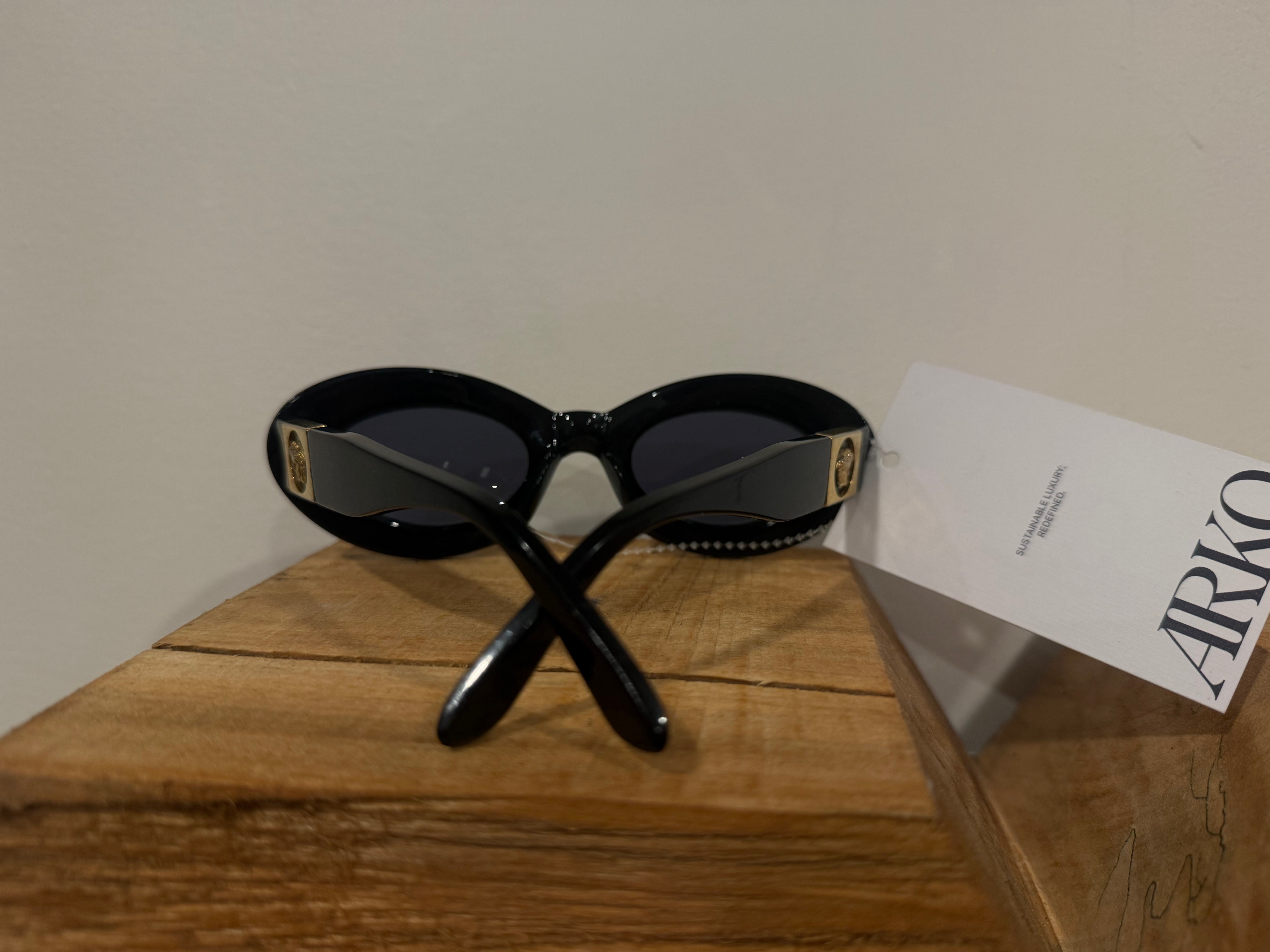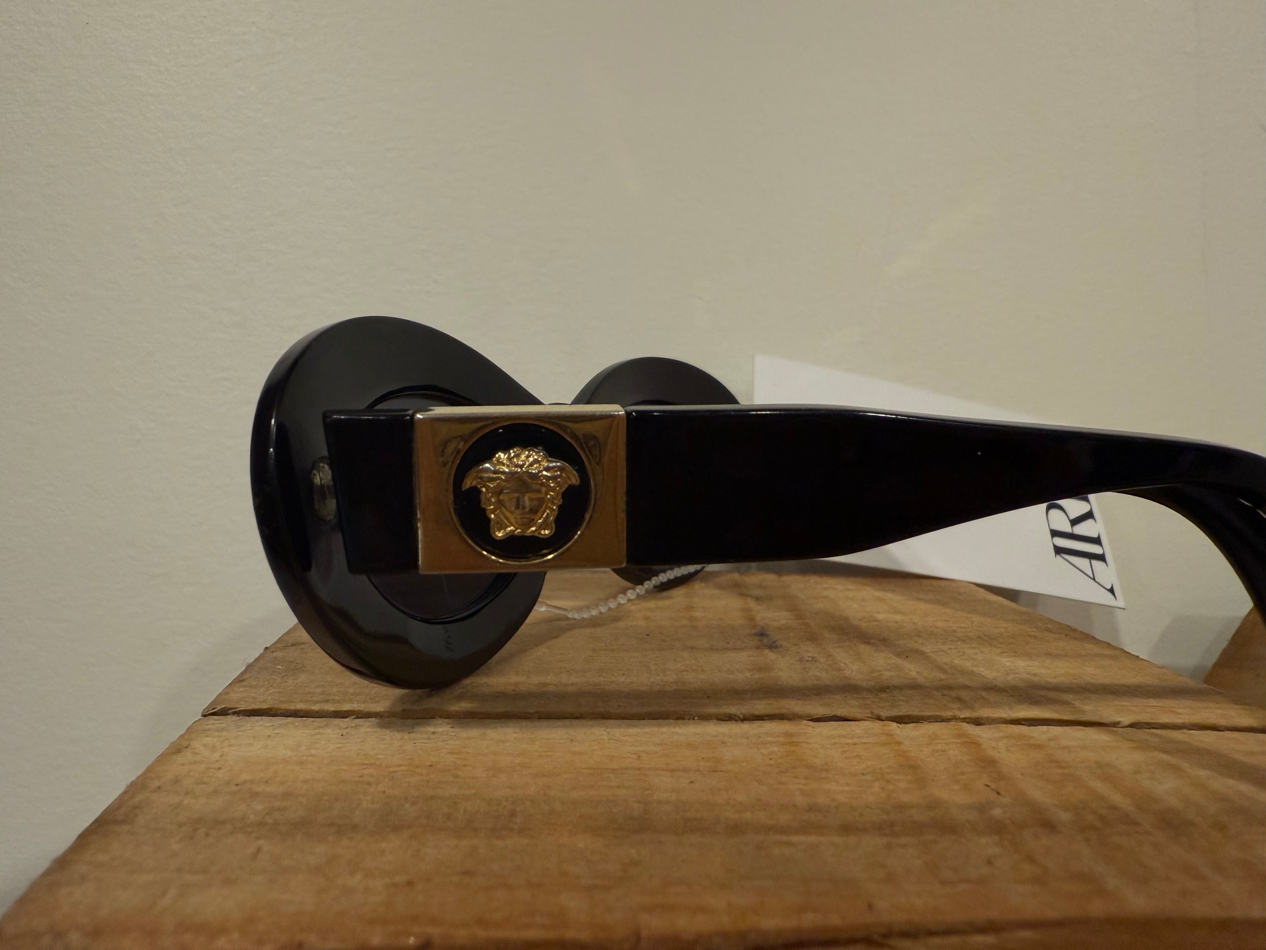 Versace Black Oval Sunglasses W/ Logo