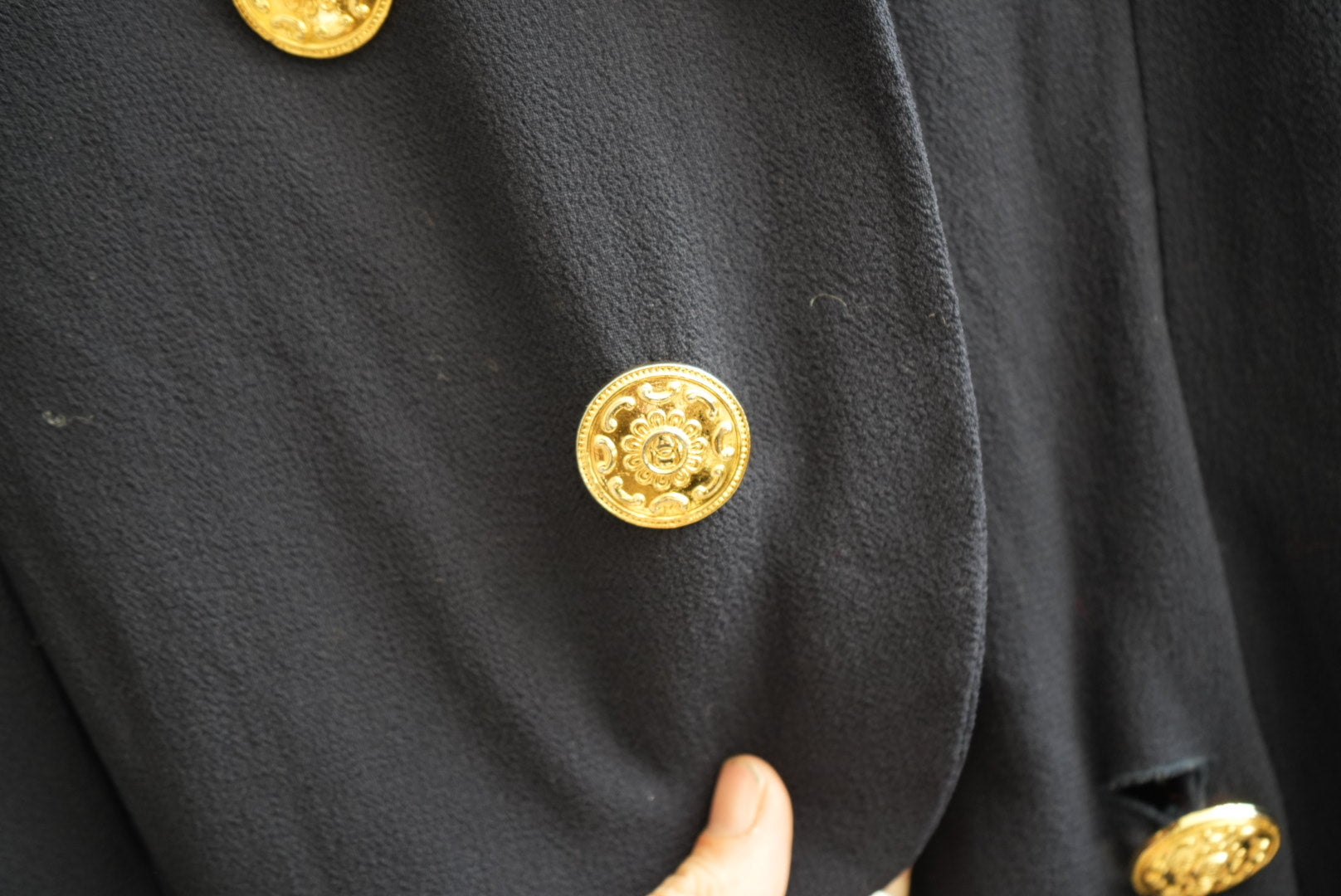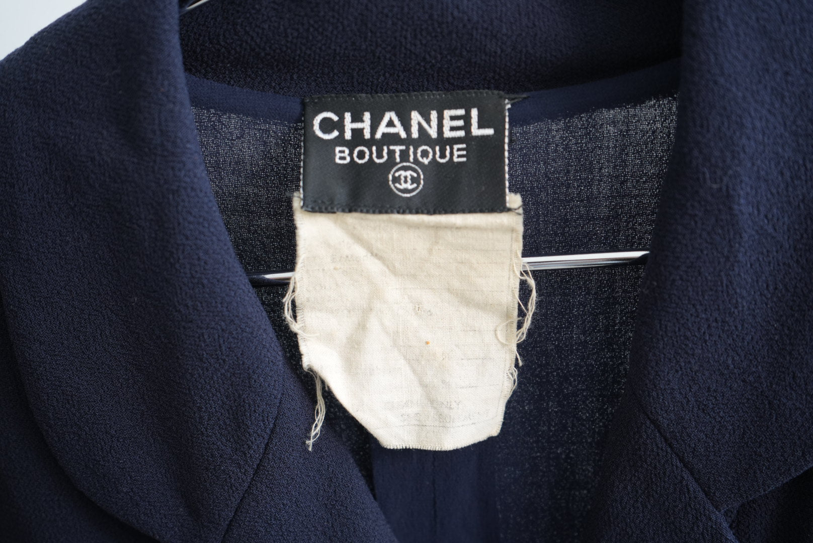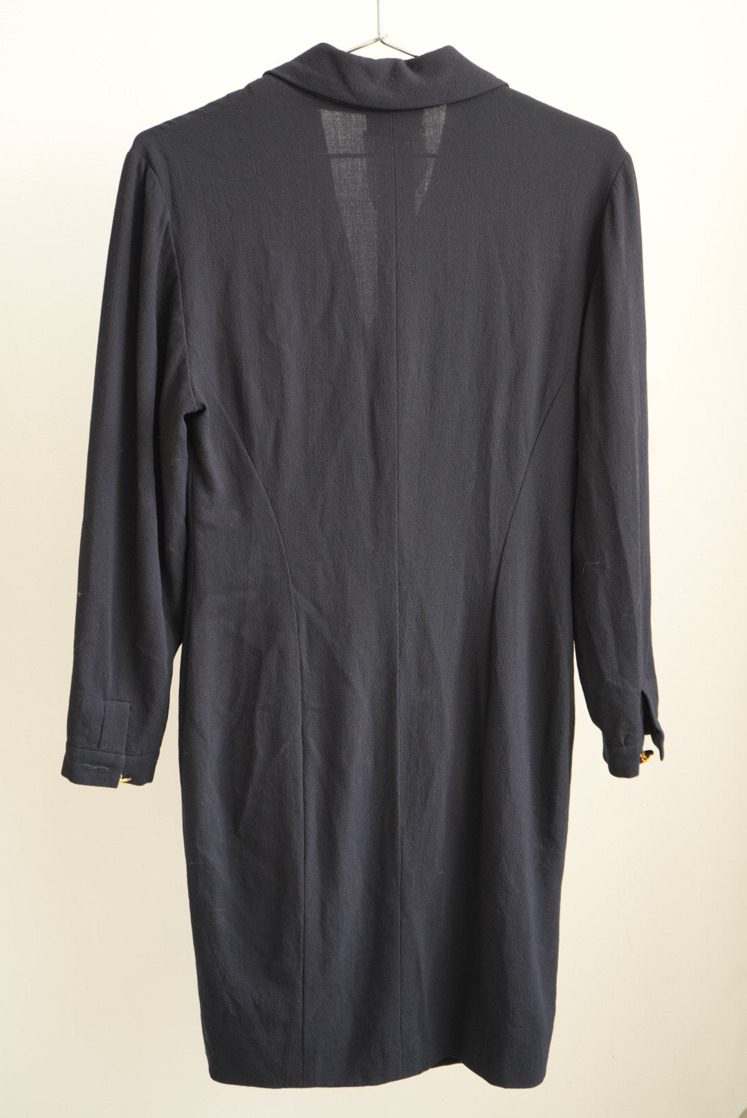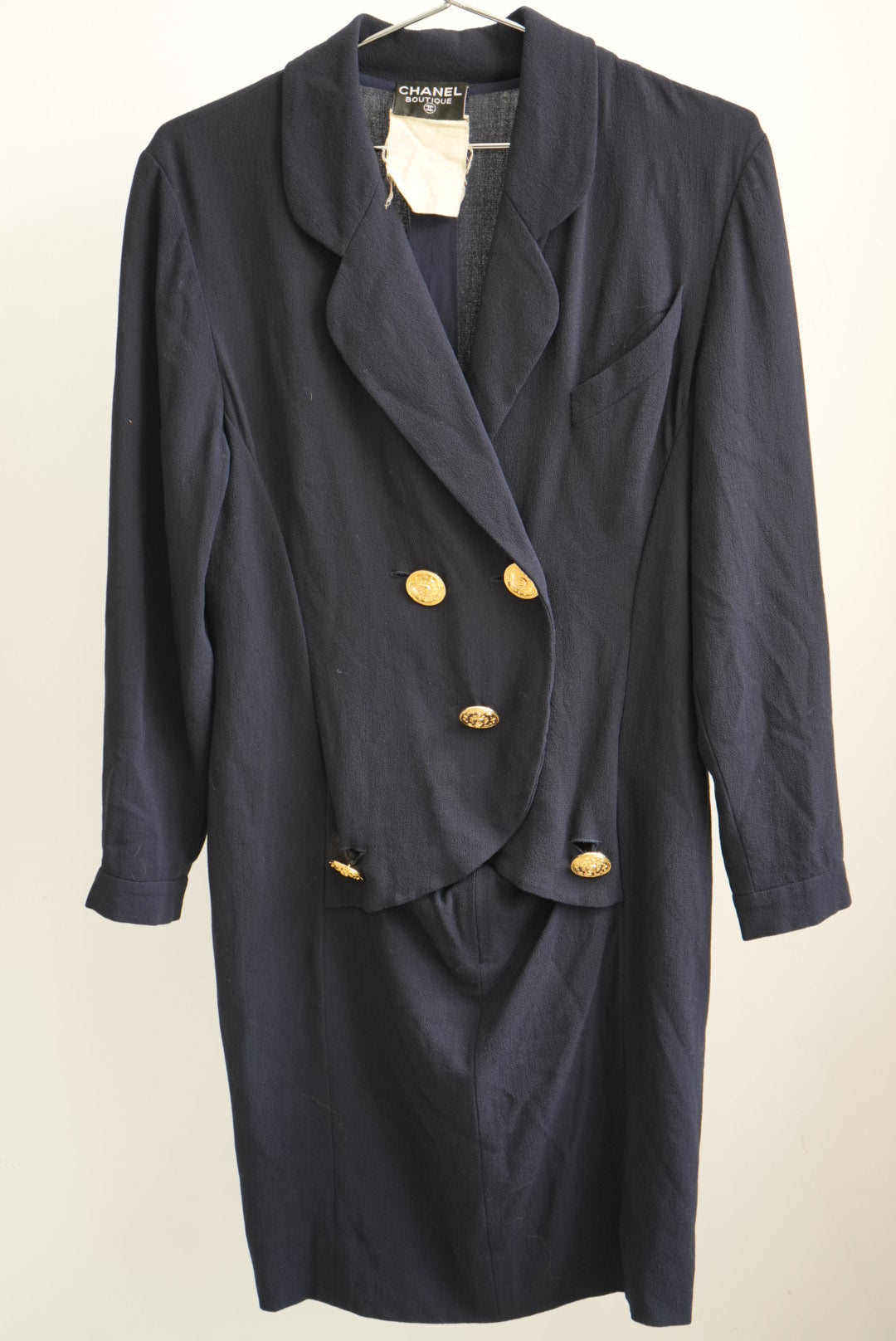 Vintage Chanel Boutique Navy Blue Double Breasted Blazer Dress Gold Buttons