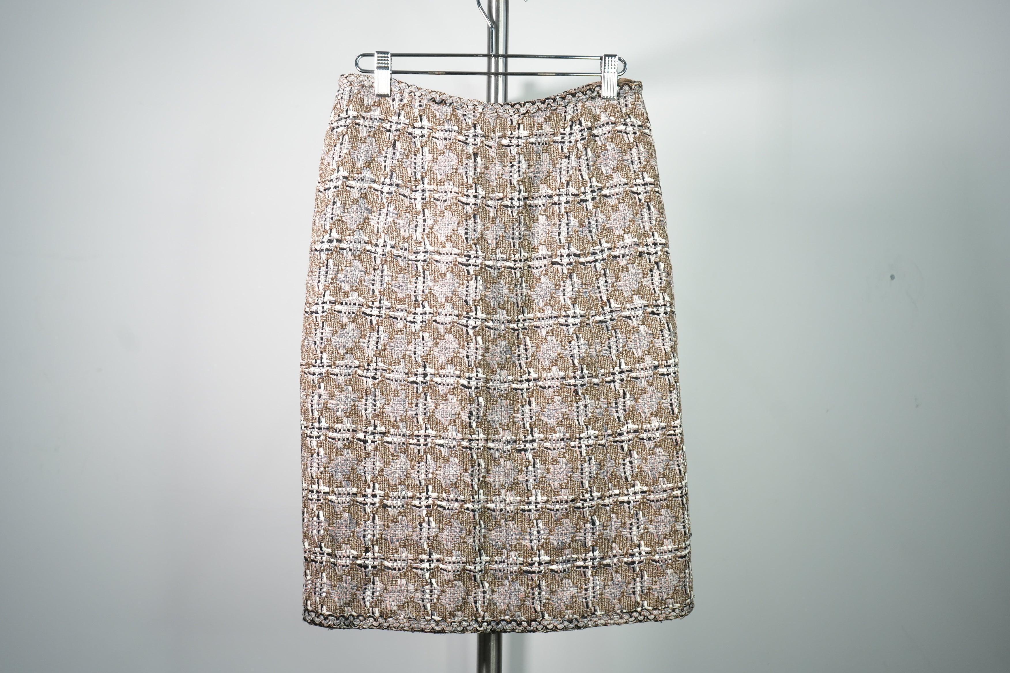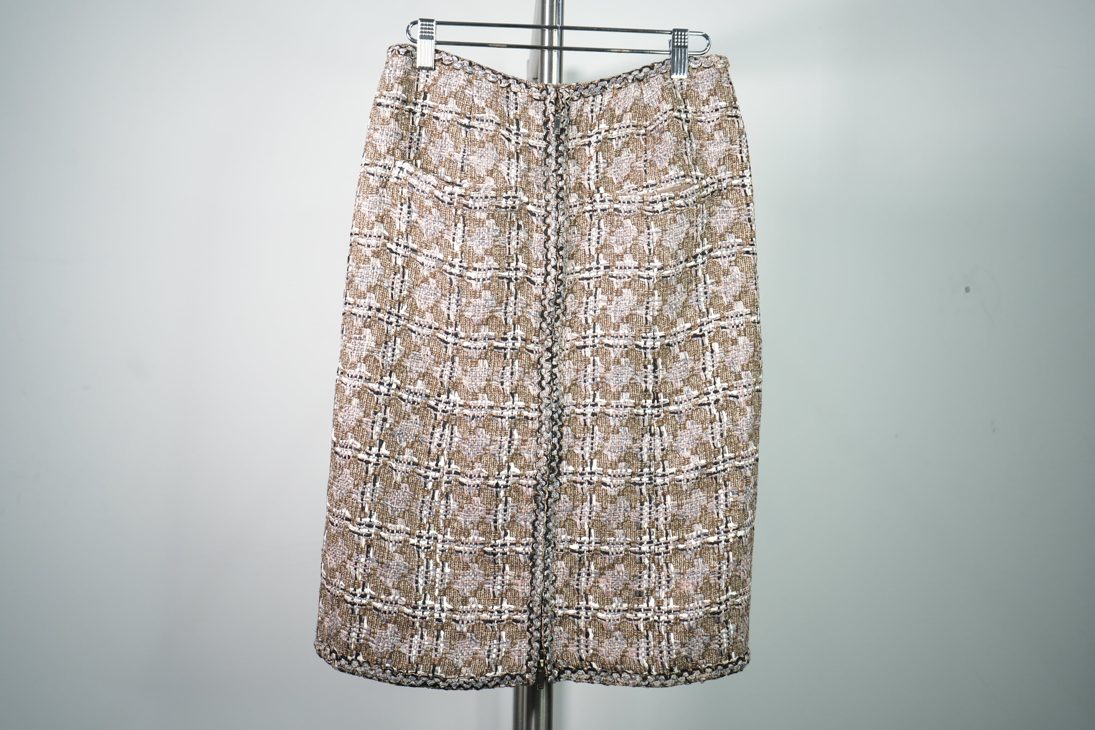 Vintage Chanel Fantasy Tweed A-Line Skirt Beige Cream Size 38