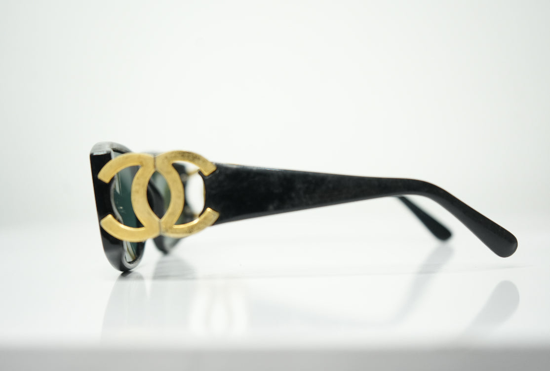 Vintage Chanel Gold Tone Interlocking CC Sunglasses Black