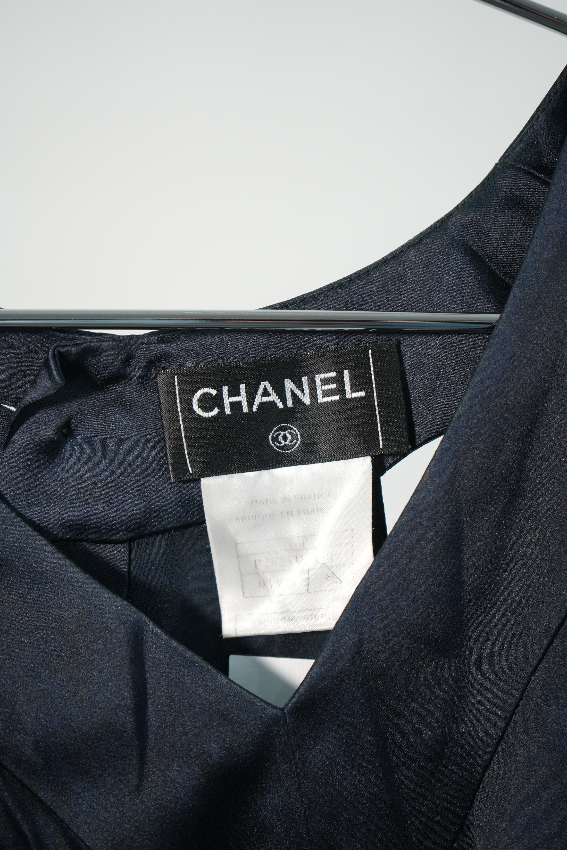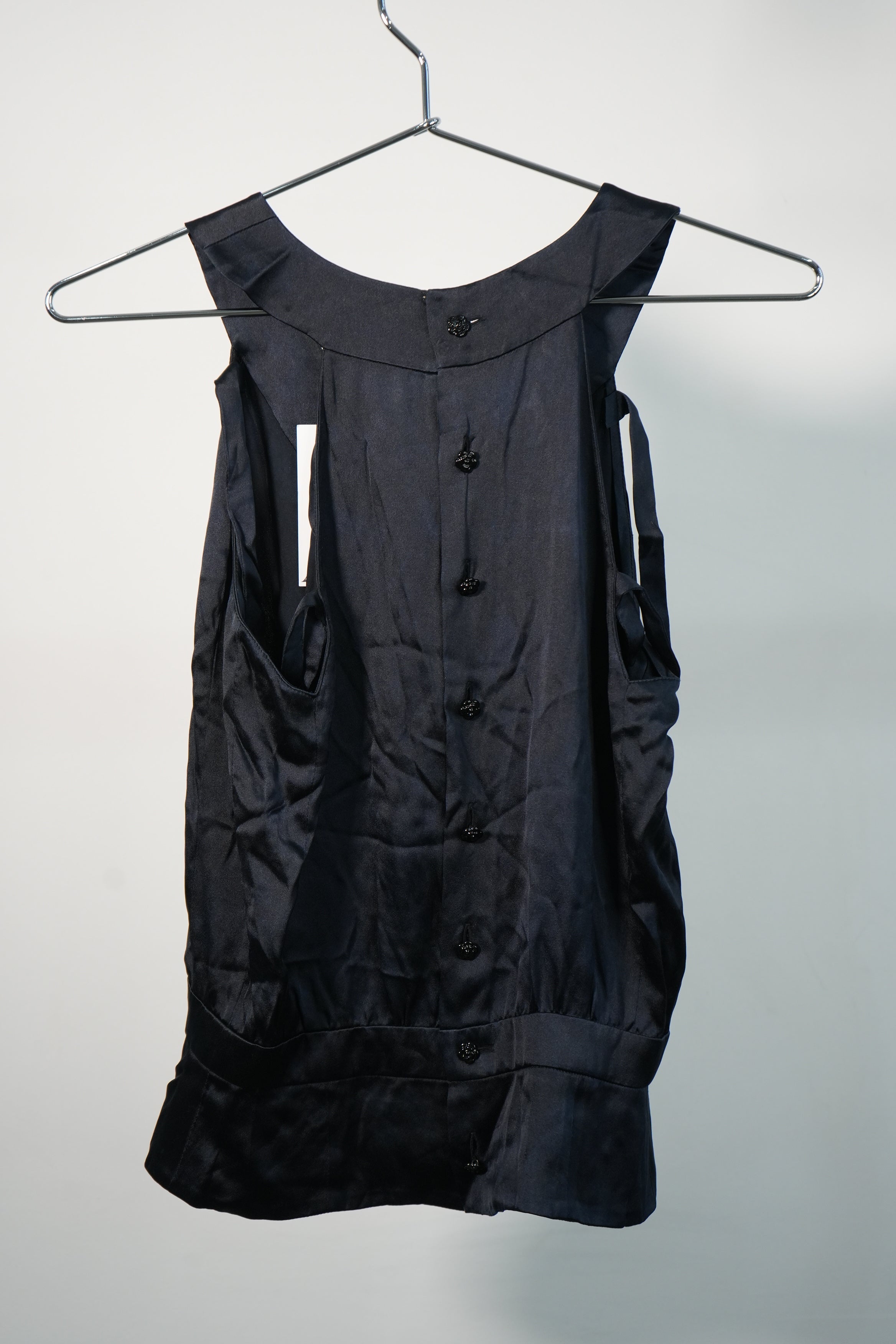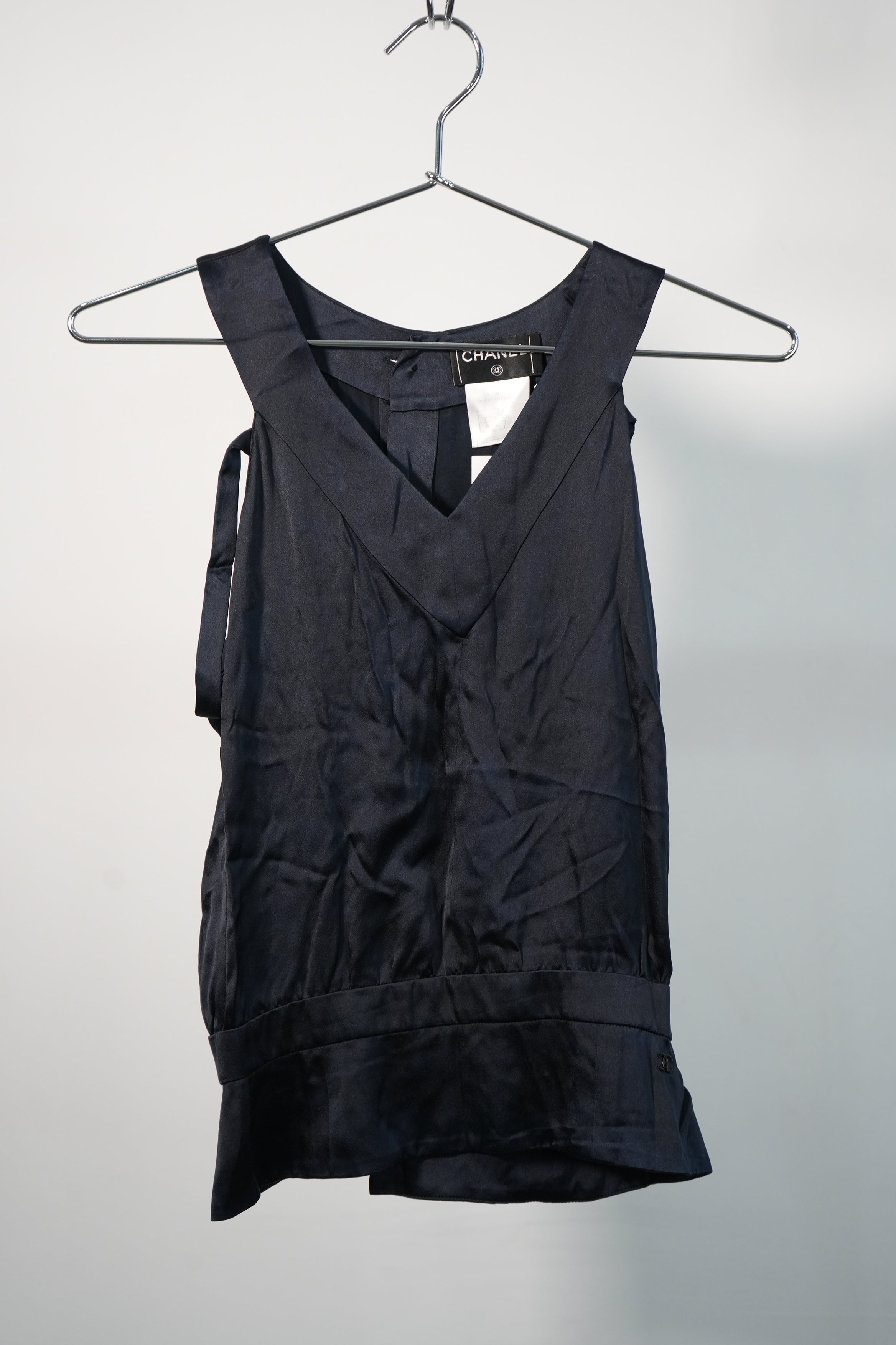 Vintage Chanel Navy Blue Silk Sleeveless Top Blouse Camisole