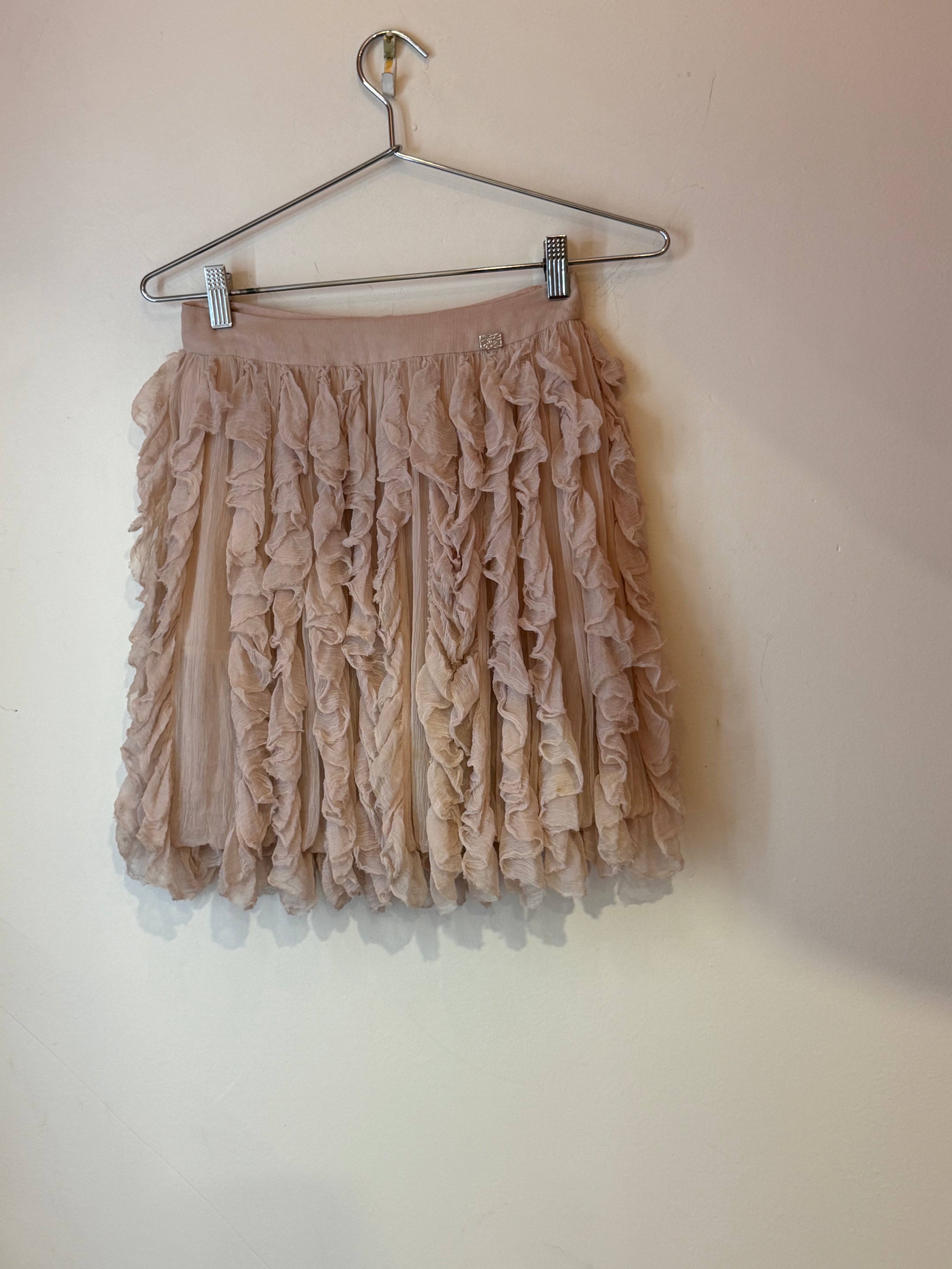 Vintage Chanel Silk Chiffon Ruffle Pleated Skirt Pink Size 34