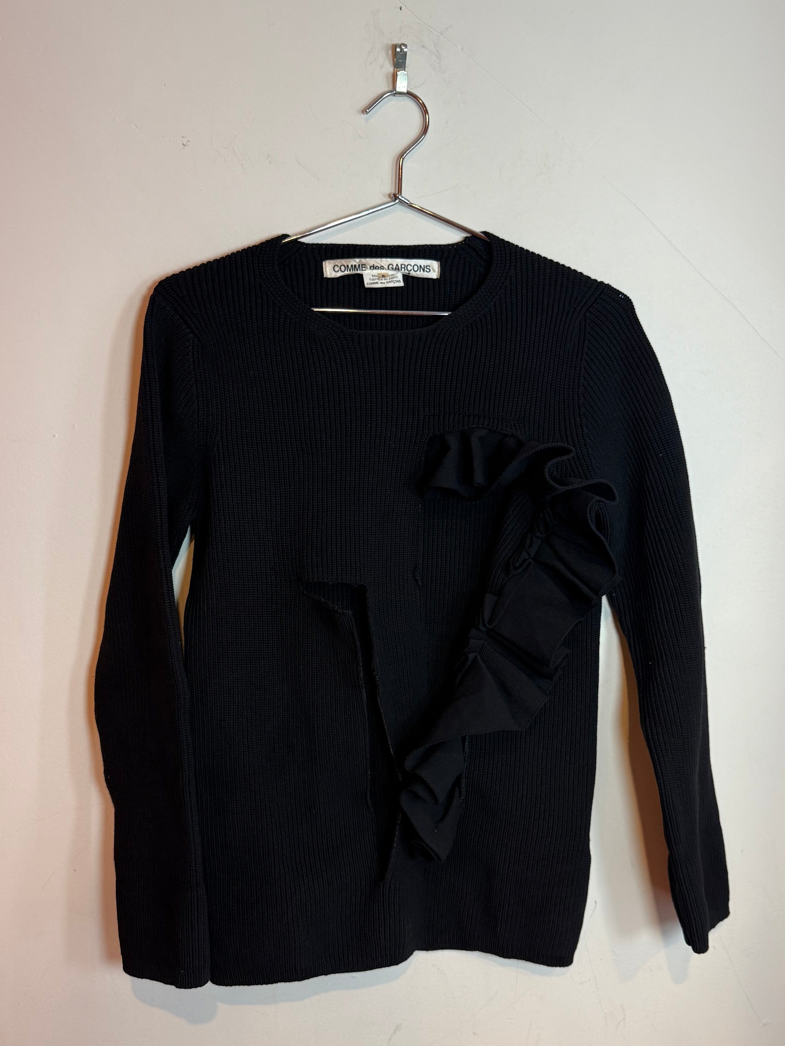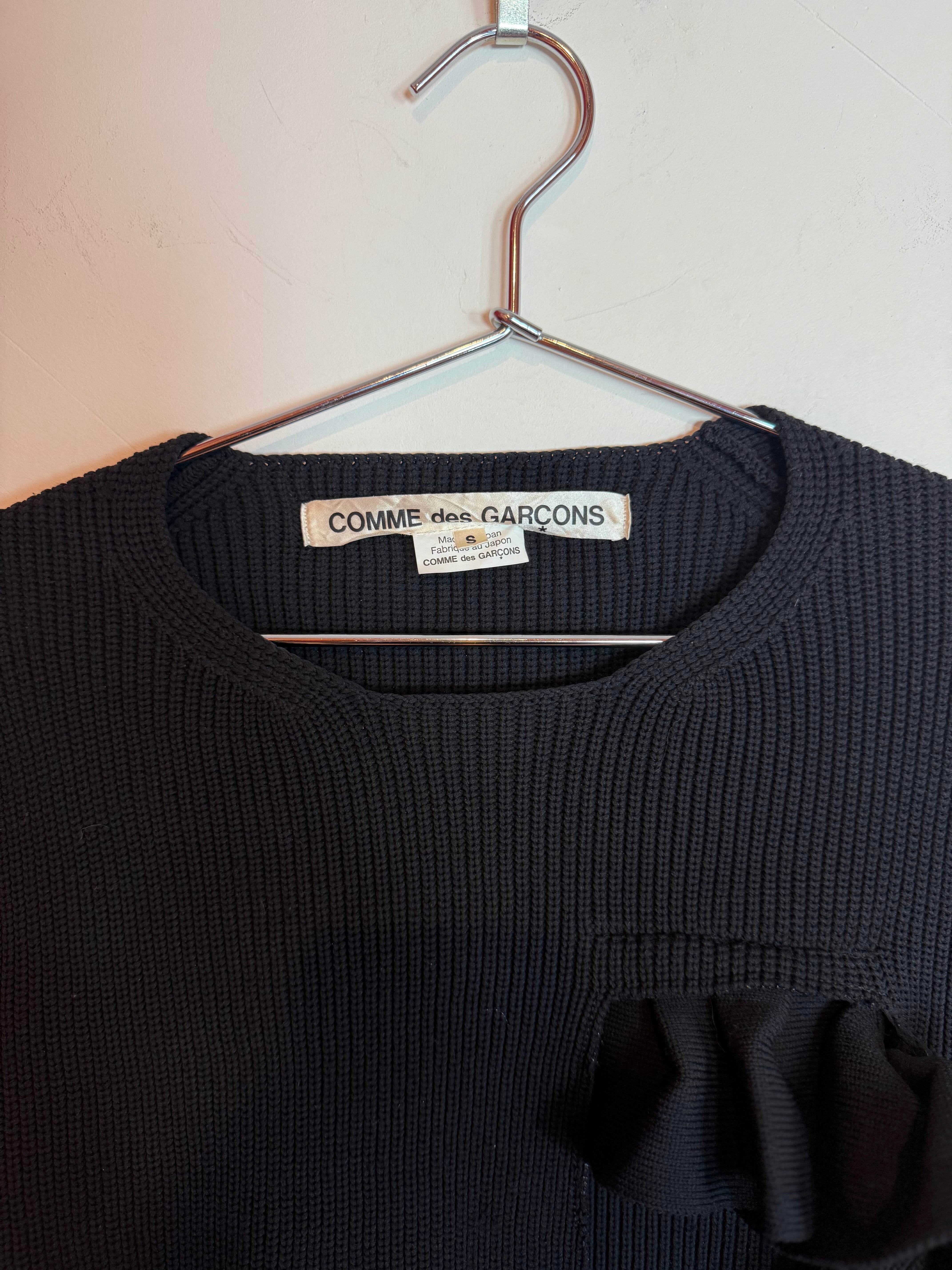 Vintage Comme des Garçons Black Ruffle Cutout Knit Pullover Sweater Small