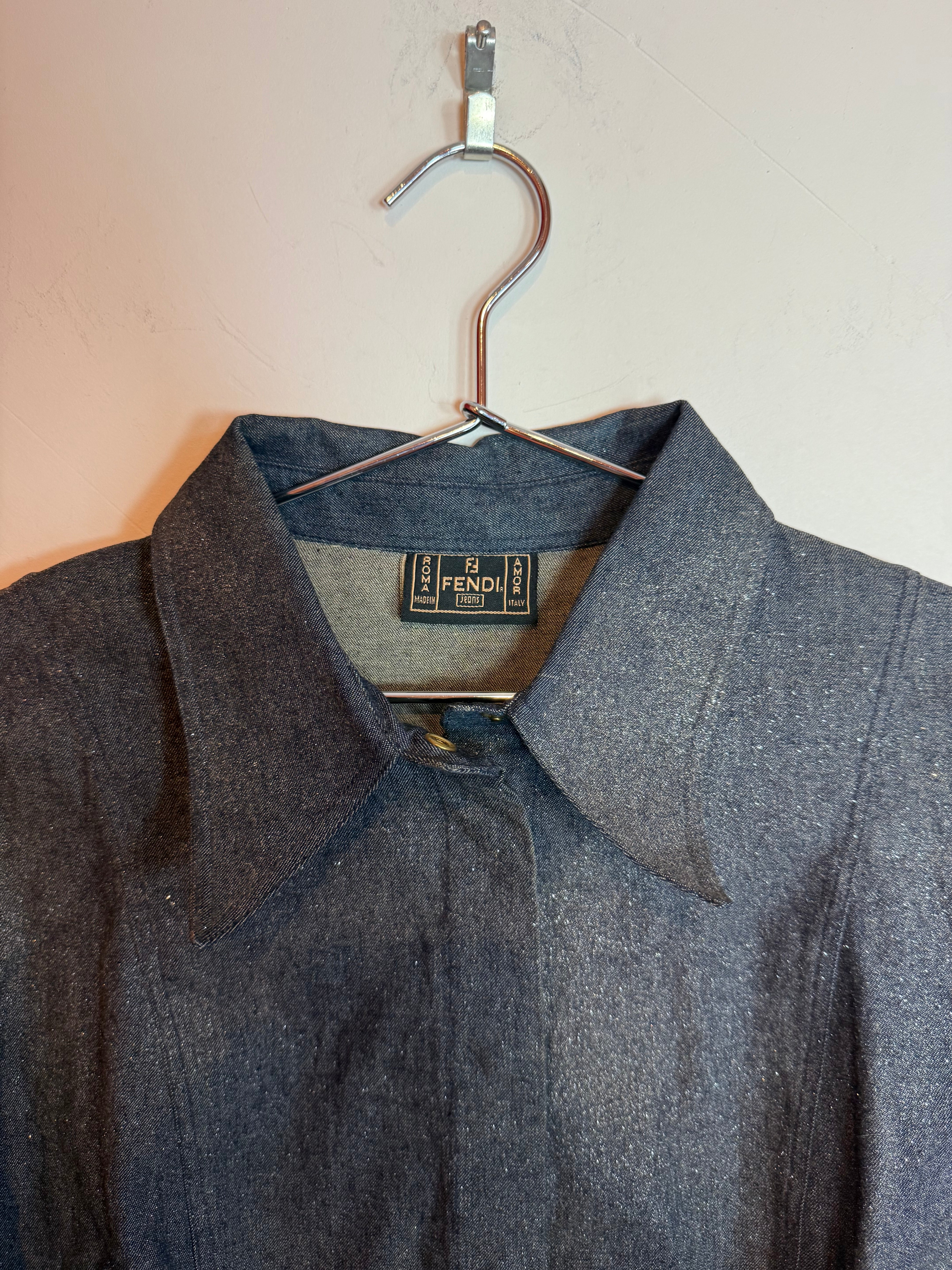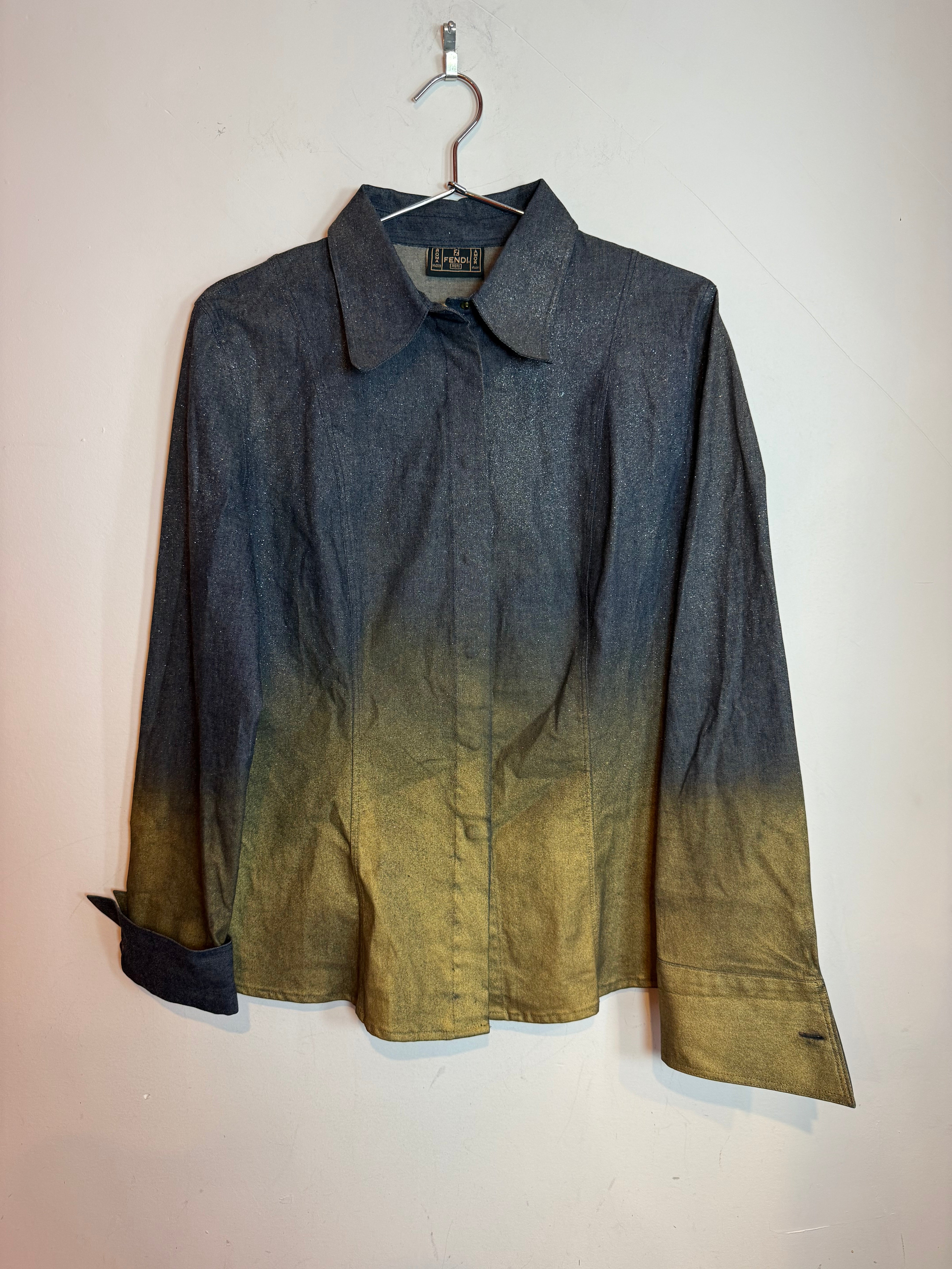 Vintage Fendi Metallic Ombre Swinger Snap Front Shirt Gold Blue