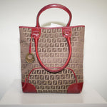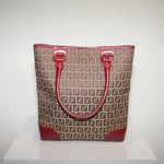 Vintage Fendi Zucca Canvas Leather Trim Tote Bag Brown/Red
