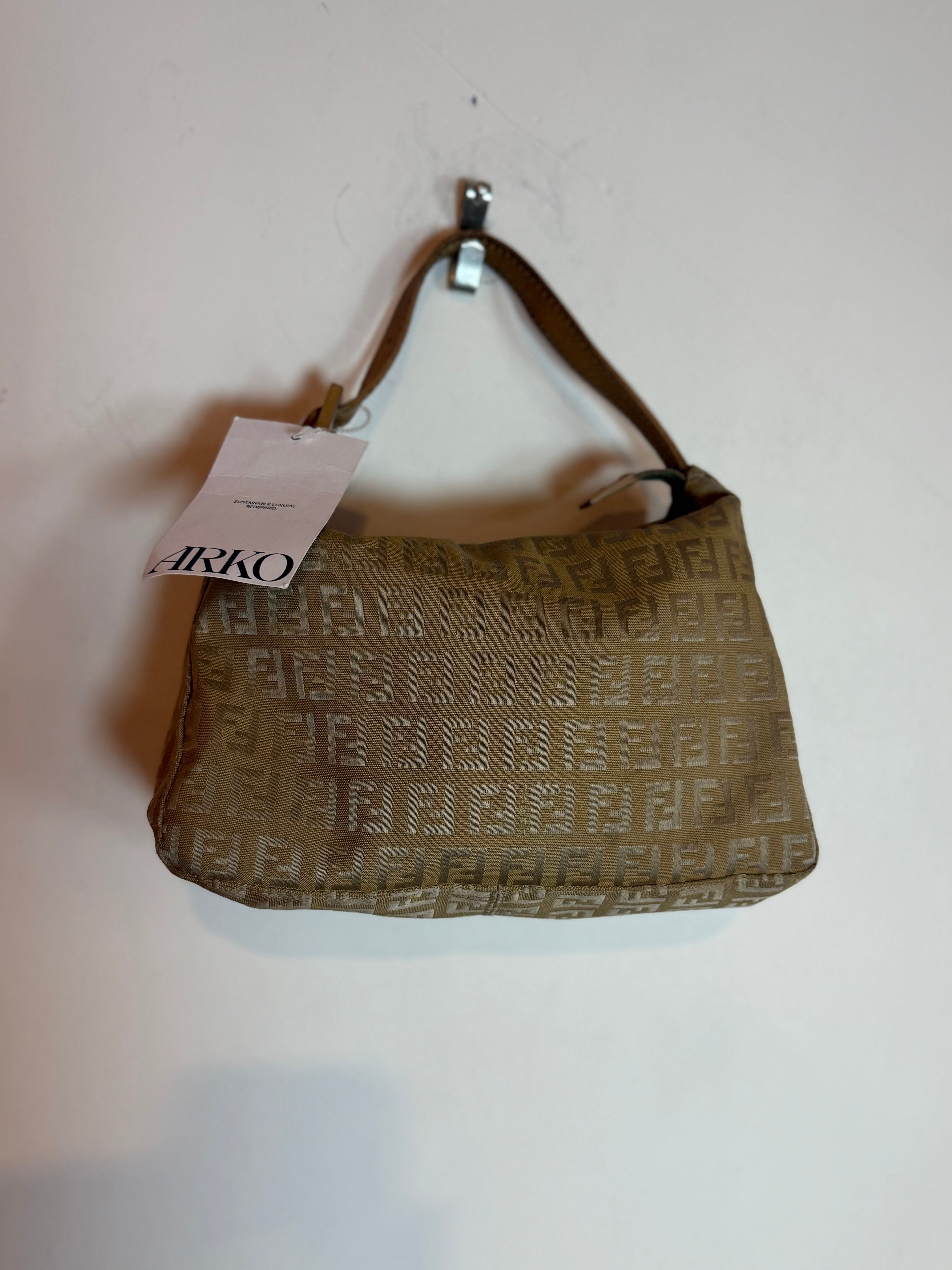 Vintage Fendi Zucca Zucchino Monogram Pochette Handbag Shoulder Bag Brown