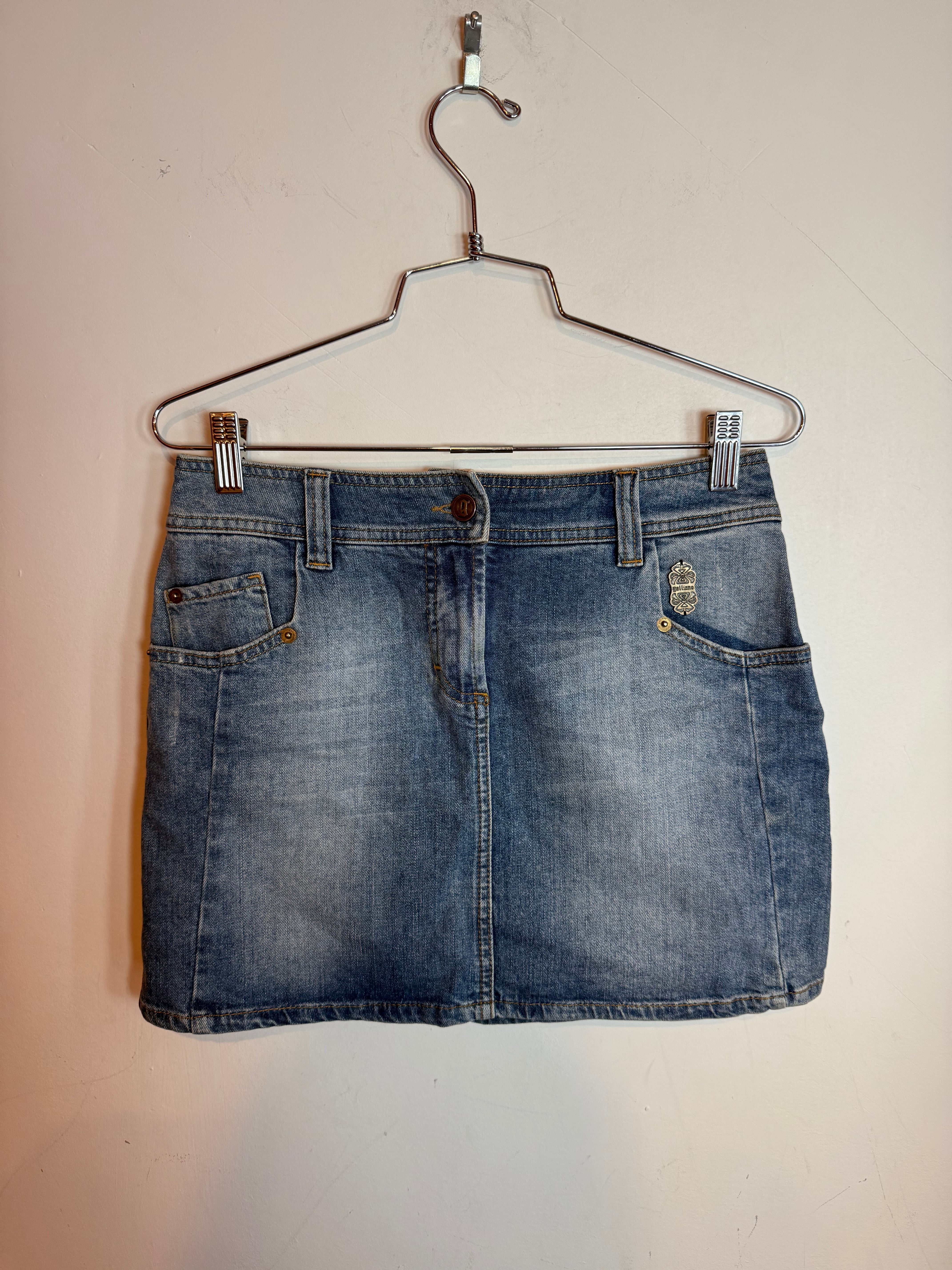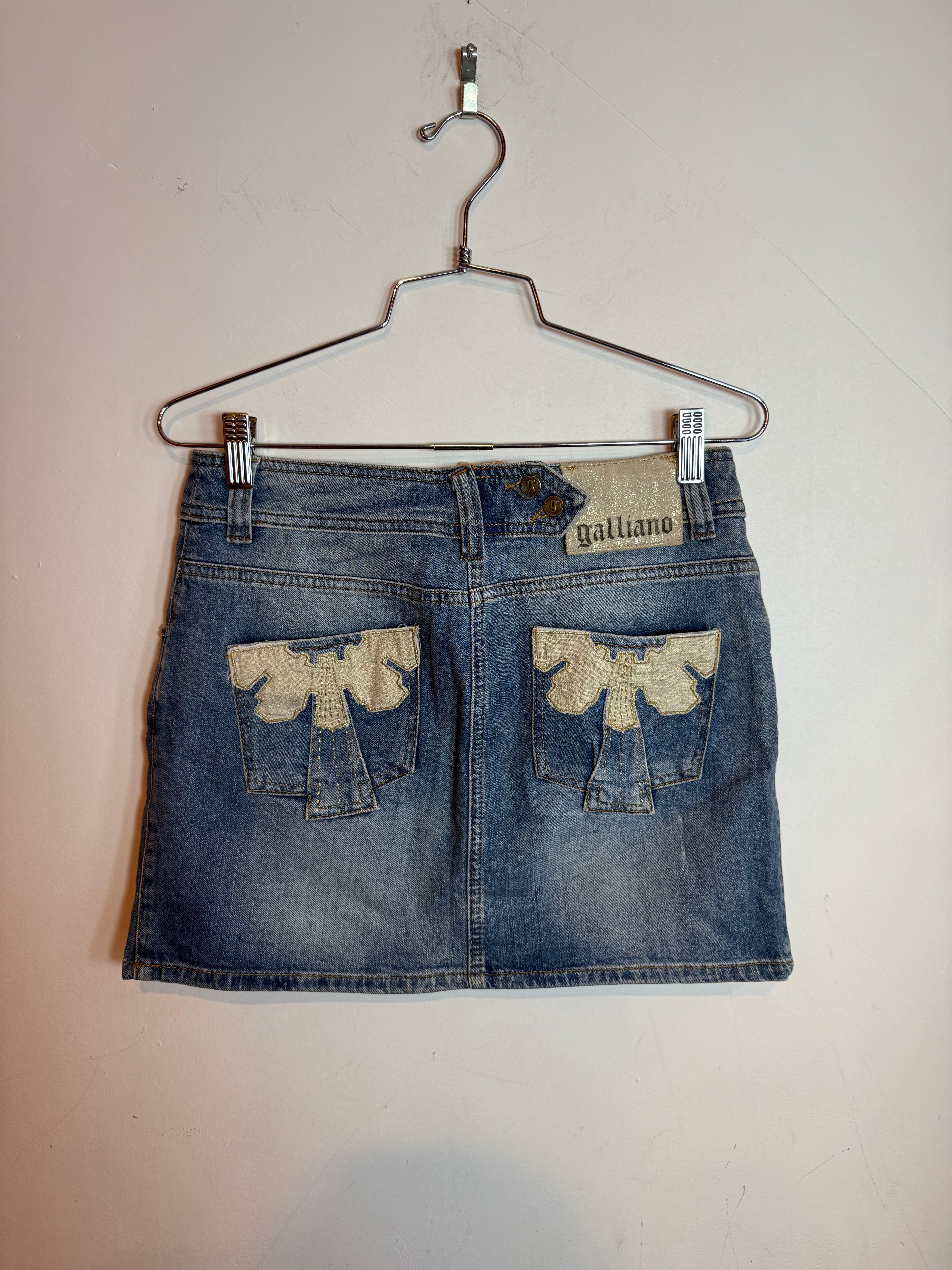 Vintage John Galliano Denim Mini Skirt with Back Pocket Embroidery