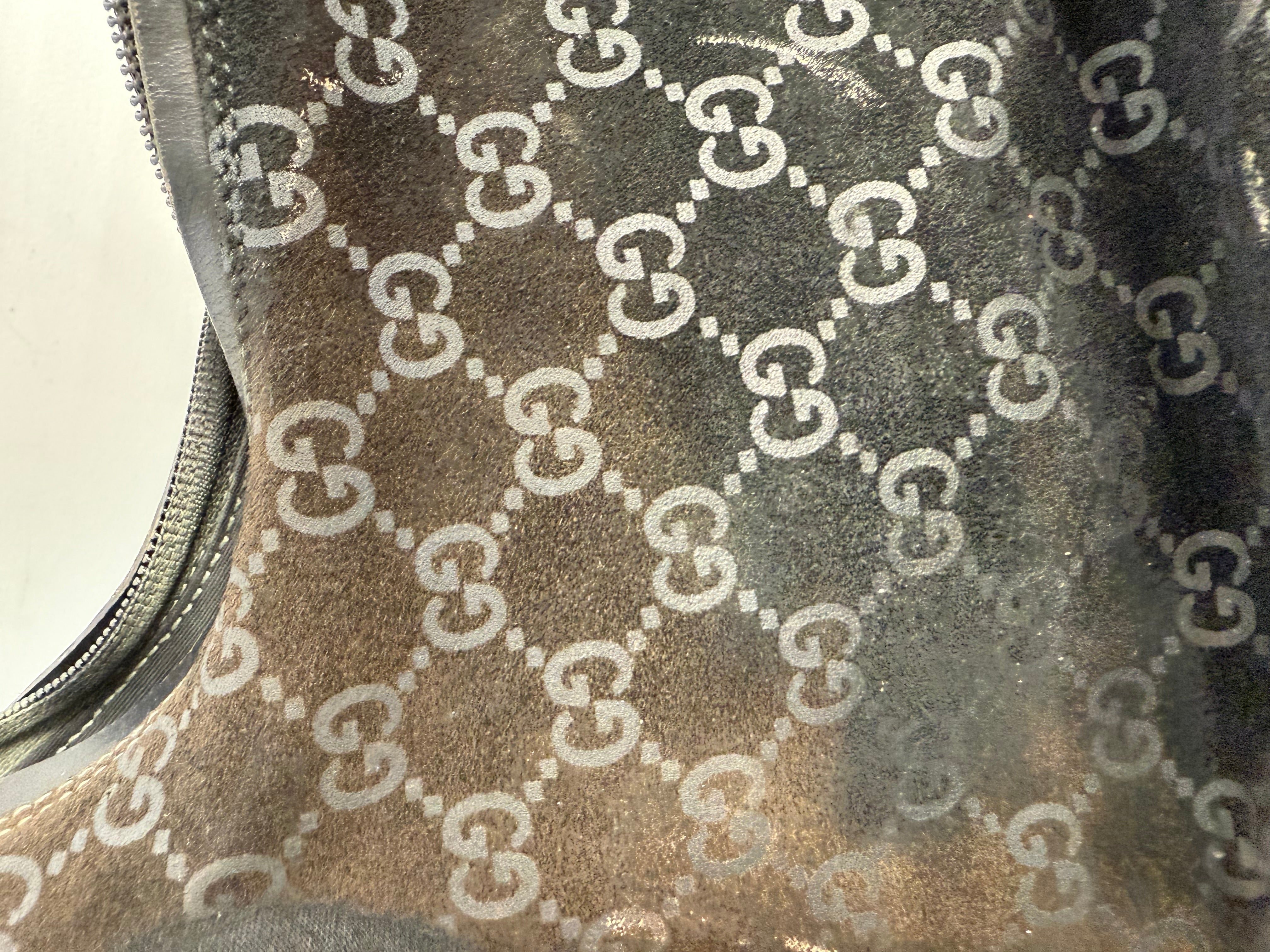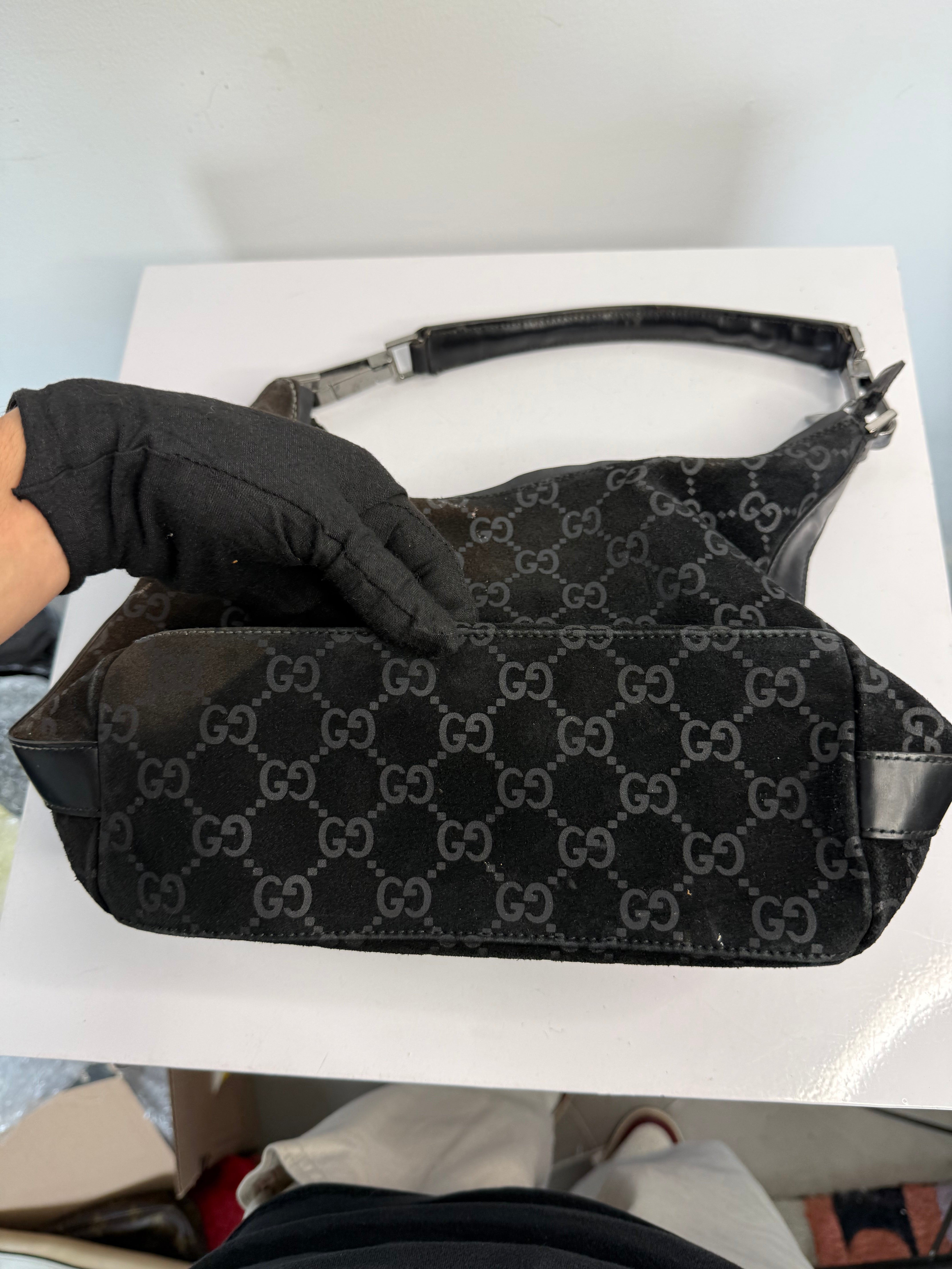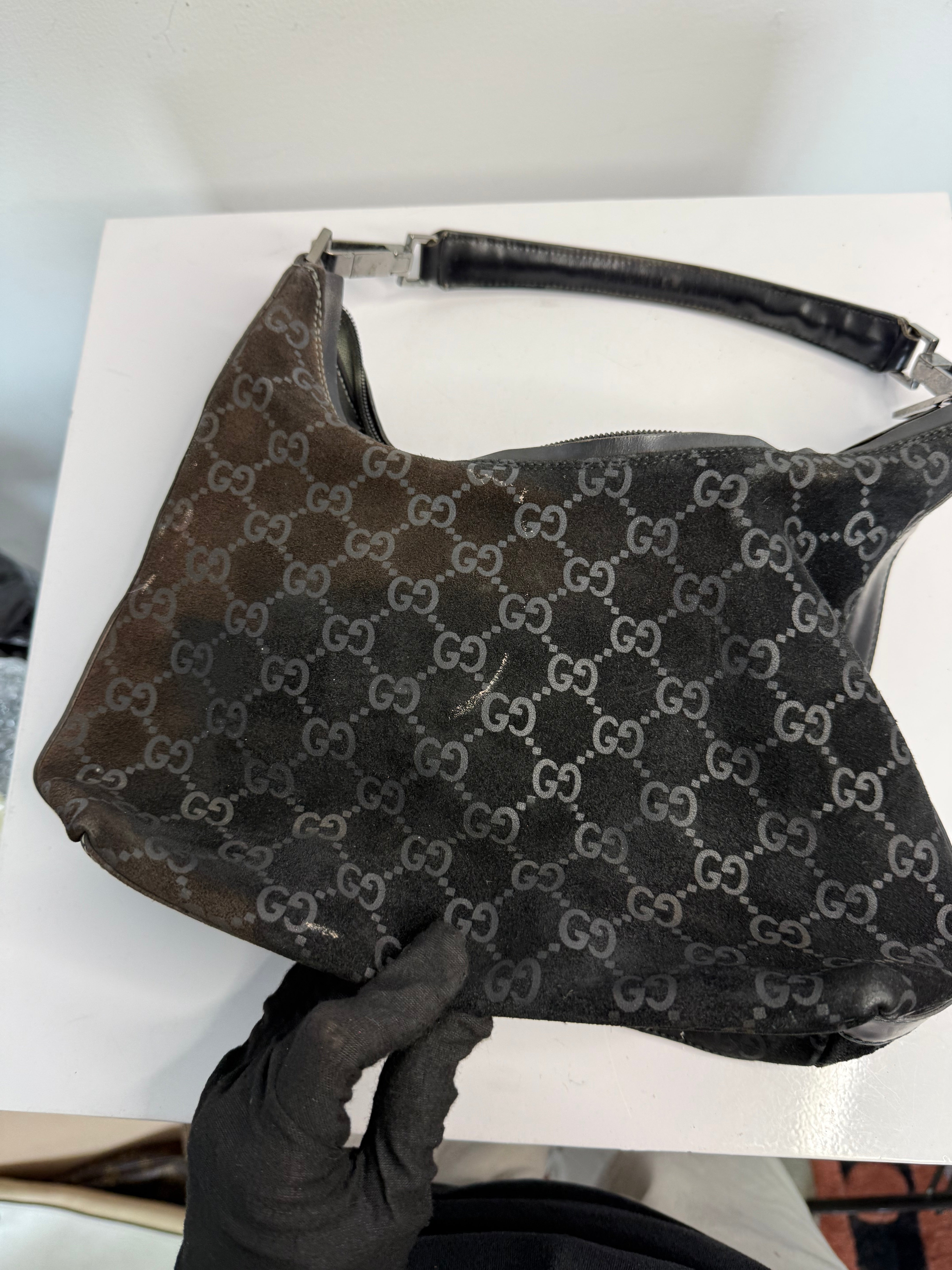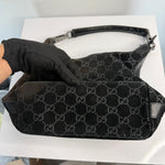 Vintage Gucci Black GG Suede Hobo Shoulder Bag