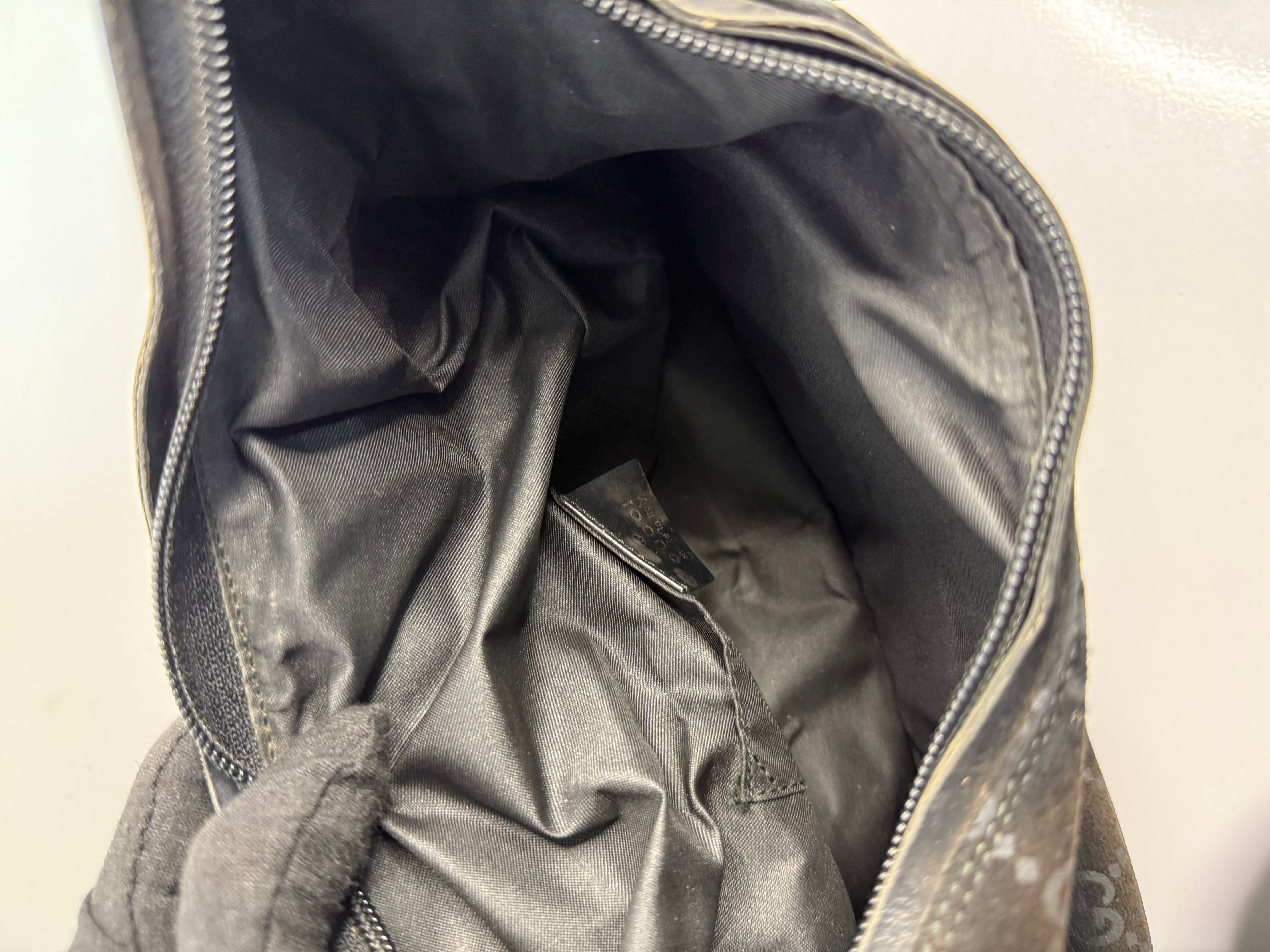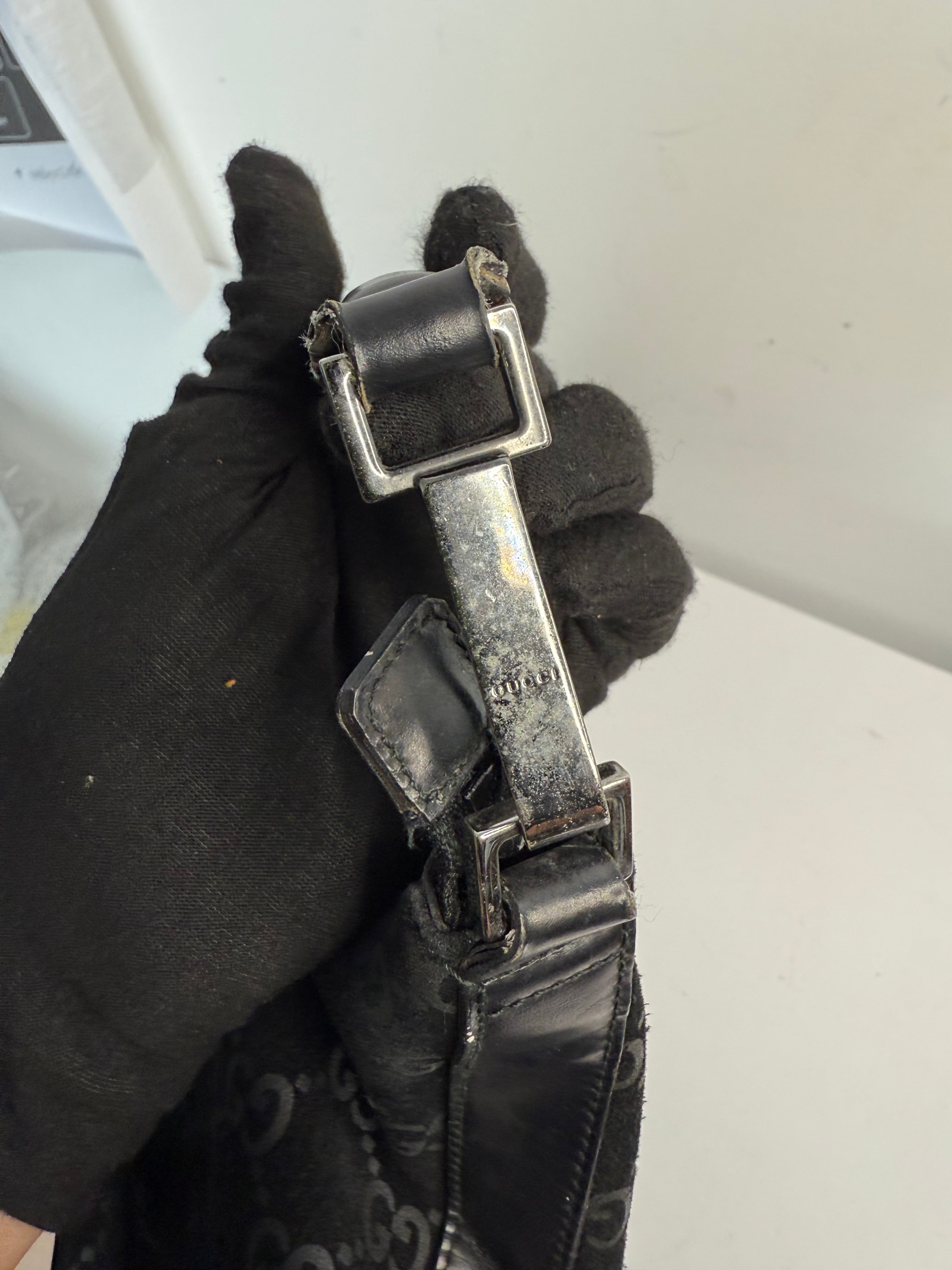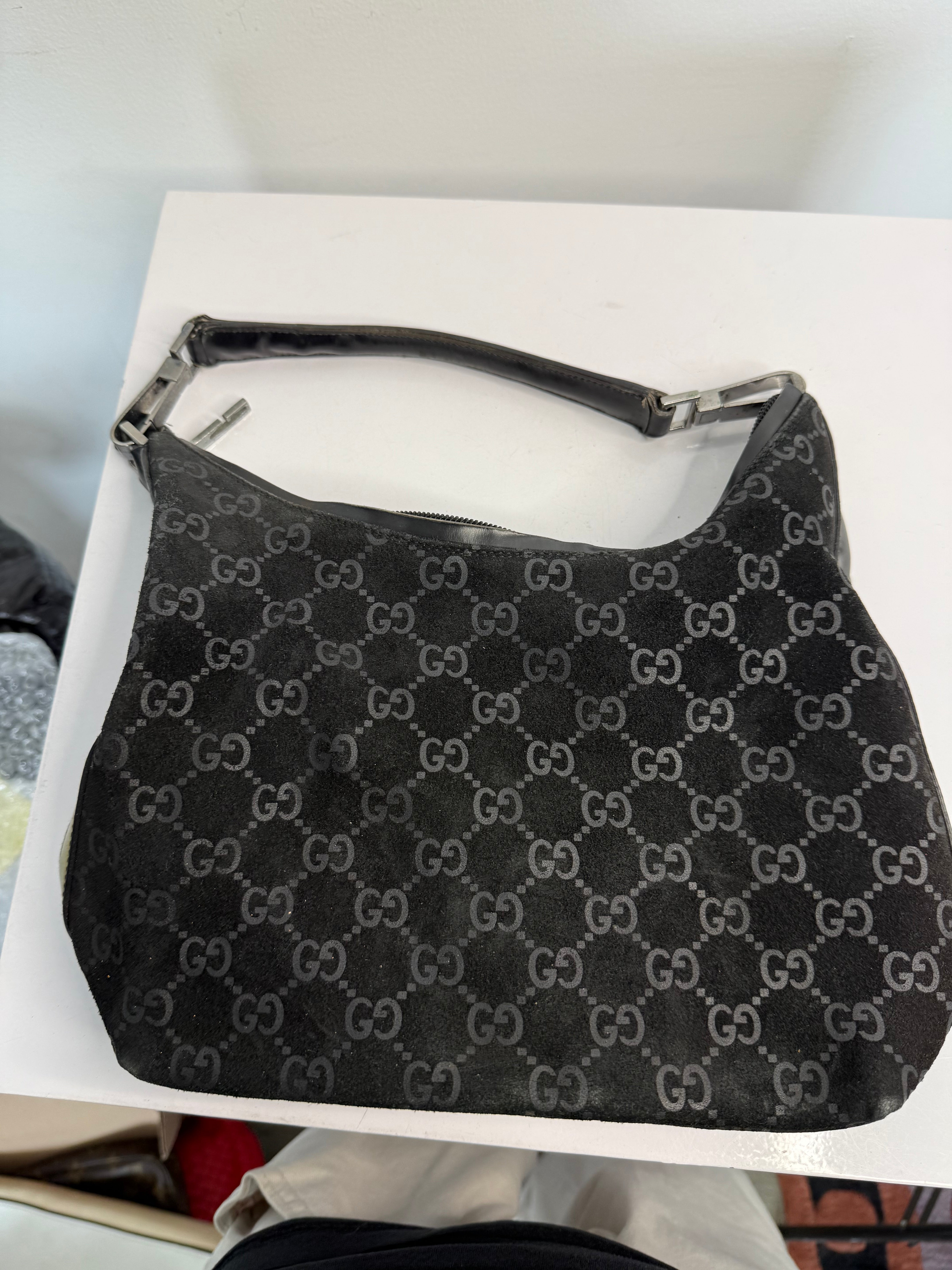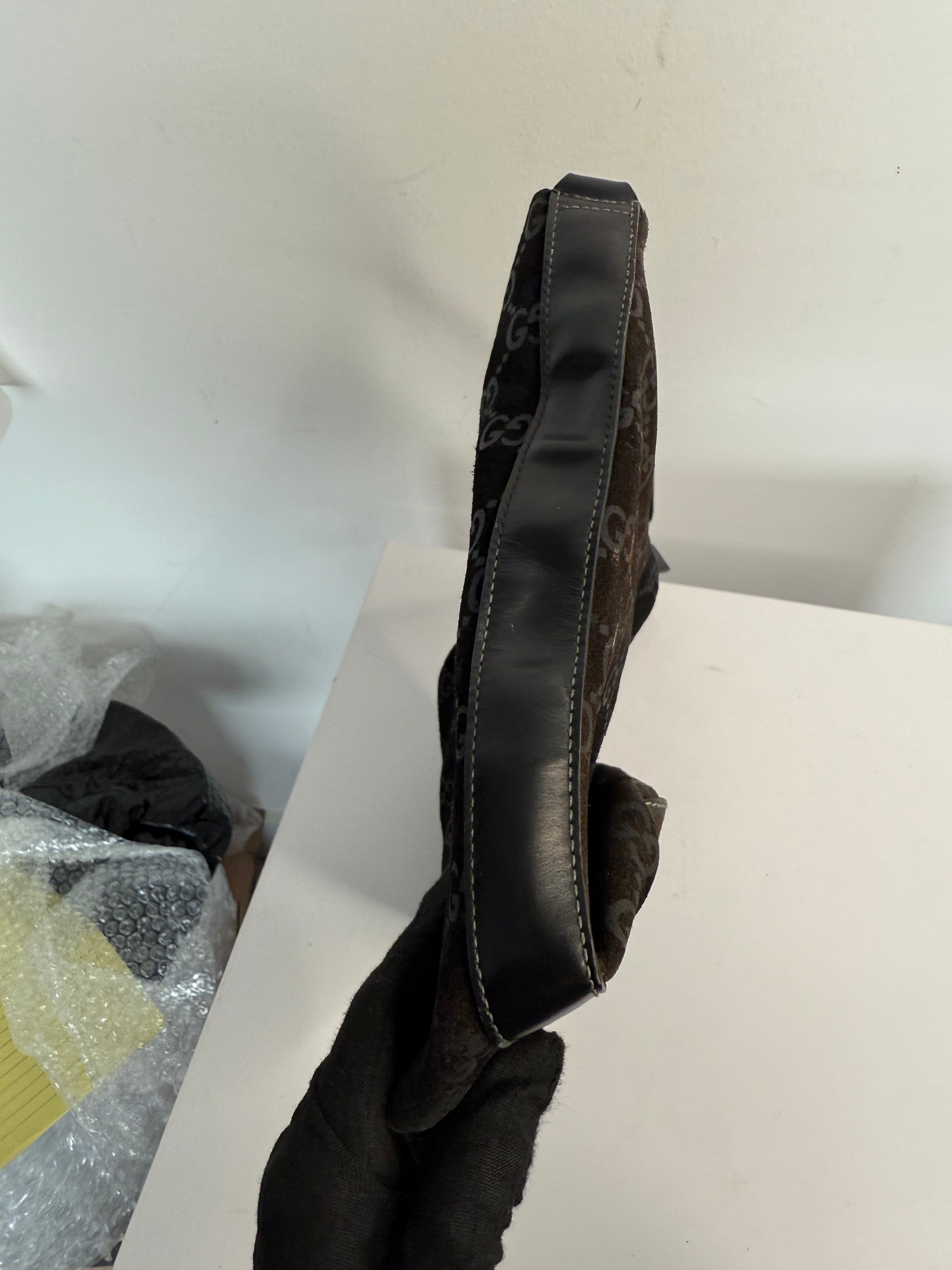 Vintage Gucci Black GG Suede Hobo Shoulder Bag