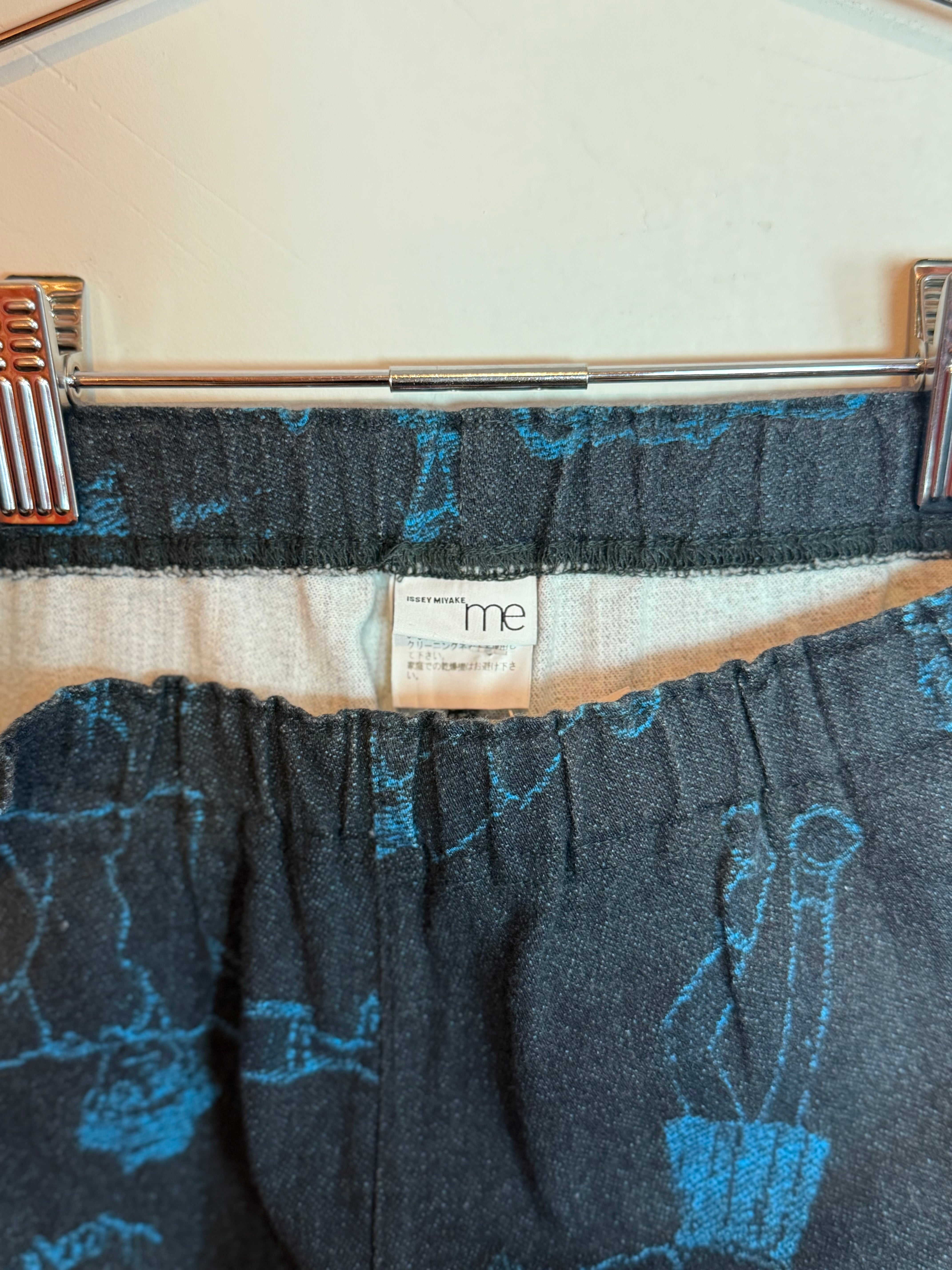 Vintage Issey Miyake Me Cartoon Graphic Print Trousers Pants Blue