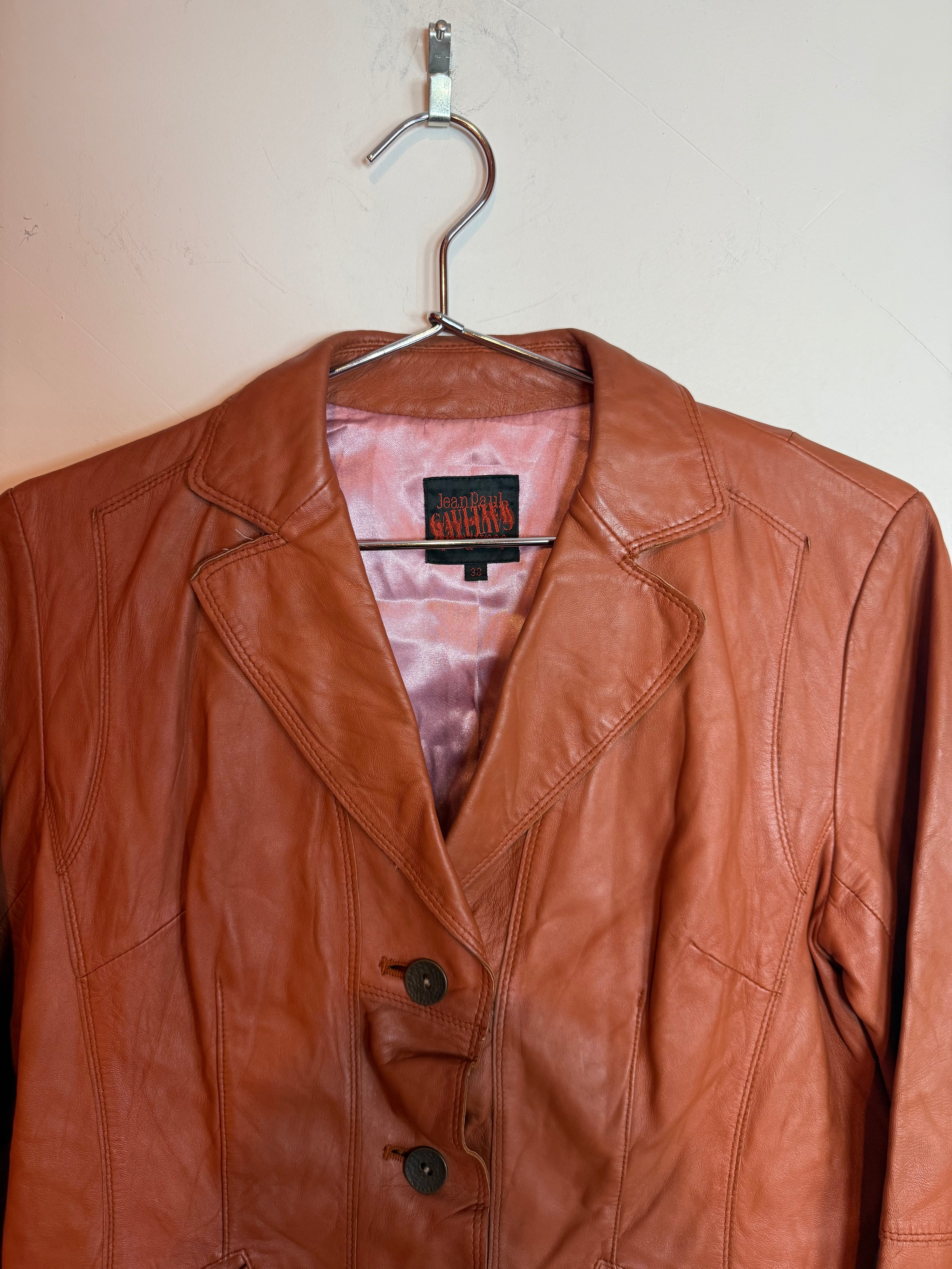 Vintage Jean Paul Gaultier Brown Leather Blazer Pink Satin Lining
