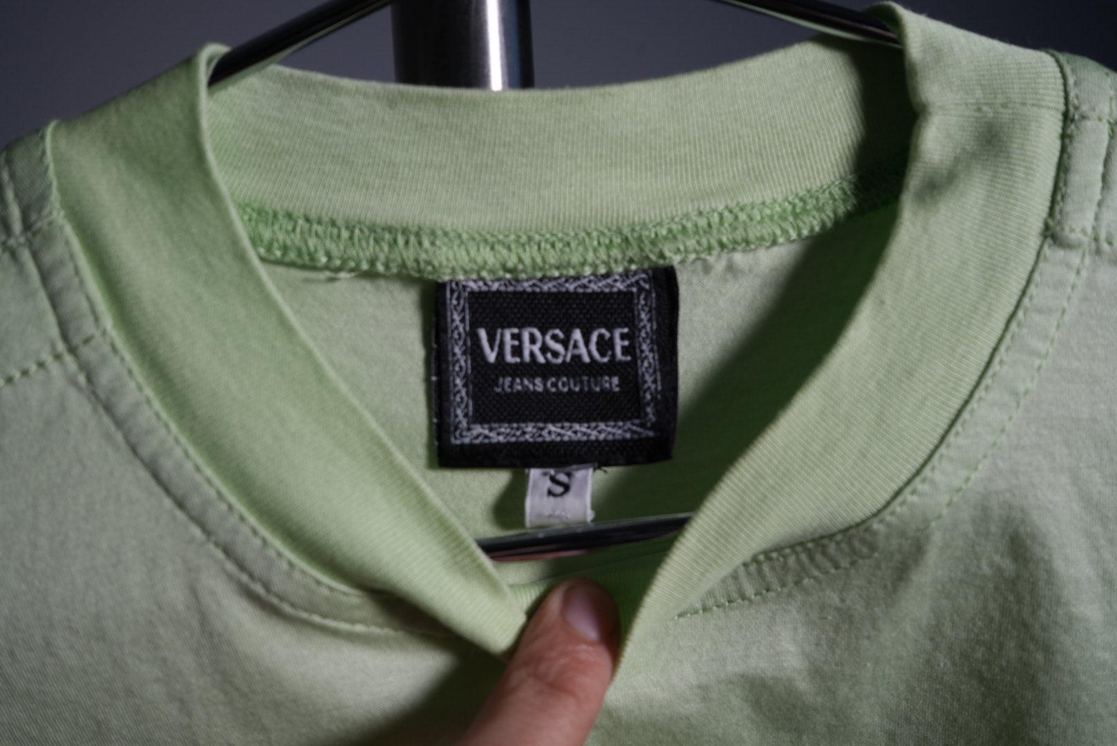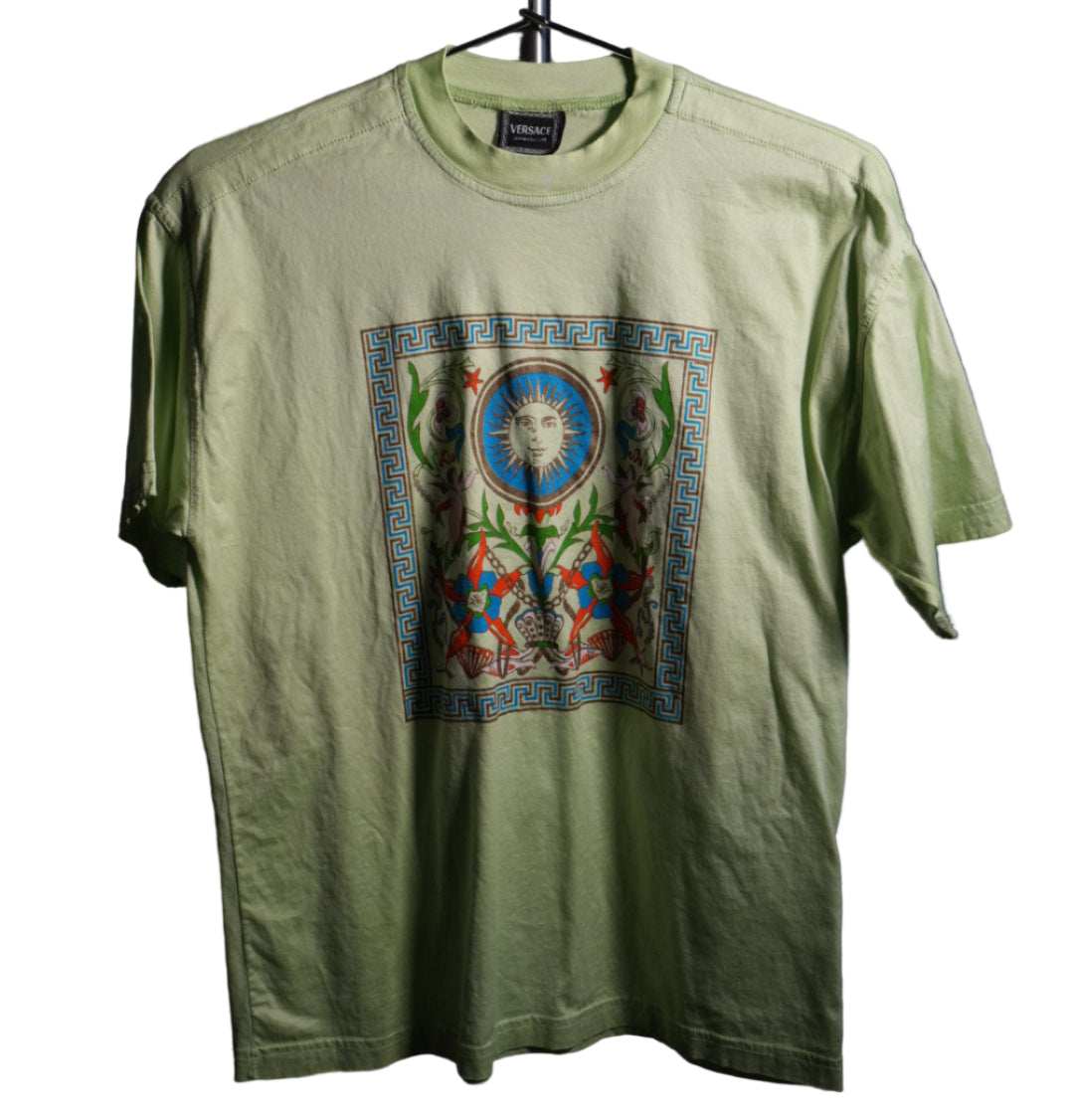 Vintage Versace Sun Face Greek Key Tee Shirt Green Size Small