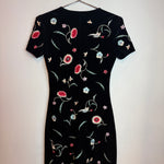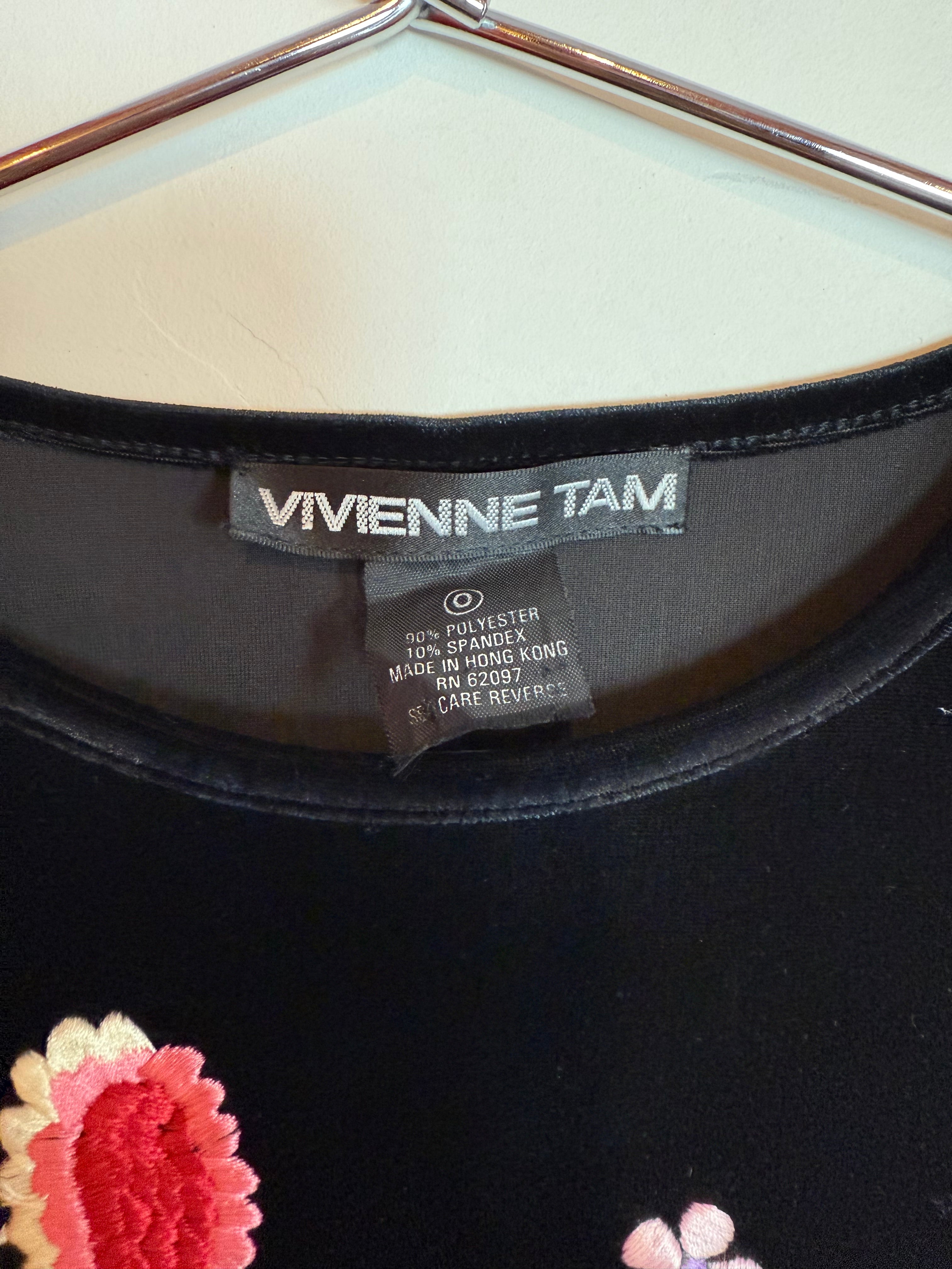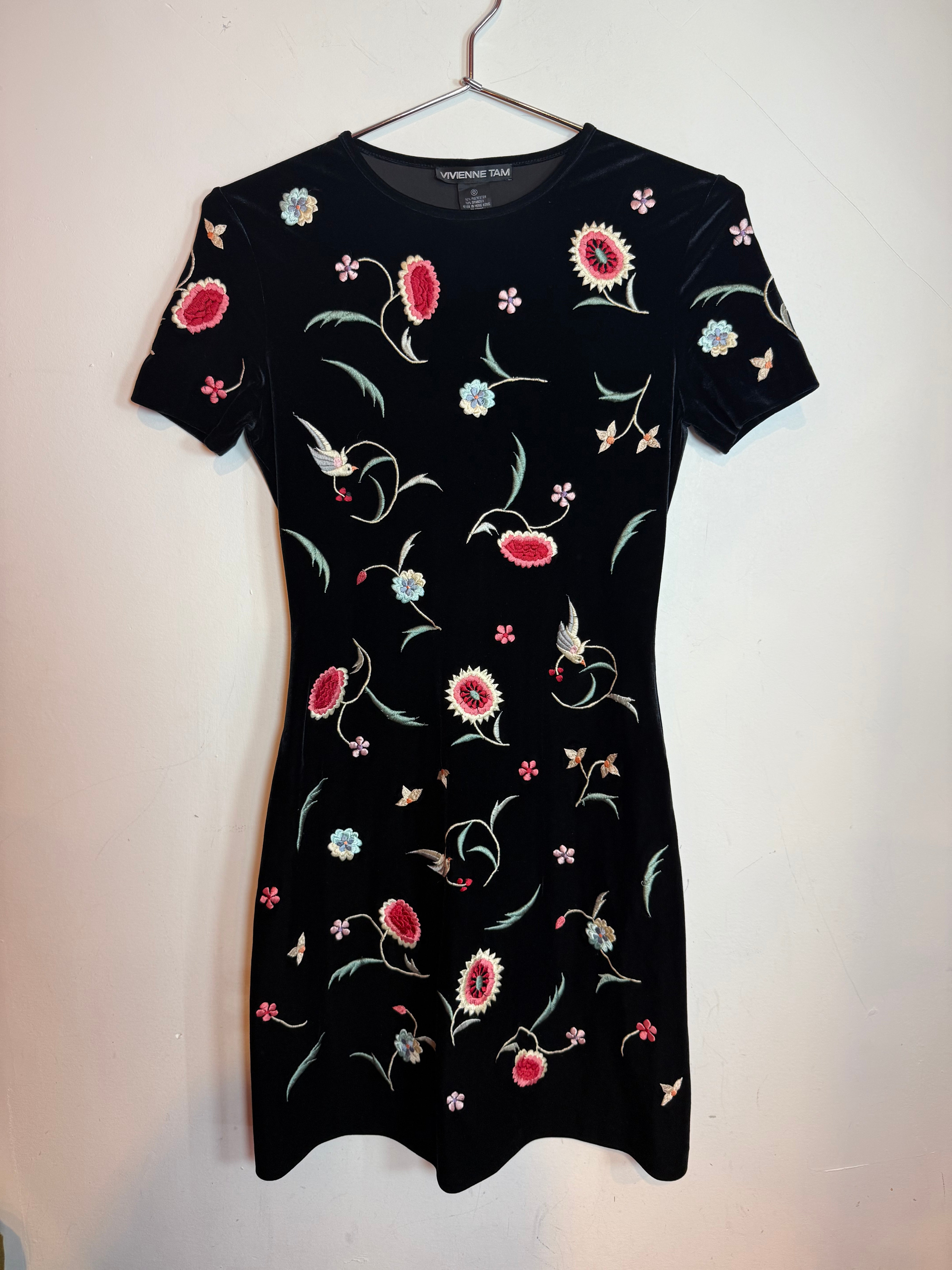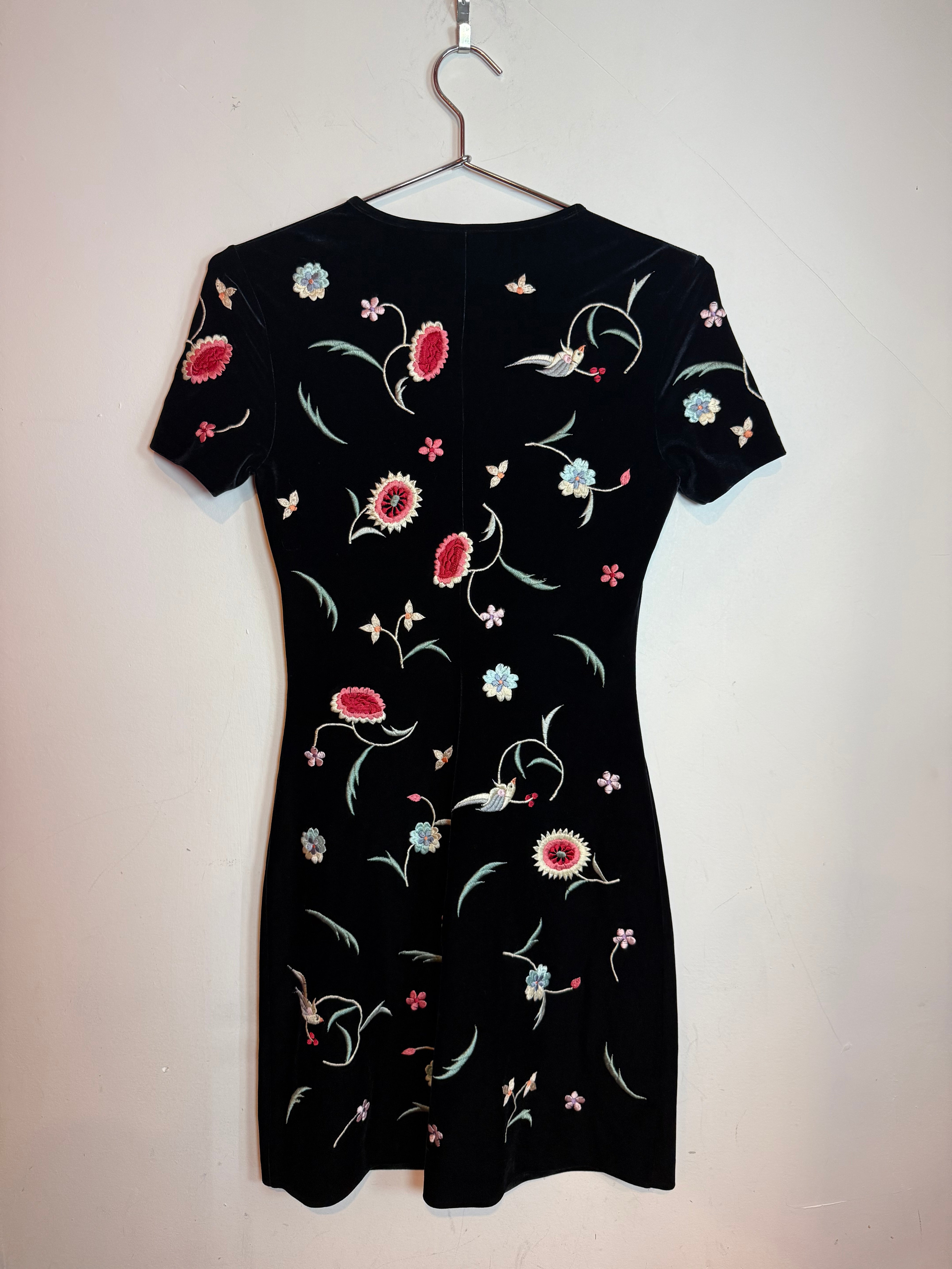 Vintage Vivienne Tam Black Velvet Mini Dress Embroidered Floral
