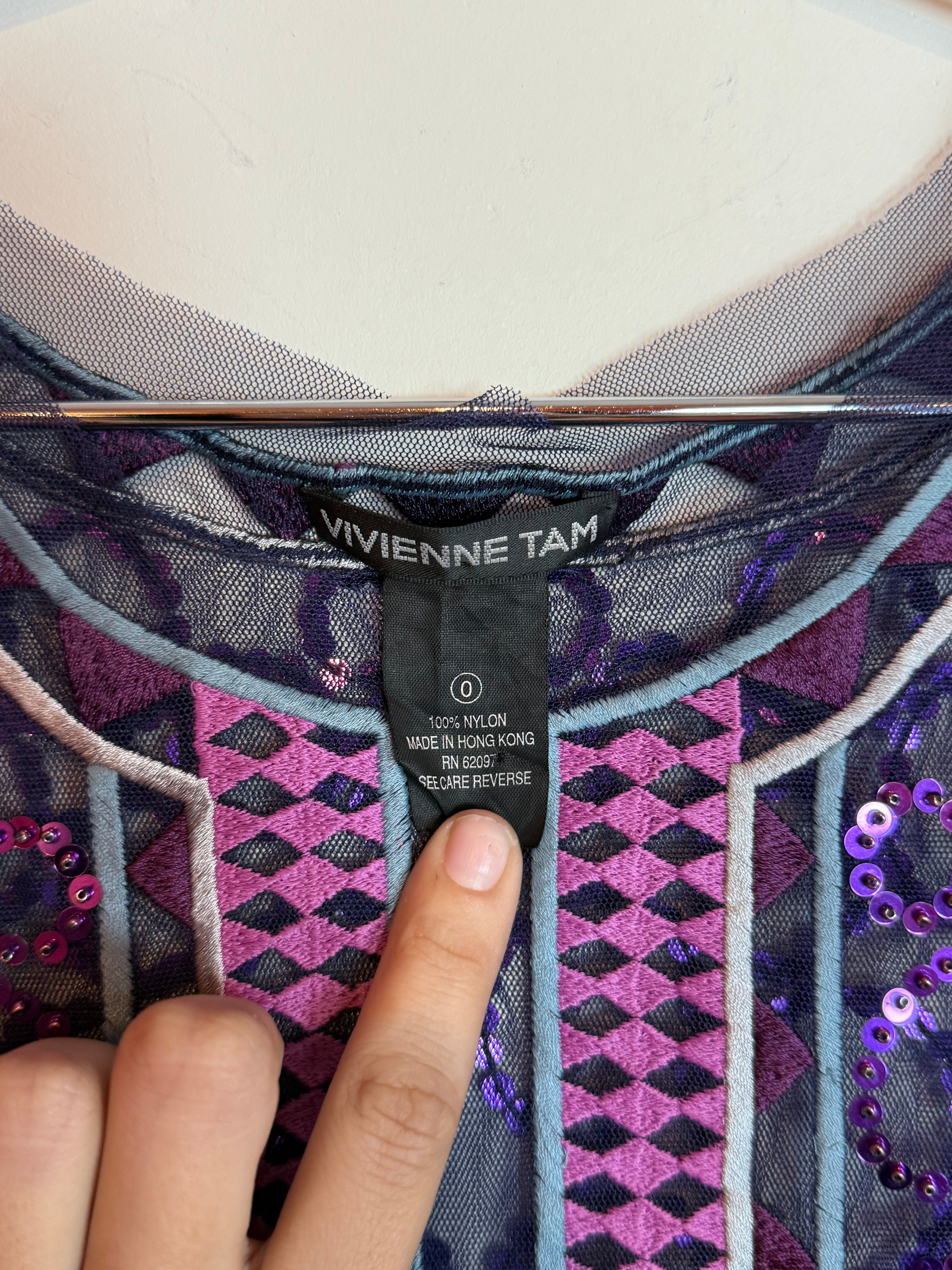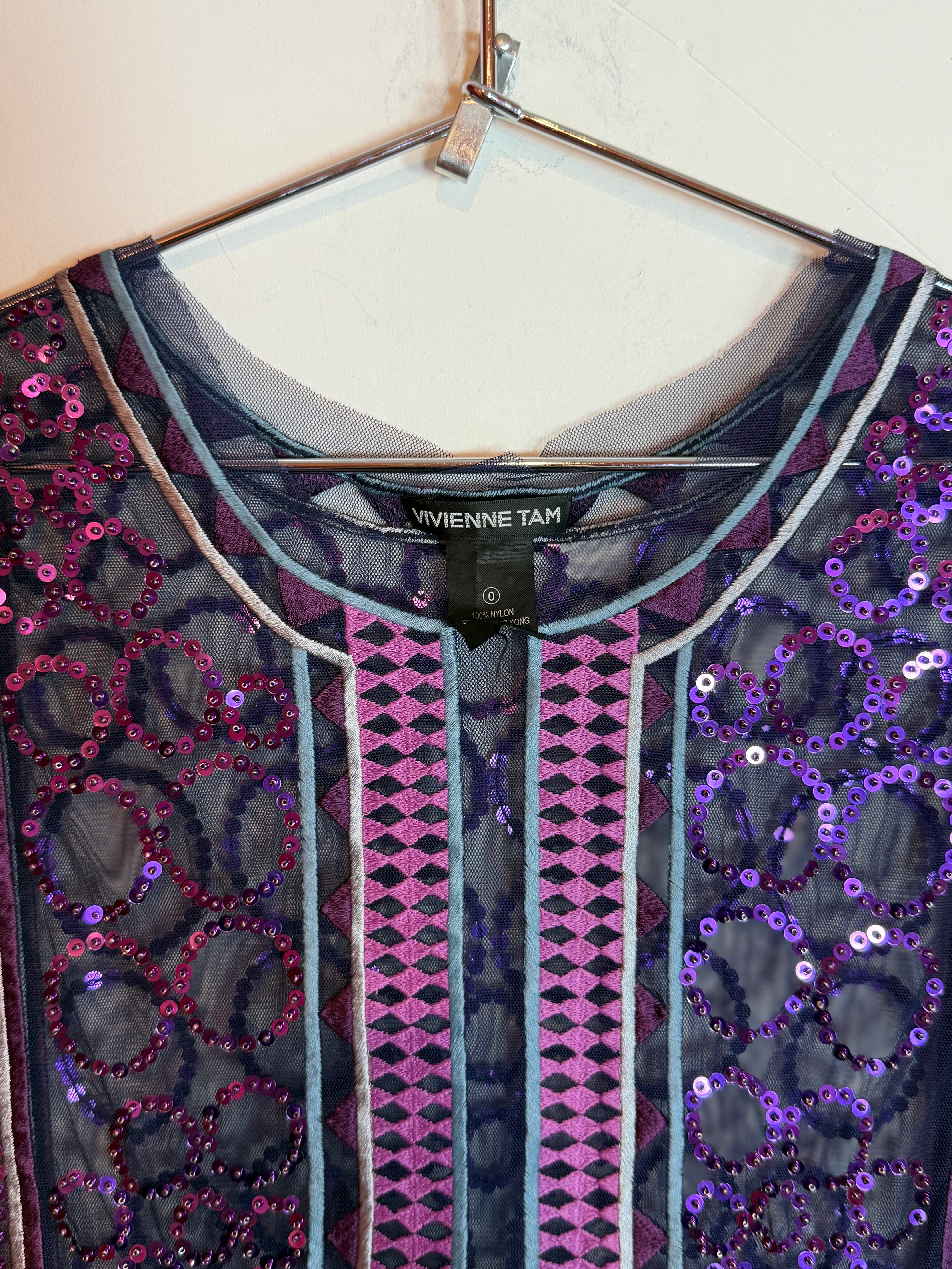 Vintage Vivienne Tam Mesh Beaded & Sequin Top Dress