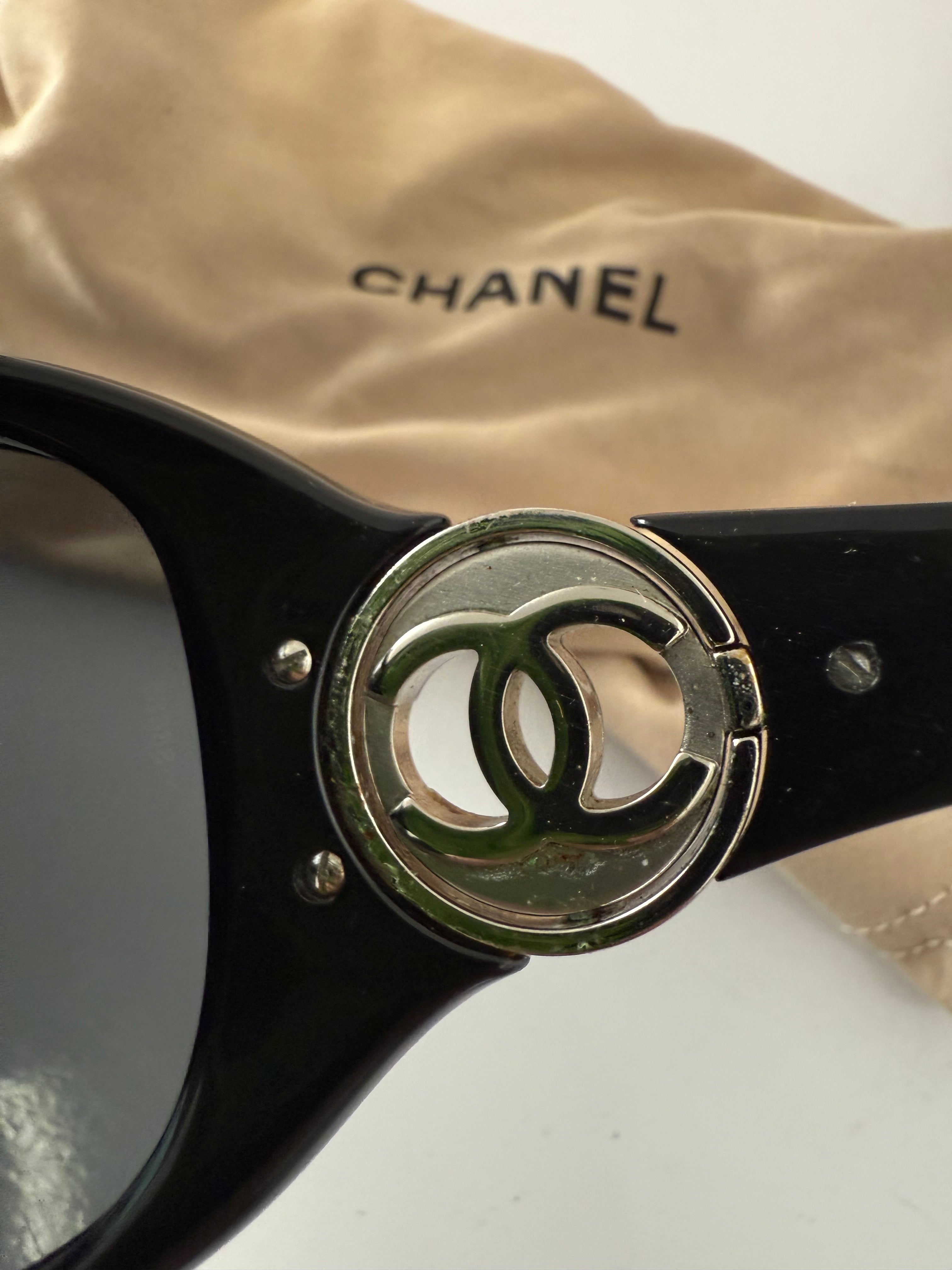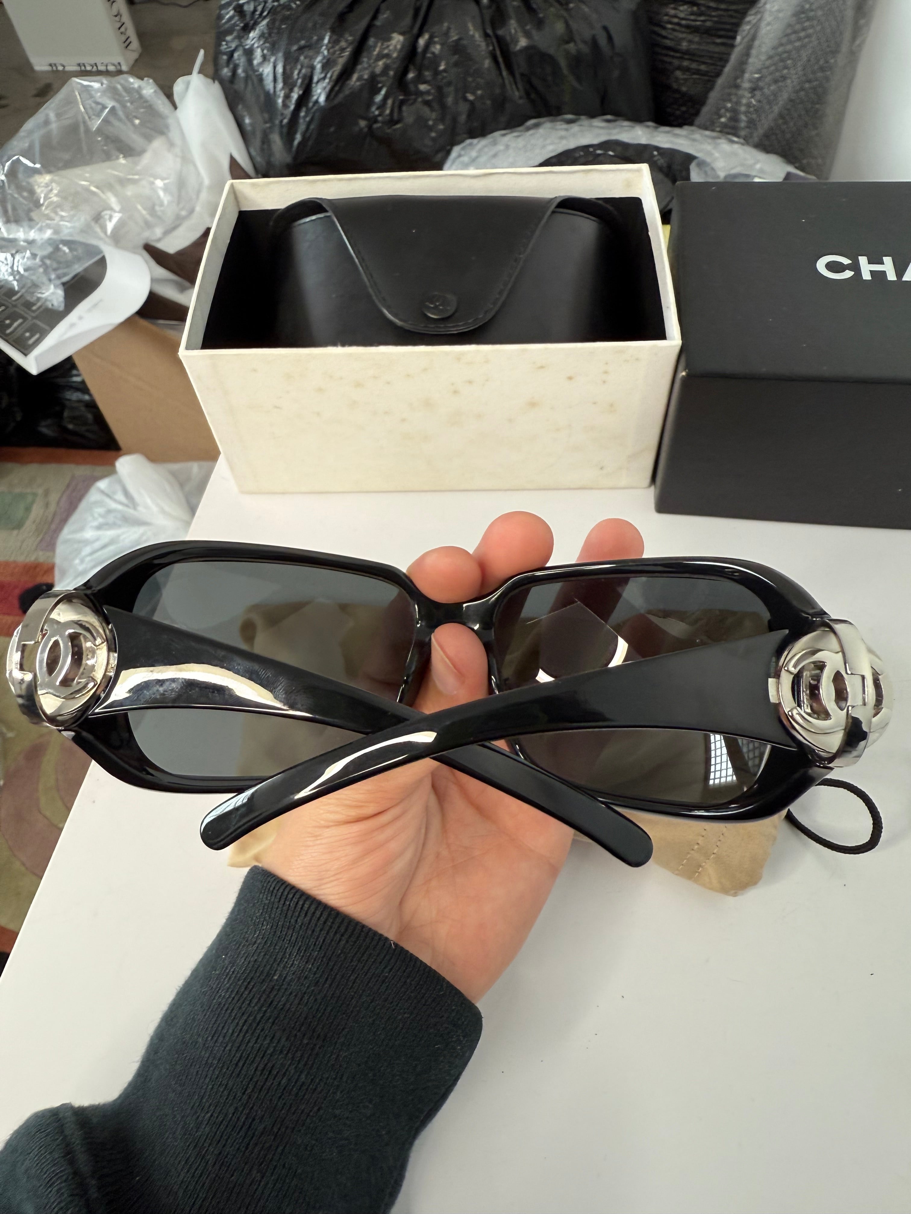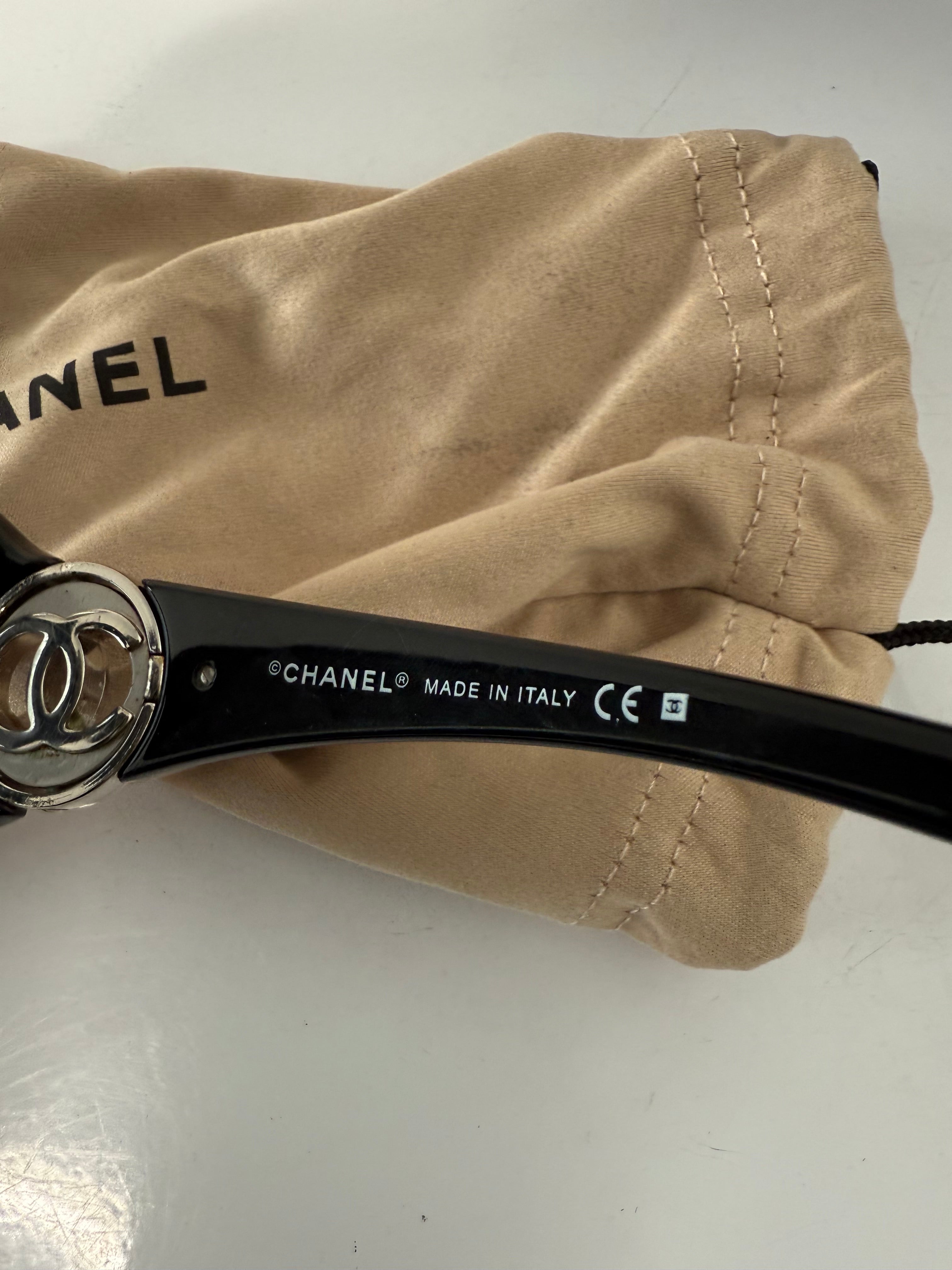 Vintage Y2K Chanel 6023 Shield Sunglasses Black with Silver-Tone CC Logo