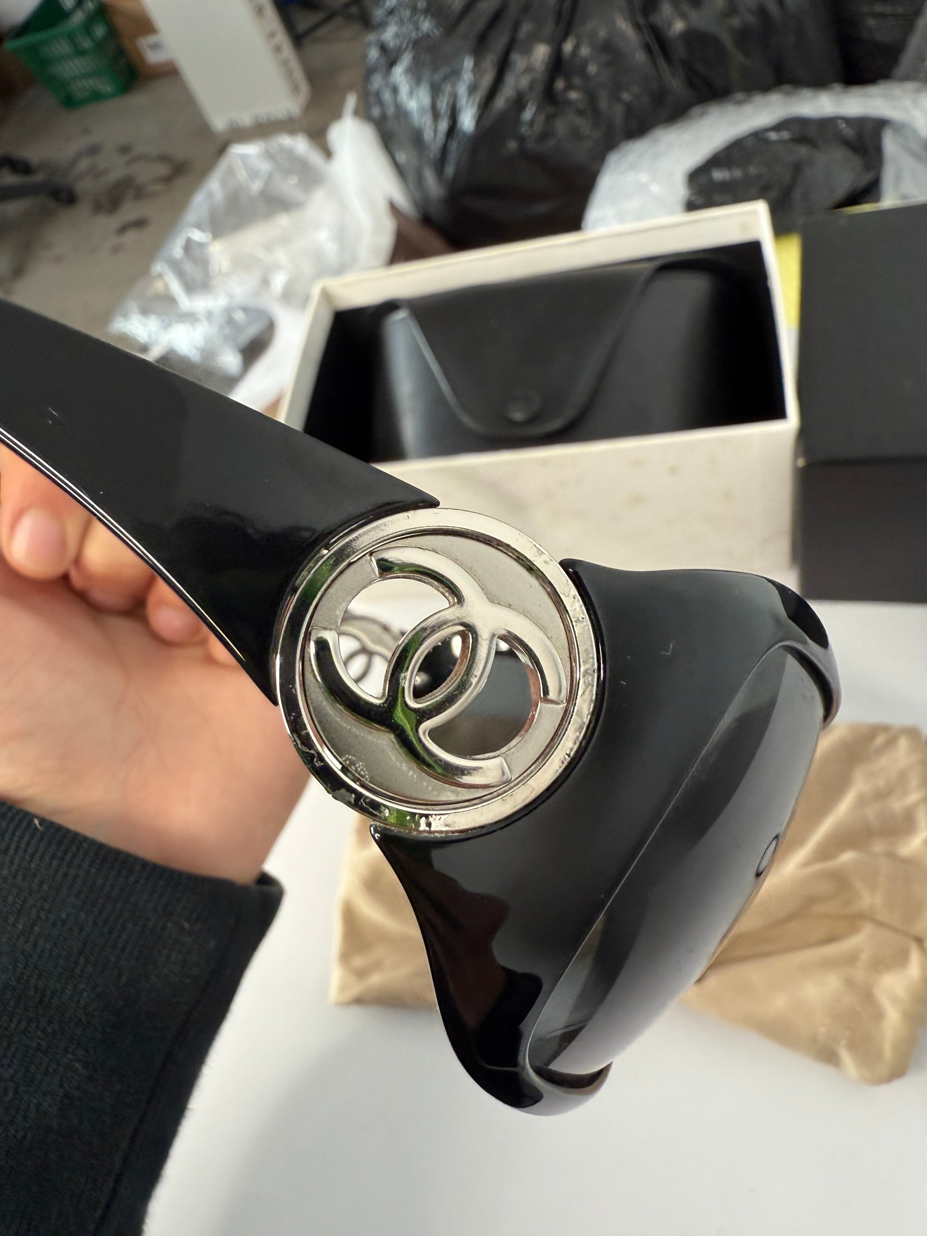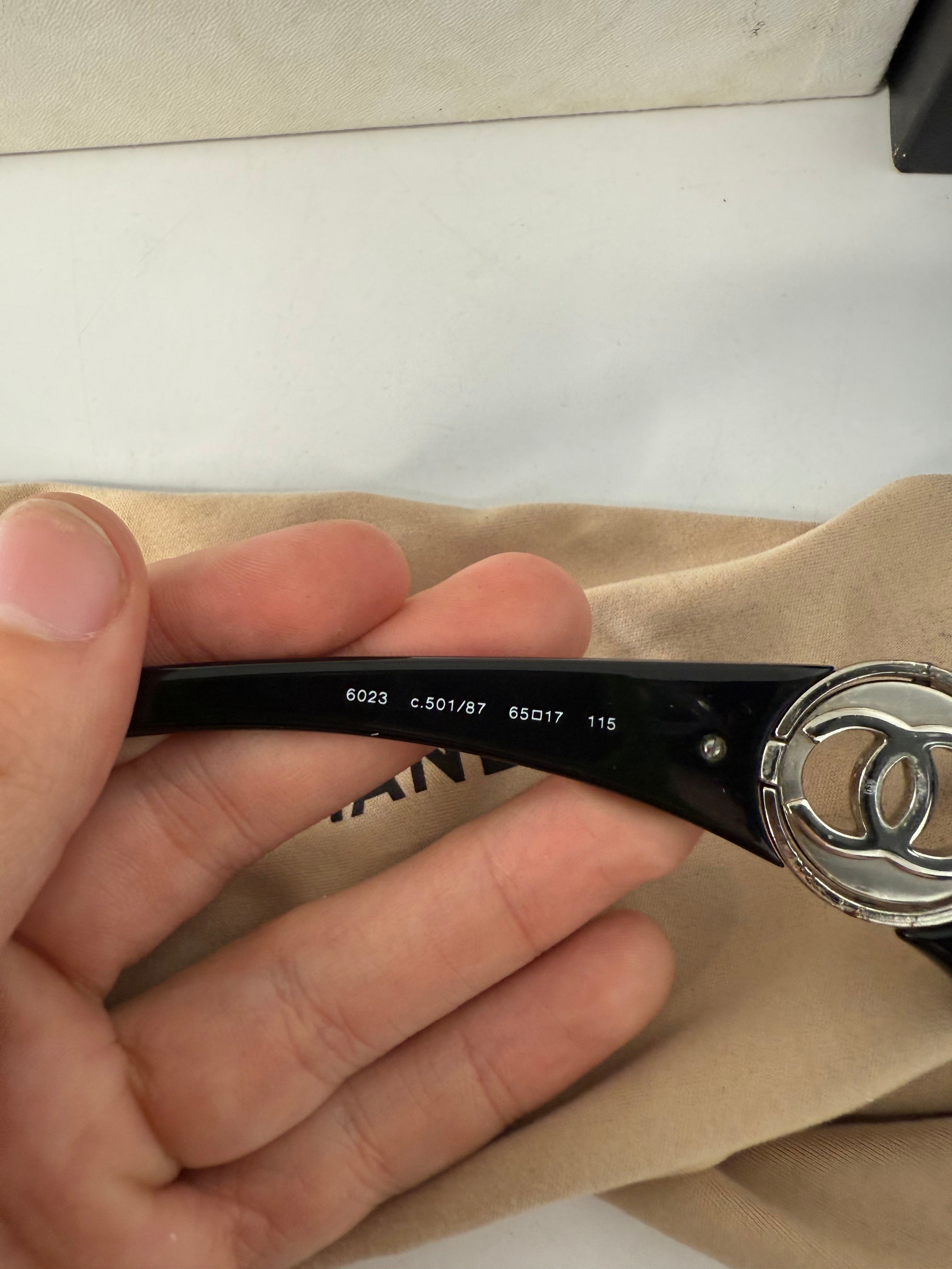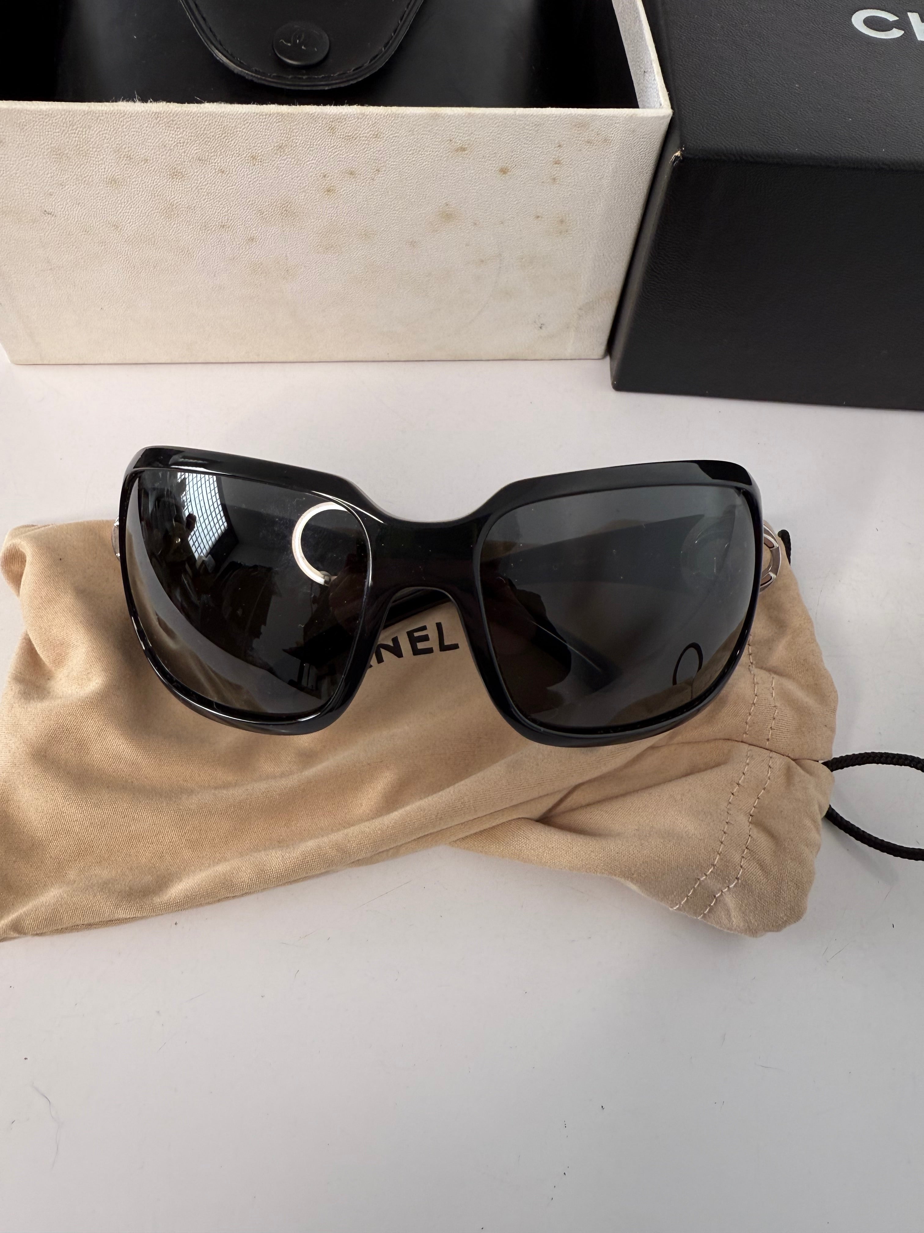 Vintage Y2K Chanel 6023 Shield Sunglasses Black with Silver-Tone CC Logo